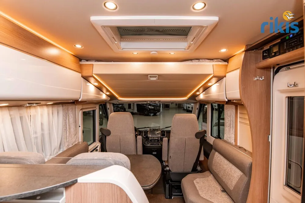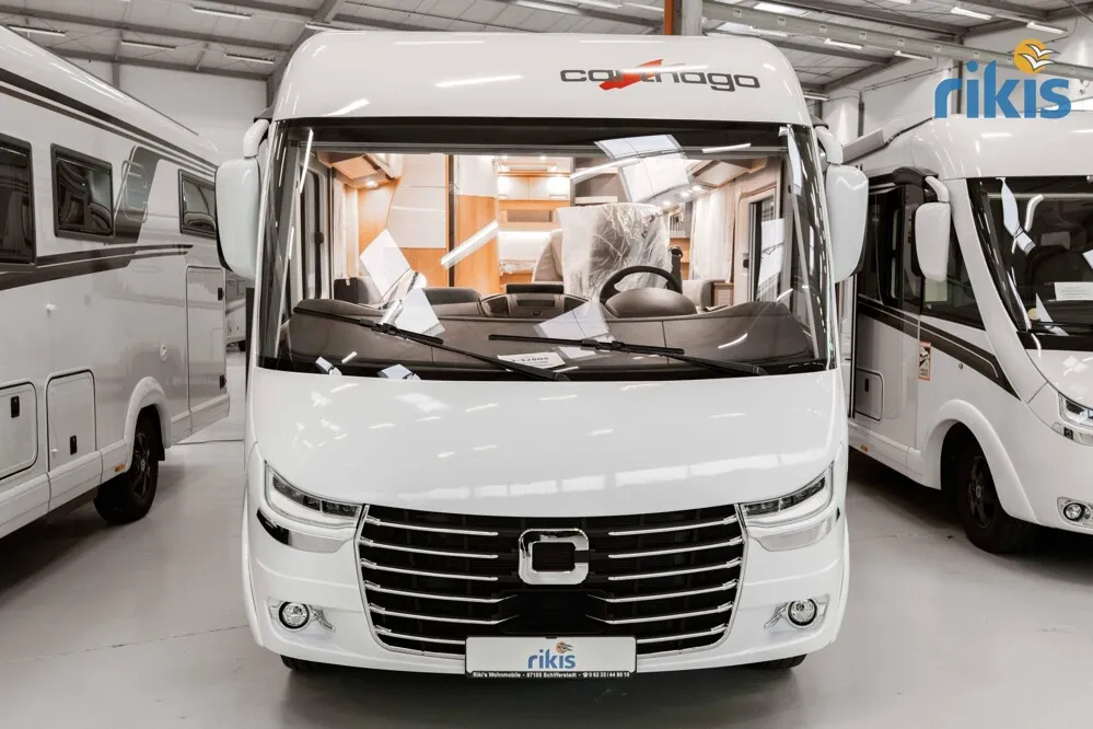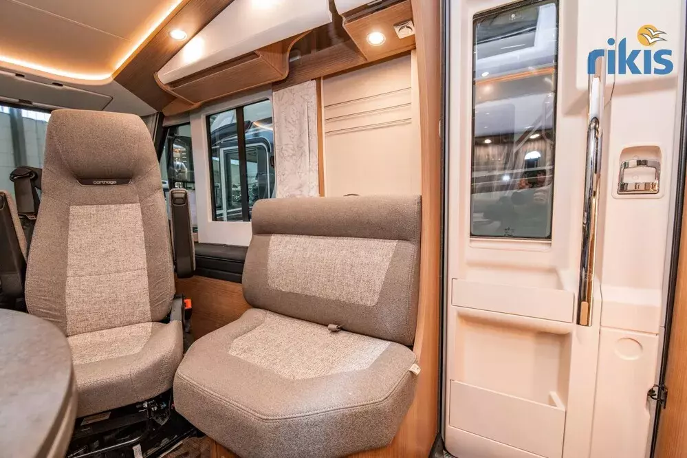- Edition+ Ausstattung (Lenkrad und Schaltknauf in Textilleder, Armaturenbrettveredelung: Lüftungsgitter in chrom, Multifunktionslenkrad (Radiofernbedienung über Steuertasten), Klimaautomatik Fahrerhaus, Induktive Handyladeschale, Digitales Kombiinstrument mit Farbdisplay im Armaturenbrett, Multimediasystem Fiat 10,1" inkl. Navigation, Reisemobil-Routenführung und DAB+, 16 Zoll Alufelgen Fiat für f40 heavy Chassis / f35 i.V.m. 8G-Wandlerautomatik, Kraftstofftank 90 Liter, Carthago Full-LED-Frontscheinwerfer (Abblend- & Fernlicht), Nebelscheinwerfer mit Chromapplikationen, Tempomat, Ladebooster, Fahrerhauskomfortsitze mit Neigungs- und Höhenverstellung (vorn / hinten), Radiovorbereitung mit Dachantenne mit DAB+, Lautsprecher (4x), Erweitertes und exklusives Außendekor mit dynamischer Linienführung und carthagotypischem c-branding, Dachmarkise Kassette Alu, Tuch grau, Länge: 5,0 m, Dachluke Midi-Heki mit LED-Spots über L-Wohnsitzgruppe, Große Rollergaragentür auf der Fahrerseite, XL-Aufbautür "premium two 2.0" (Breite 63 cm) mit Doppelverriegelung, Fenster- und Insektenschutzrollo, Zentralverriegelung für XL-Aufbautür "premium two 2.0" und Fahrerhaustür, Lithium-Ionen-Batterie 150 Ah inkl. Batteriecomputer und sep. Touch-Display, Spannungswandler 12 V auf 230 V, 2.000 Watt, Netzvorrangschaltung, Steckdosenpaket mit Zusatzsteckdosen (3 x 230 V, 2 x USB), USB-Steckdose im Dachstauschrank über Heckbett, Vorbereitung Dachhaubenlüfter elektrisch, Vorbereitung Solaranlage, Vorbereitung Sat-Anlage, Vorbereitung Rückfahrkamera (Einzellinse), Truma DuoControl CS, Außendusche warm / kalt in Rollergarage auf Beifahrerseite, SOG-Toilettenentlüftung, Abwasserschlauchset zur komfortablen Entsorgung, Rollergaragen-Upgrade, Kaffeekapselmaschine mit Anschluss-Set inkl. Auszugssystem, Rückfahrkamerasystem mit Einzellinse und 7" Farbmonitor seitlich im Armaturenbrett, TV-Auszugssystem 32" in Seitensitzbank, Smart-LED-TV 32", Teppichboden für Fahrerhausbereich, Schlafwelt & Deko-Set: Dekokissen, Wohndecke, Spannbettlaken-Set)
