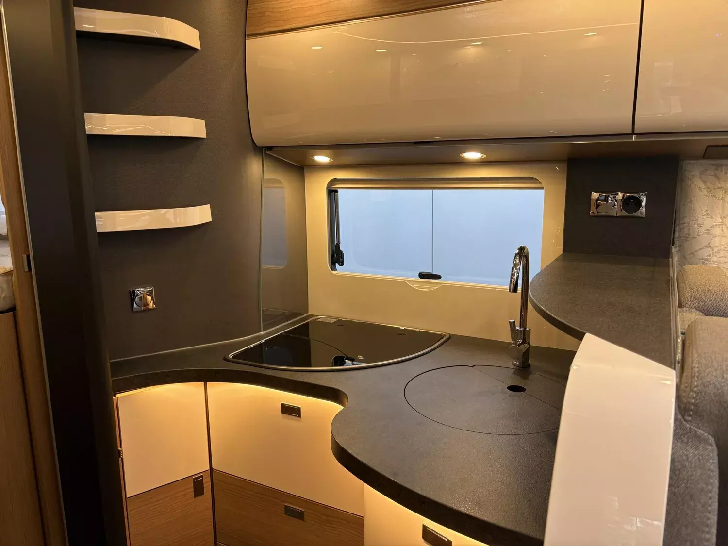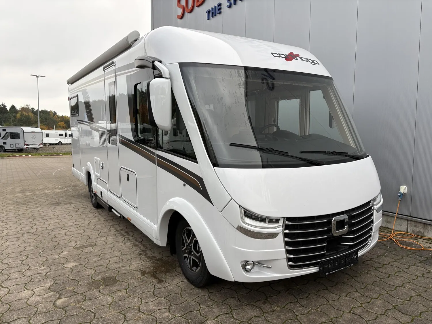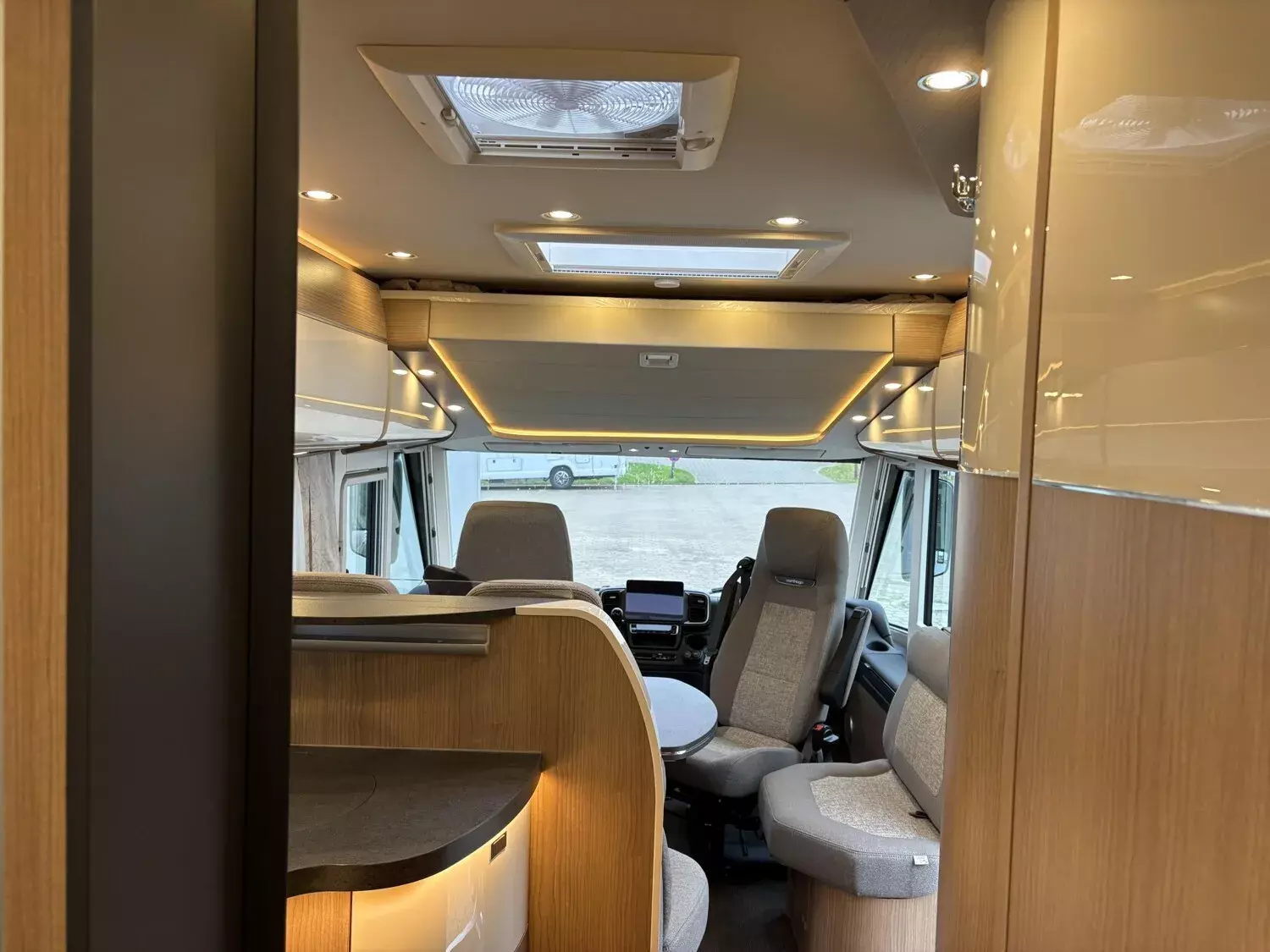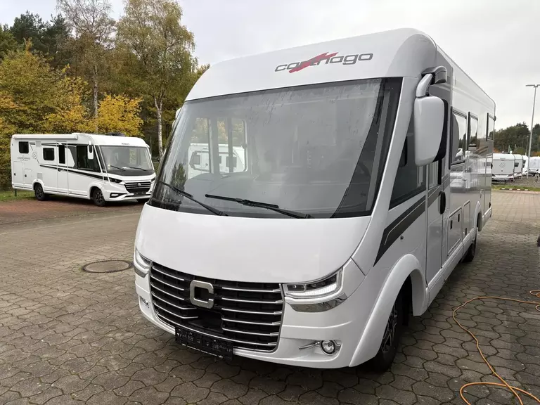 - Rollergaragen-Upgrade mit Nadelfilz, Gepäcknetzen, Teppichboden für Fahrerhausbereich, Stilwelt Casblanca 3, Multimediasystem 10", Dachmarkise Kassette Alu, Tuch grau, Länge: 5,0 m, Außendusche warm / kalt in Rollergarage auf Beifahrerseite, Lithium-Ionen-Batterie 150 Ah inkl. Batteriecomputer und sep. Touch-Display, Zentralverriegelung für XL-Aufbautür "premium two 2.0" und Fahrertür, Carthago Full-LED-Frontscheinwerfer (Abblend- und Fernlicht), Erweiterte Außengrafik (Flügel), Nebelscheinwerfer, Truma DuoControl CS,