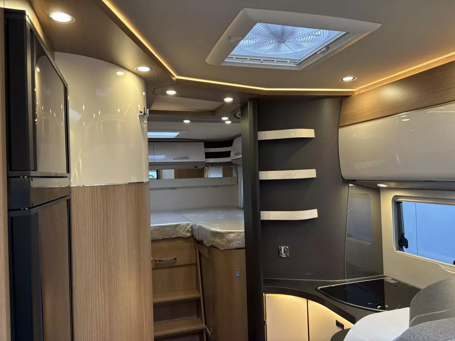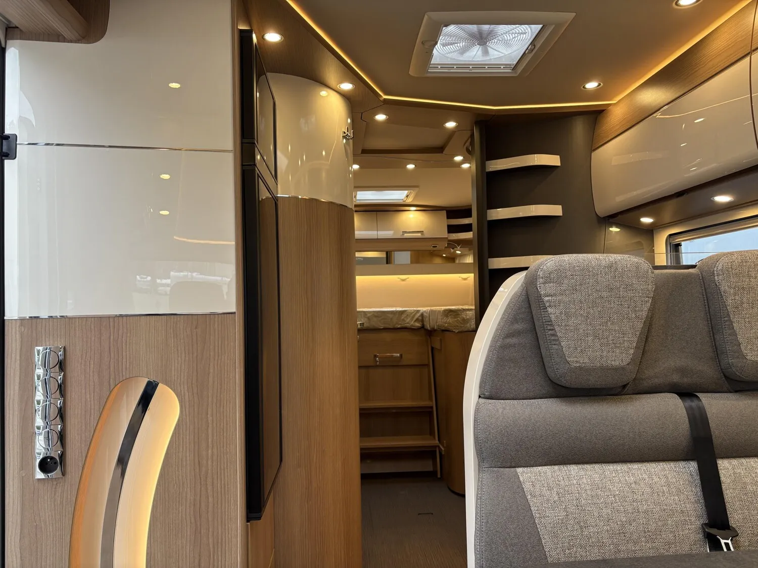 - Basis-Plus-Paket Fiat Comfort: Dachkuppel Midi-Heki mit LED-Spots über L-Wohnsitzgruppe, Vorbereitung Sat-Anlage, USB-Steckdose im Dachstauschrank über Heckbett, Vorbereitung Solaranlage, Abwasserschlauchset zur komfortablen Entsorgung, Radiovorbereitung mit Dachantenne mit DAB+, Lautsprecher (4x), DVB-T2 Empfang, Kraftstofftank 90 Liter, Insektenschutzrollo Aufbautüre, Ladebooster, Vorbereitung Rückfahrkamera (Einzellinse), Große Rollergaragentür auf der Fahrerseite, Fahrerhaussitze mit Neigungs- und Höhenverstellung (vorn / hinten), Vorbereitung Dachhaubenlüfter elektrisch, SOG-Toilettenlüftung über Dachkamin, Fiat Multimediasystem 10",