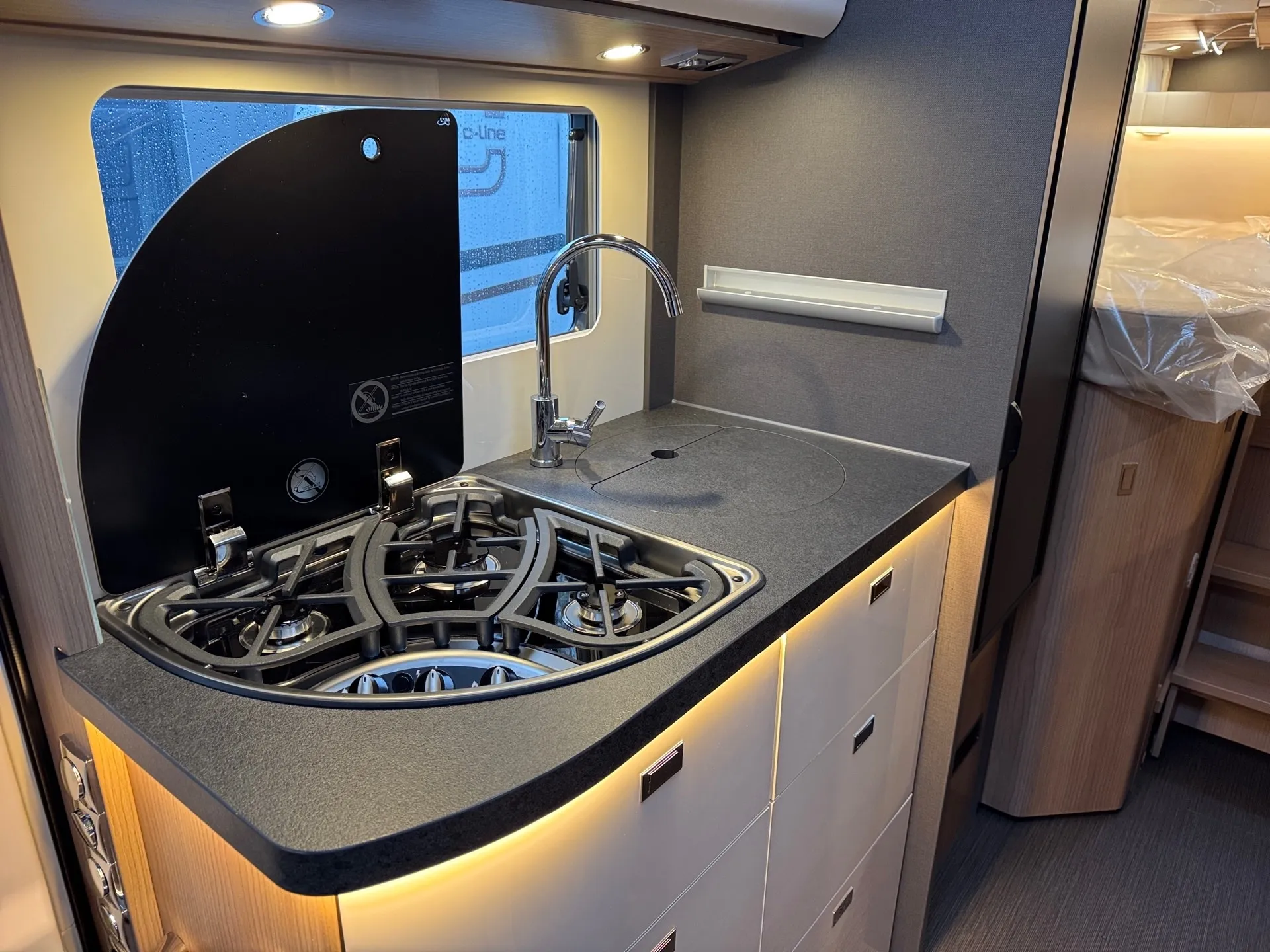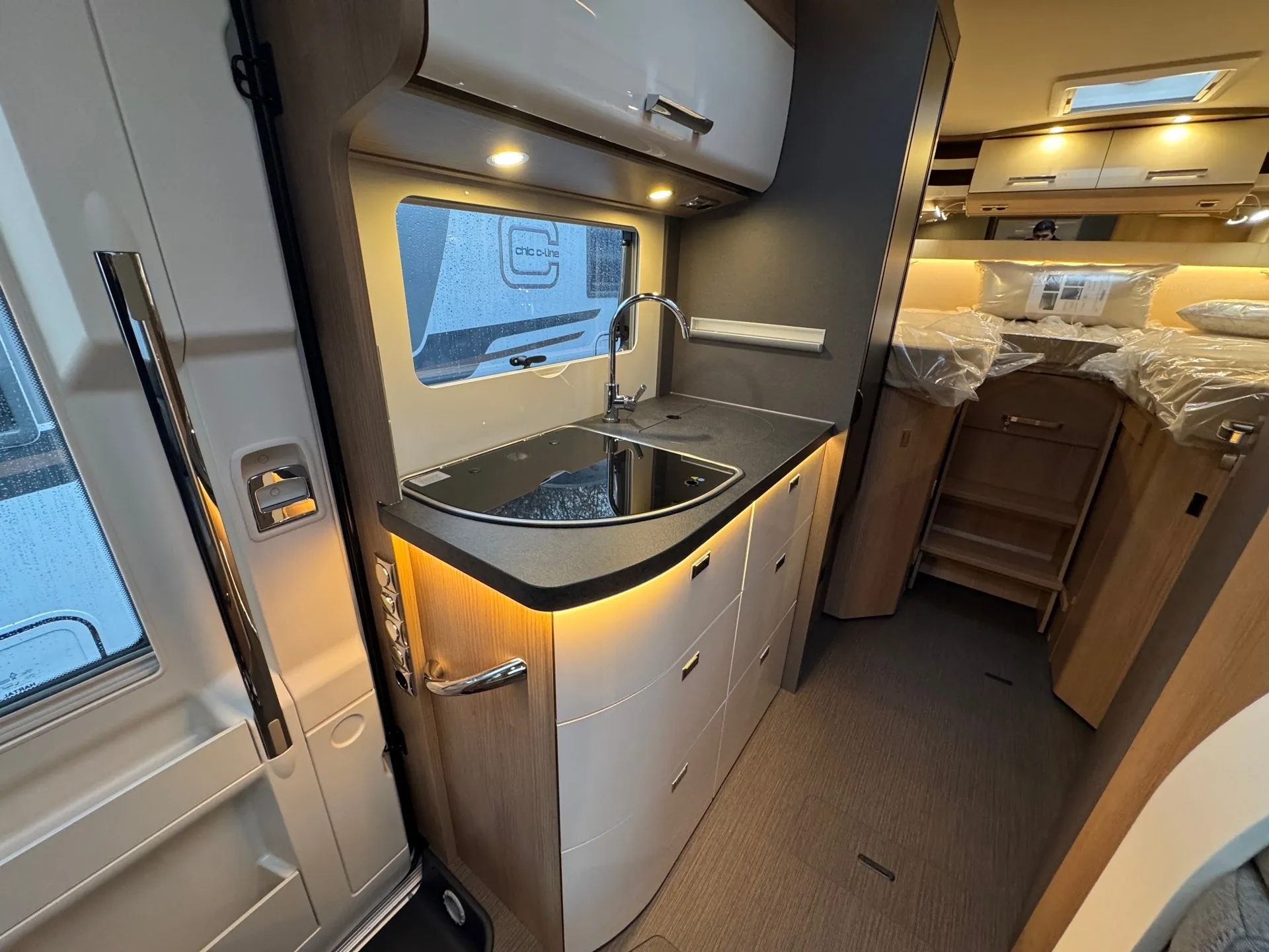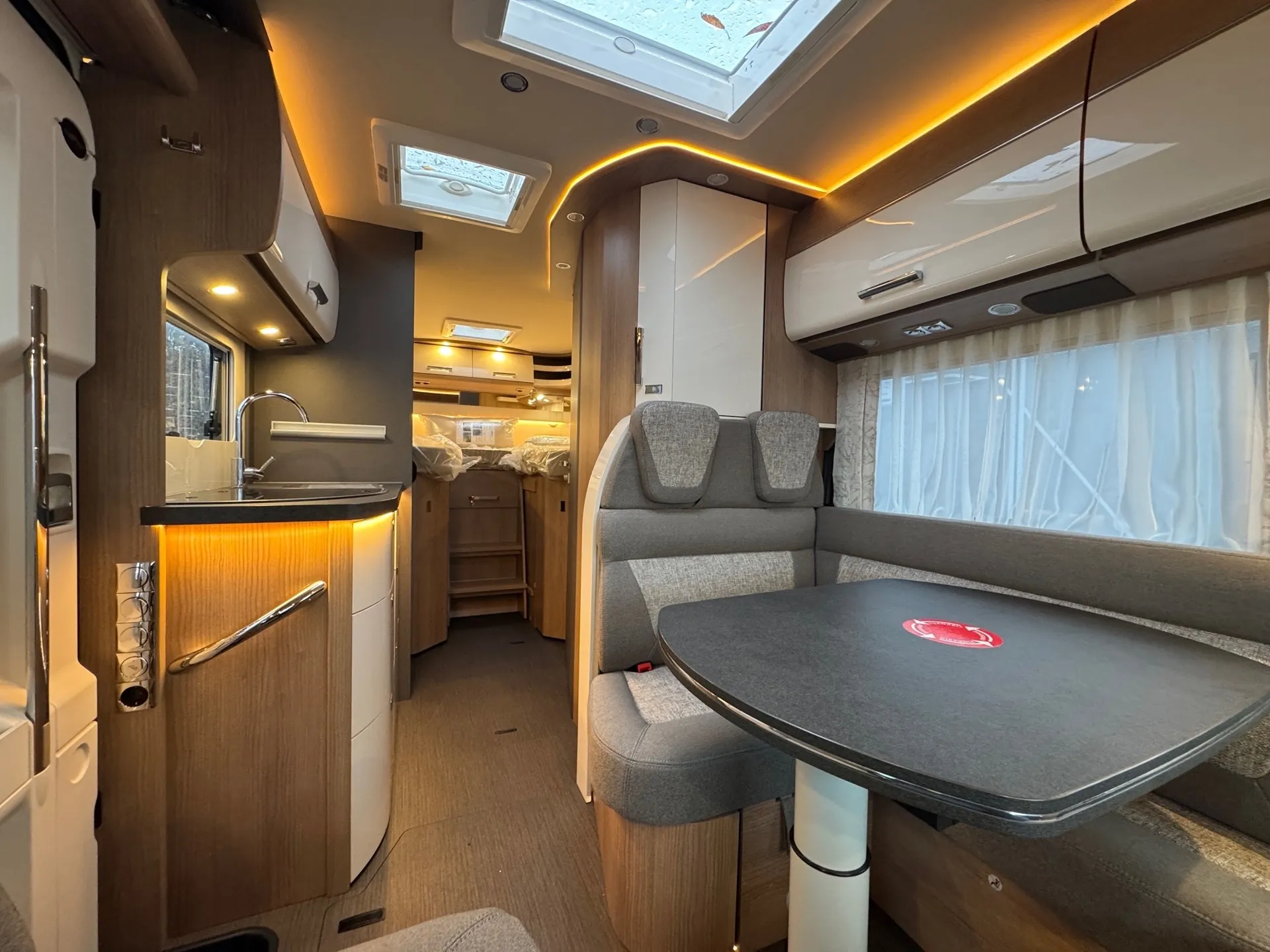 -Basis Plus Paket bestehend aus: •Vorbereitung Sat-Anlage •USB-Steckdose im Dachstauschrank über Heckbett •Abwasserschlauchset zur komfortablen Entsorgung •Insektenschutzrollo Aufbautüre •Kraftstofftank 92 Liter •Vorbereitung Rückfahrkamera (Einzellinse) •Elektrische Feststellbremse •Verkehrszeichenassistent (MERCEDES) •Kombiinstrument mit Farbdisplay •Fahrerhaussitze mit Neigungs- und Höhenverstellung (vorn / hinten) •Dachkuppel Midi-Heki mit LED-Spots über L-Wohnsitzgruppe •Regensensor •Vorbereitung Solaranlage •Lenkrad mit Höhen- und Neigungsverstellung •Vorderachse mit erhöhter Traglast •Radiovorbereitung mit Dachantenne mit DAB+, Lautsprecher (4x), DVB-T2 Empfang •Ladebooster •Mercedes MBUX 10,2" Multimediasystem anstelle Radio/CD/DVD Doppel DIN inkl. Navigation, DAB +, Touchscreen •Große Rollergaragentür auf der Fahrerseite •Vorbereitung Dachhaubenlüfter elektrisch •Multifunktions- und Lederlenkrad mit Höhen- und Neigungsverstellung •SOG-Toilettenlüftung über Dachkamin