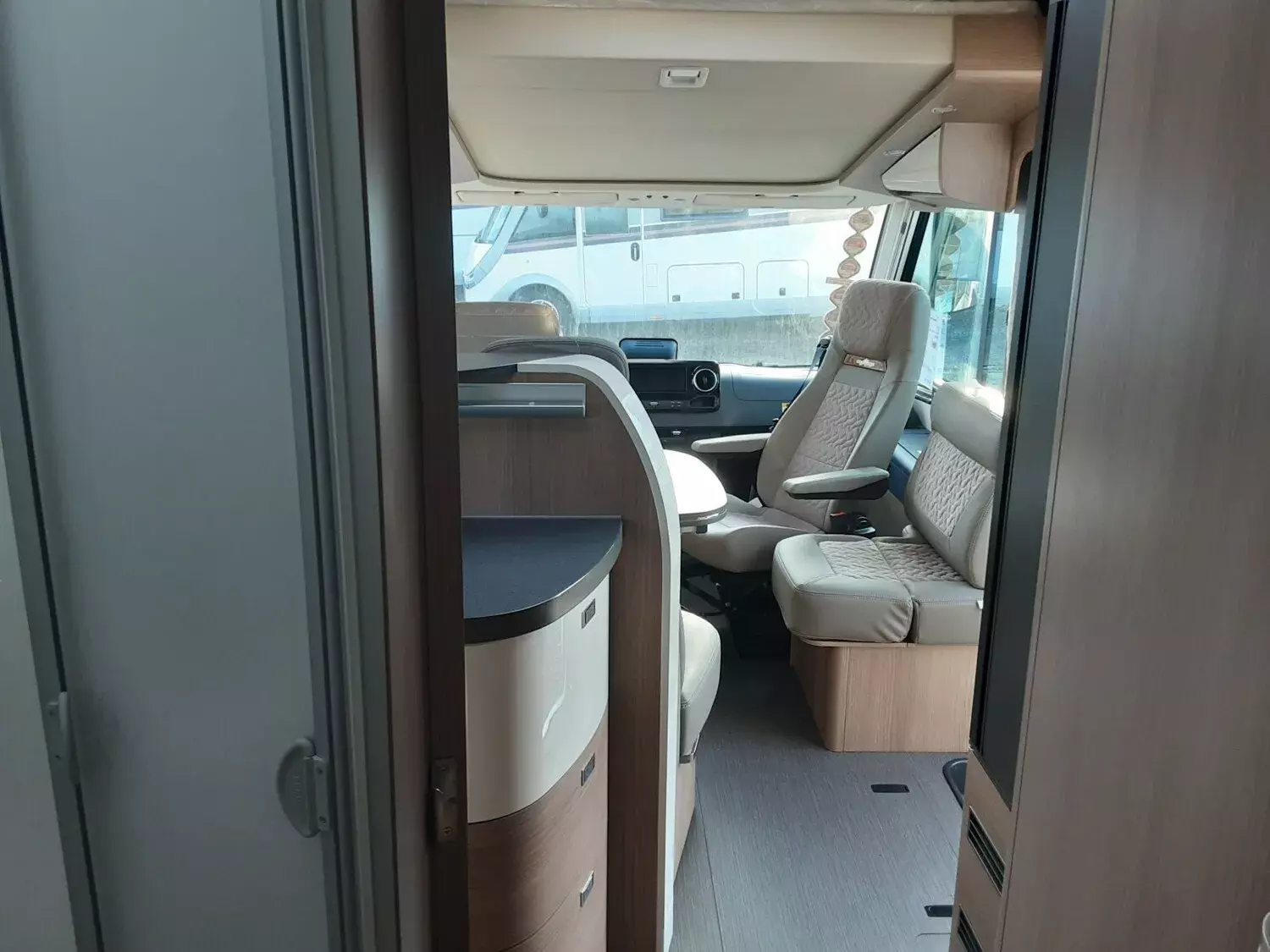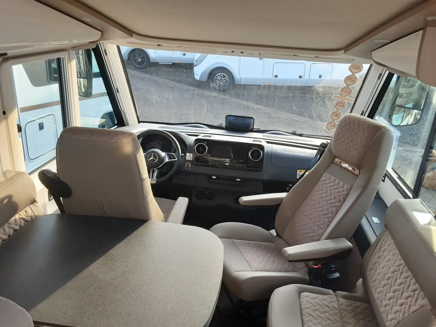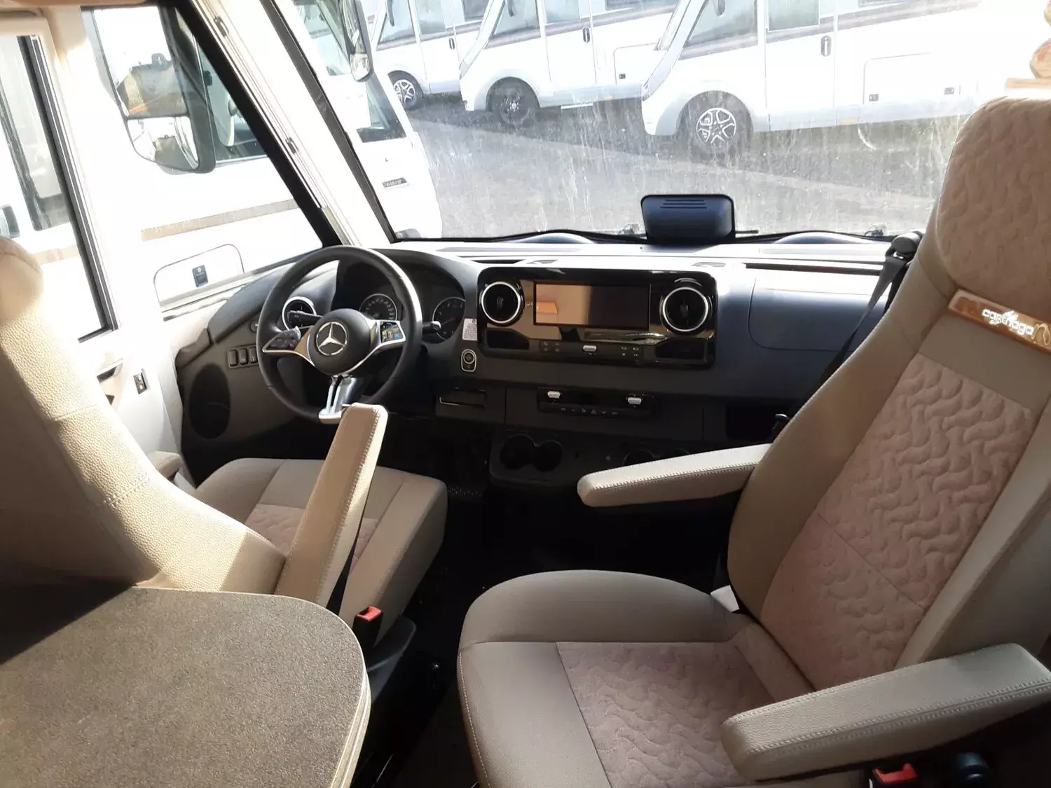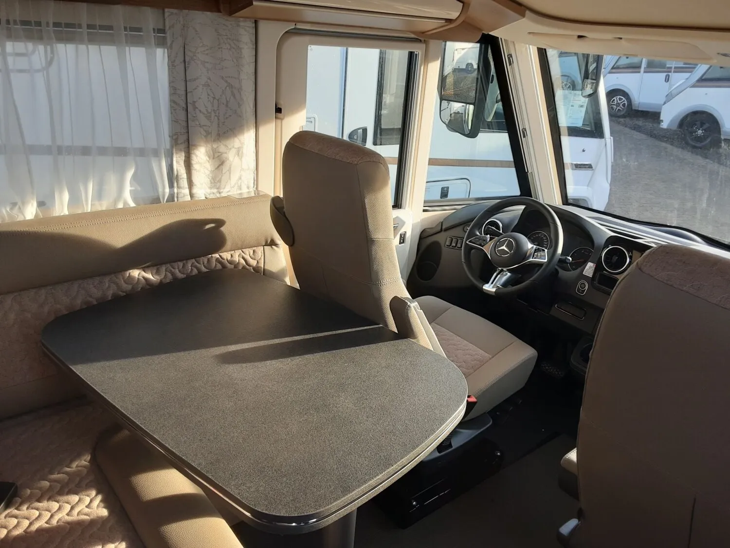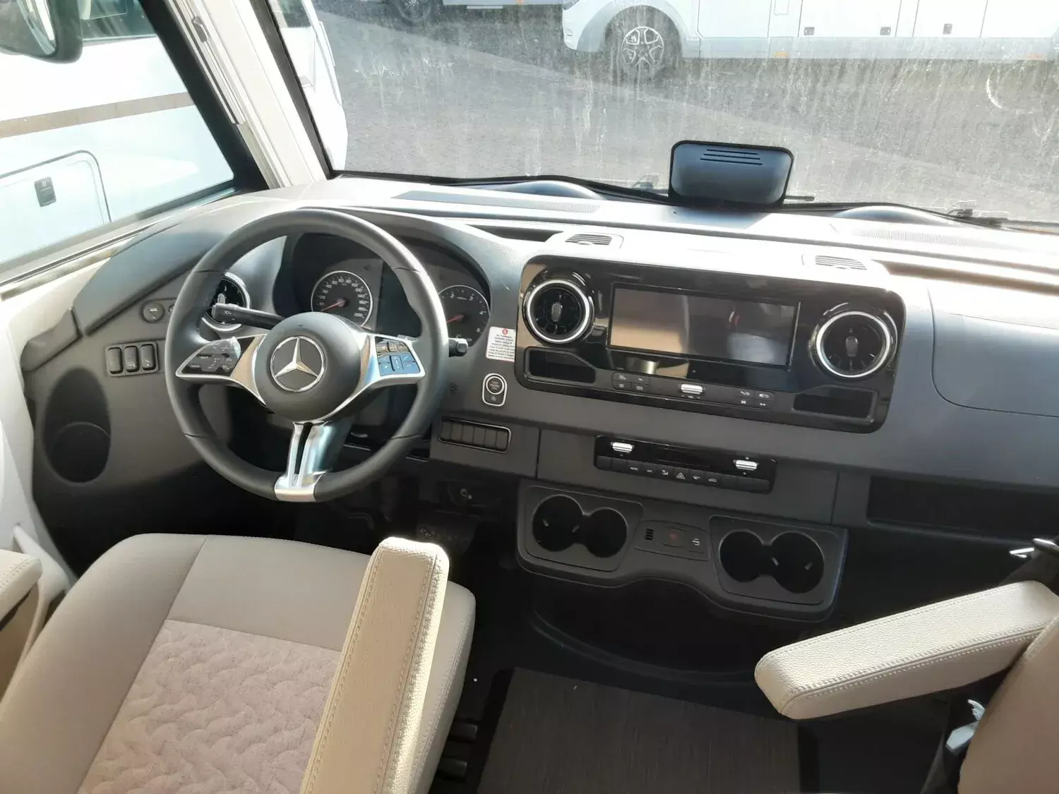 - Basis Plus Paket Mercedes:?Vorbereitung Rückfahrkamera (Einzellinse) - SOG-Toilettenlüftung über Dachkamin - Fahrerhaussitze mit Neigungs- und Höhenverstellung (vorn / hinten) - Regensensor - Radiovorbereitung mit Dachantenne mit DAB+, Lautsprecher (4x), DVB-T2 Empfang - Vorderachse mit erhöhter Traglast - Insektenschutzrollo Aufbautüre -Elektrische Feststellbremse - Vorbereitung Solaranlage - Große Rollergaragentür auf der Fahrerseite - Ladebooster - Abwasserschlauchset zur komfortablen Entsorgung - USB-Steckdose im Dachstauschrank über Heckbett ) - Verkehrszeichenassistent (MERCEDES - Mercedes MBUX 10,2" Multimediasystem anstelle Radio/CD/DVD Doppel DIN inkl. Navigation, DAB +, Touchscreen Lenkrad mit Höhen- und Neigungsverstellung ?Kraftstofftank 92 Liter - Vorbereitung Sat-Anlage - Dachkuppel Midi-Heki mit LED-Spots über L-Wohnsitzgruppe - Kombiinstrument mit Farbdisplay - Vorbereitung Dachhaubenlüfter elektrisch - Vollautomatische Klimaanlage Thermotronic - Multifunktions- und Lederlenkrad mit Höhen- und Neigungsverstellung