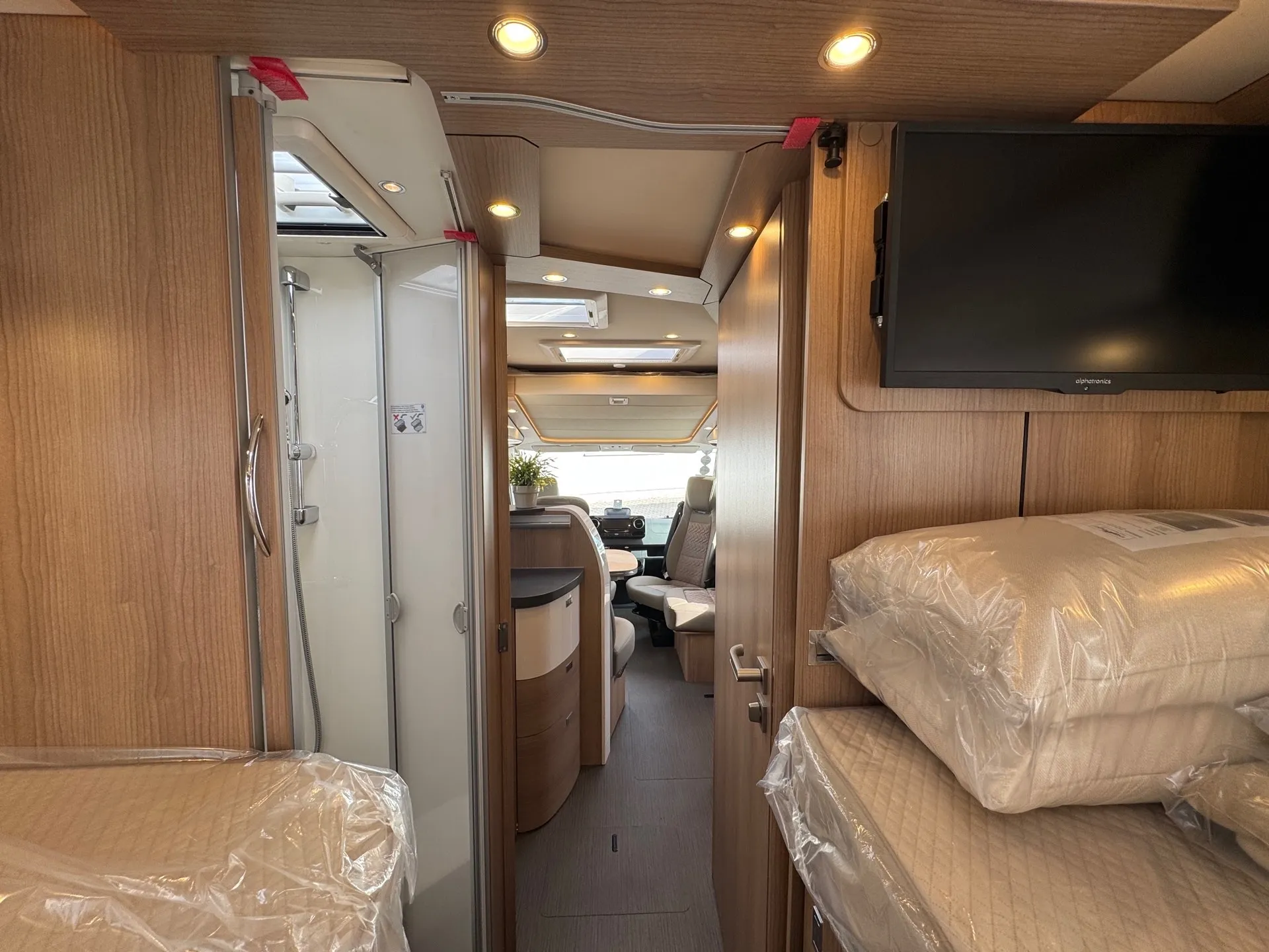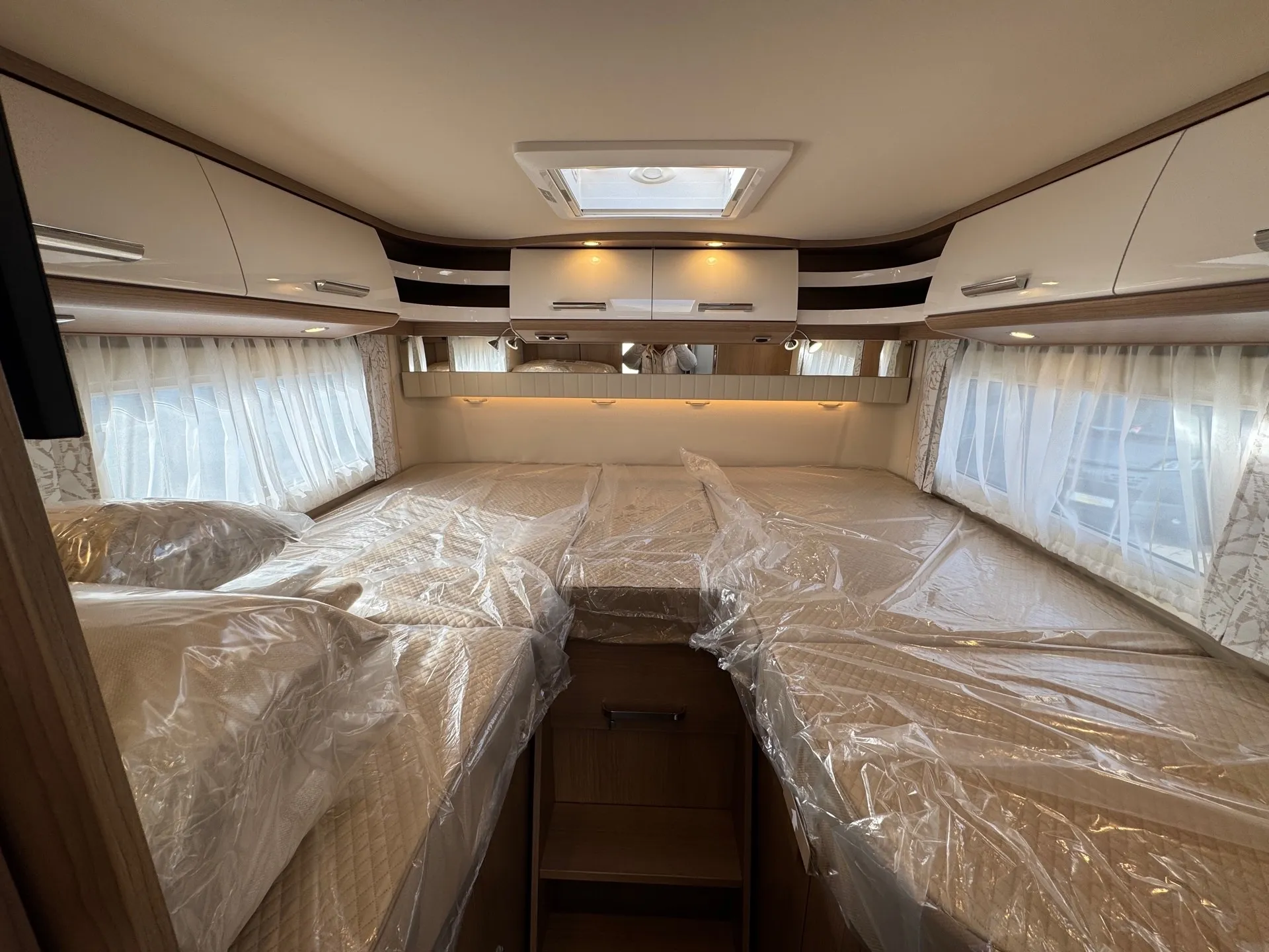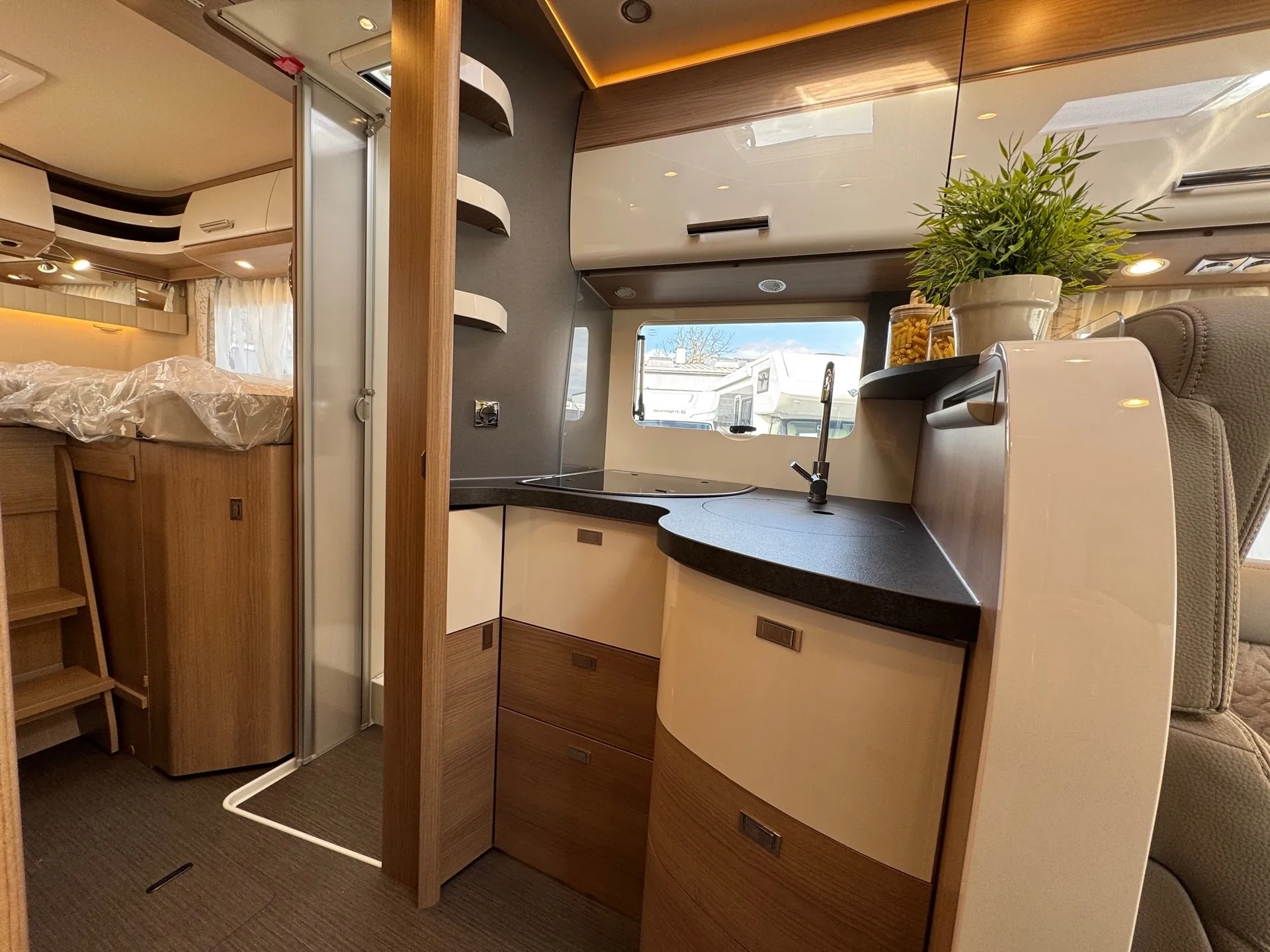 -Basis Plus Paket Mercedes bestehend aus: Vorbereitung Sat-Anlage; USB-Steckdose im Dachstauschrank über Heckbett; Abwasserschlauchset zur komfortablen Entsorgung; Insektenschutzrollo Aufbautüre; Kraftstofftank 92 Liter; Vorbereitung Rückfahrkamera (Einzellinse); Wärmedämmendes Glas mit Bandfilter an der Frontscheibe; Fahrerhausverdunklungssystem Plissee an Front- und Seitenscheiben; Elektrische Feststellbremse; Verkehrszeichenassistent (MERCEDES); Kombiinstrument mit Farbdisplay; Fahrerhaussitze mit Neigungs- und Höhenverstellung (vorn / hinten); Regensensor; Lenkrad mit Höhen- und Neigungsverstellung; Vorbereitung Solaranlage; Vorderachse mit erhöhter Traglast; Radiovorbereitung mit Dachantenne mit DAB+, Lautsprecher (4x), DVB-T2 Empfang; Ladebooster; Mercedes MBUX 10,2" Multimediasystem anstelle Radio/CD/DVD Doppel DIN inkl. Navigation, DAB +, Touchscreen; Große Rollergaragentür auf der Fahrerseite; Vorbereitung Dachhaubenlüfter elektrisch; Multifunktions- und Lederlenkrad mit Höhen- und Neigungsverstellung; Dachkuppel Midi-Heki mit LED-Spots über L-Wohnsitzgruppe; SOG-Toilettenlüftung über Boden