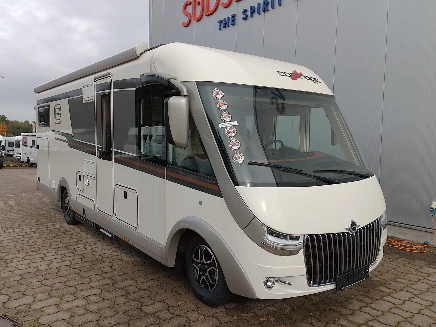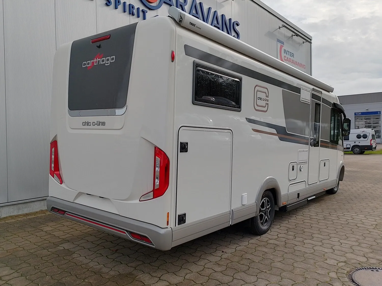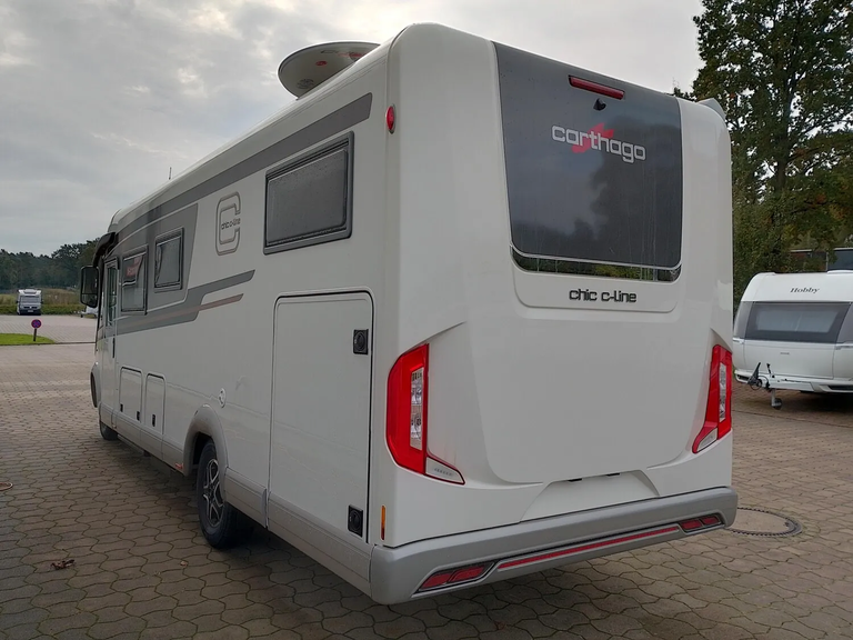 - Super-Paket (Klimaautomatik Fahrerhaus, Tempomat, Ladebooster, Fahrerhauskomfortsitze mit Neigungs- und Höhenverstellung (vorn / hinten), Armaturenbrettveredelung: Lüftungsgitter in Chrom, Kurbel-Heckstützen zur Wankstabilisierung im Stand, Busspiegel "Carthago best view" mit Einstiegsbeleuchtung, elektr. verstell- und beheizbar, XL-Aufbautür "premium two 2.0" (B: 63 cm) mit Doppelverriegelung, Fenster- und Insektenschutzrollo, Zentralverriegelung Fahrerhaus- und Aufbautür, mit Funktion "coming home", Rollergaragen-Upgrade mit Nadelfilz, Gepäcknetzen, Befestigungssystem, SOG-Toilettenentlüftung über Dachkamin, Truma DuoControl CS, Design-Barschrank mit Gläserhalter und Glas-Set über Küche, USB-Steckdose im Dachstauschrank über Heckbett, Vorbereitung Solaranlage, Vorbereitung Sat-Anlage, Vorbereitung Rückfahrkamera (Einzellinse), Radio/Moniceiver Pioneer 6,8" inkl. DAB+, Radiovorb. Dachantenne, Lautsprecher (4 x), Rückfahrkamerasystem mit Einzellinse, inkl. 7" Farbmonitor seitlich im Armaturenbrett)