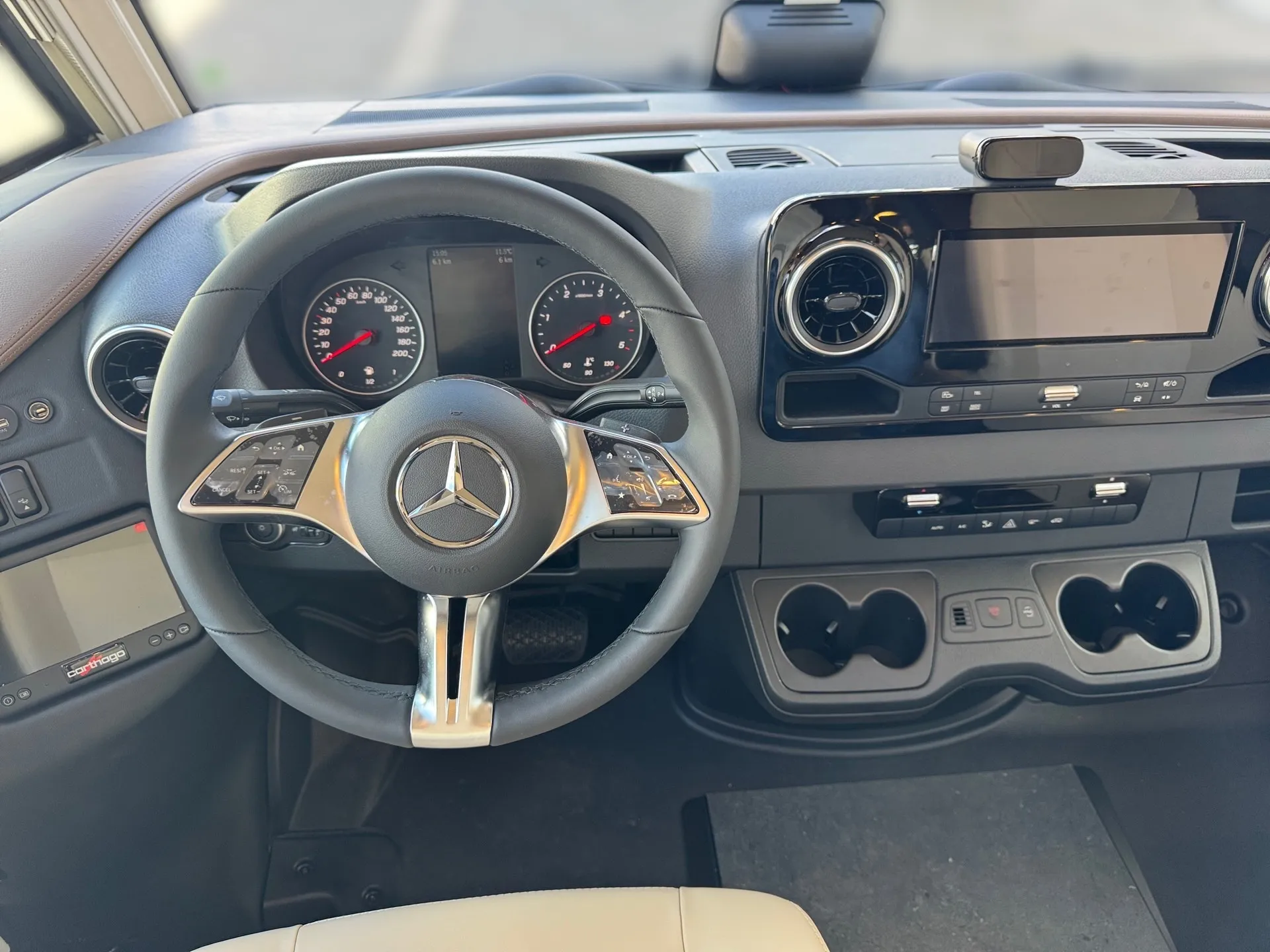 -Super Paket Einzelachser bestehend aus: •Vorbereitung Sat-Anlage •USB-Steckdose im Dachstauschrank über Heckbett •Rollergaragen-Upgrade mit Nadelfilz, Gepäcknetzen •SOG-Toilettenlüftung über Dachkamin •Kraftstofftank 92 Liter •Vorbereitung Rückfahrkamera (Einzellinse) •Elektrische Feststellbremse •Verkehrszeichenassistent (MERCEDES) •Kombiinstrument mit Farbdisplay •Fahrerhaussitze mit Neigungs- und Höhenverstellung (vorn / hinten) •Zentralverriegelung für Fahrerhaustüren und Aufbautür, Fernbedienung mit Funktion "coming home" •Regensensor •Busspiegel „Carthago best view" mit Busspiegelgehäuse schwarz / weiß, elektrisch verstellbar- und beheizbar •Lenkrad mit Höhen- und Neigungsverstellung •Vorbereitung Solaranlage •Vorderachse mit erhöhter Traglast •XL-Aufbautür "premium two 2.0" (Breite 63 cm) mit Doppelverriegelung, Fenster- und Insektenschutzrollo •Radiovorbereitung mit Dachantenne mit DAB+, Lautsprecher (4x), DVB-T2 Empfang •Design-Barschrank mit Gläserhalter und Glas-Set über Küche •Ladebooster •Mercedes MBUX 10,2" Multimediasystem anstelle Radio/CD/DVD Doppel DIN inkl. Navigation, DAB +, Touchscreen •Truma DuoControl CS •Kurbel-Heckstützen zur Wankstabilisierung im Stand •Multifunktions- und Lederlenkrad mit Höhen- und Neigungsverstellung •Rückfahrkamerasystem mit 7" Farbmonitor seitlich auf Armaturenbrettund Kameralinse im Heckteil integriert