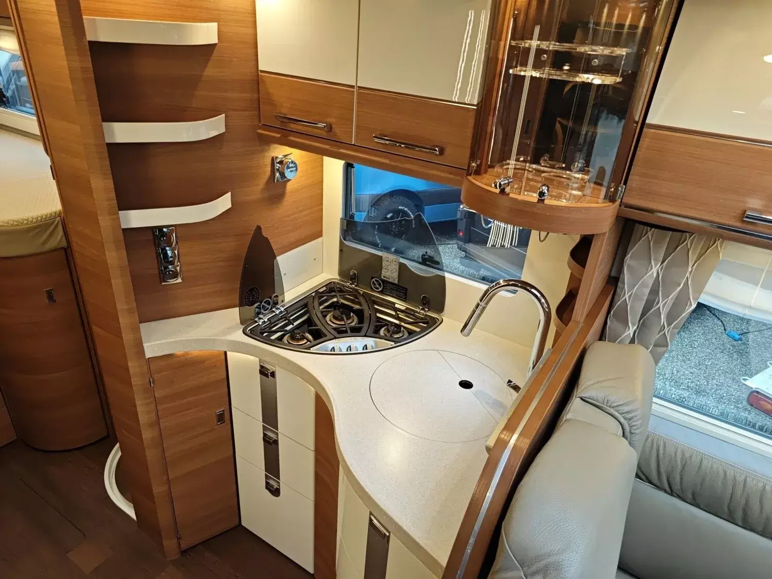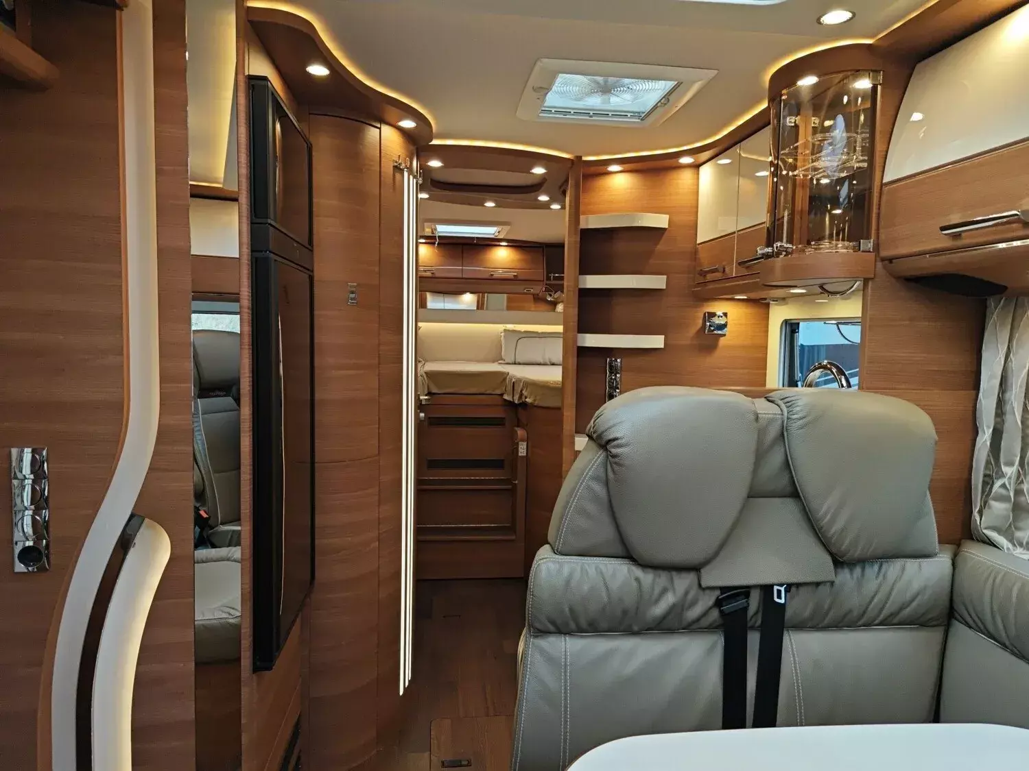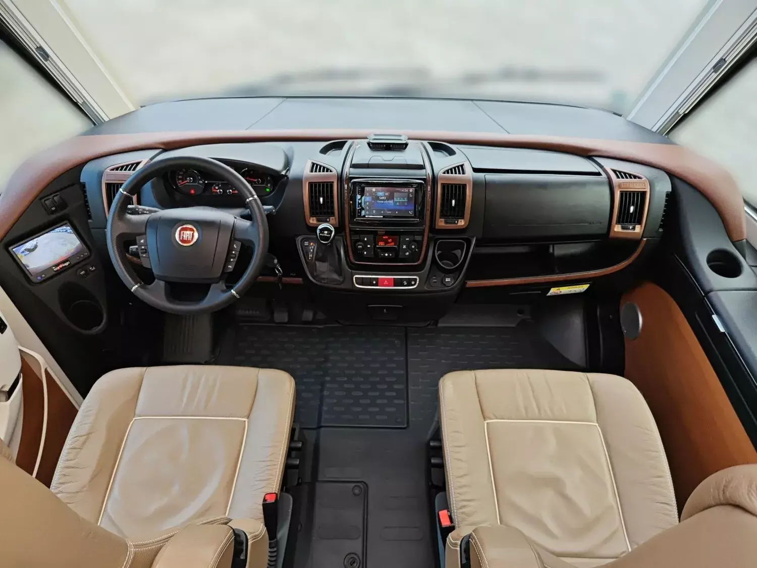 - Super-Paket (Klimaautomatik Fahrerhaus, Tempomat, Ladebooster, Fahrerhaussitze mit Neigungs- und Höhenverstellung (vorn / hinten), Armaturenbrettveredelung mit Edelholzapplikation und Lüftungsgitter in bronze, Kurbel-Heckstützen zur Wankstabilisierung im Stand, Busspiegel "Carthago bestview" mit Einstiegsbeleuchtung, elektrisch verstell- und beheizbar, Zentralverriegelung Fahrerhaustüren und Aufbautür, mit Funktion "coming home", Rollergaragen-Upgrade mit Nadelfilz, Gepäcknetzen, Befestigungssystem, SOG-Toilettenentlüftung über Dachkamin, Truma DuoControl CS, Barschrank mit Gläserhalter und Glas-Set über Küche, USB-Steckdose im Dachstauschrank über Heckbett, Vorbereitung Solaranlage, Vorbereitung Sat-Anlage, Vorbereitung Rückfahrkamera (Einzellinse), Radio / DVD Doppel DIN DAB+, Touchscreen, Radiovorb., Dachantenne, Lautsprecher (4x), Rückfahrkamerasystem mit Einzellinse, inkl. 7" Farbmonitor seitlich im Armaturenbrett)