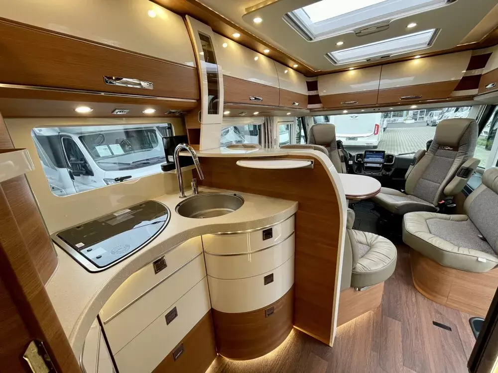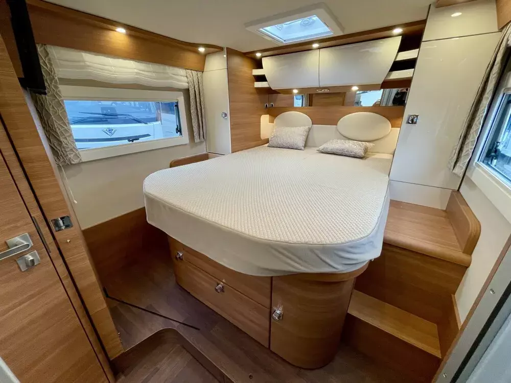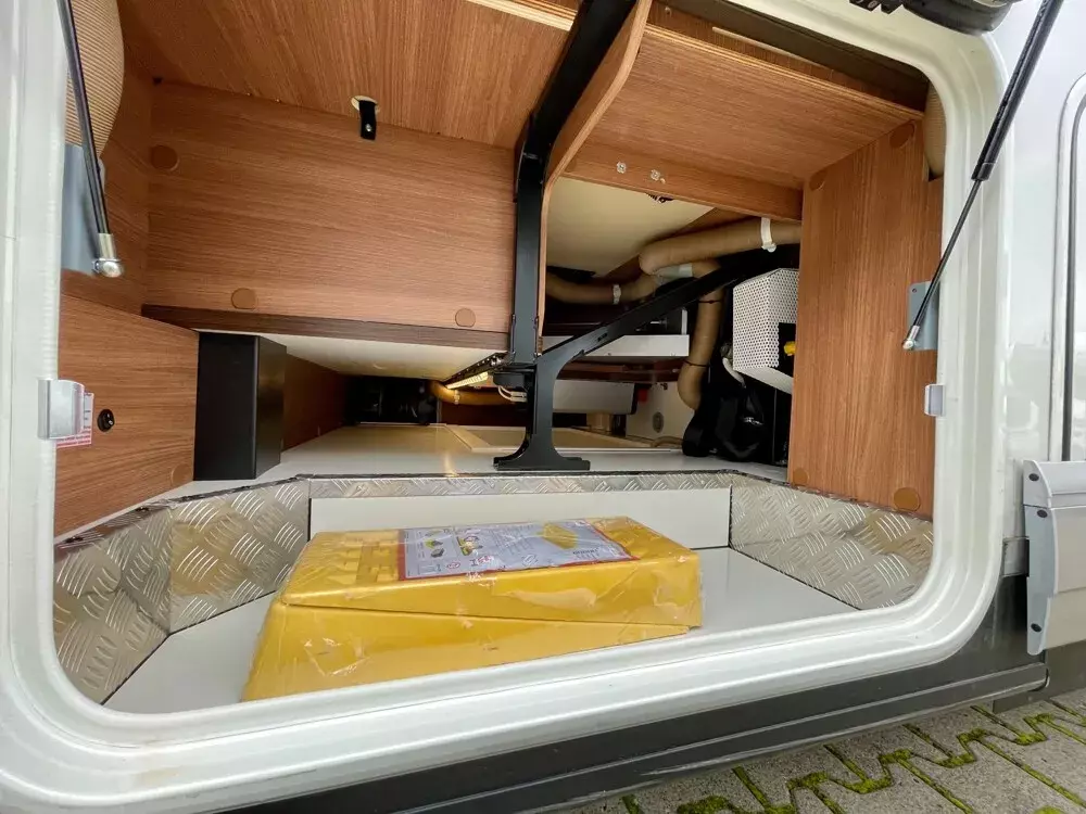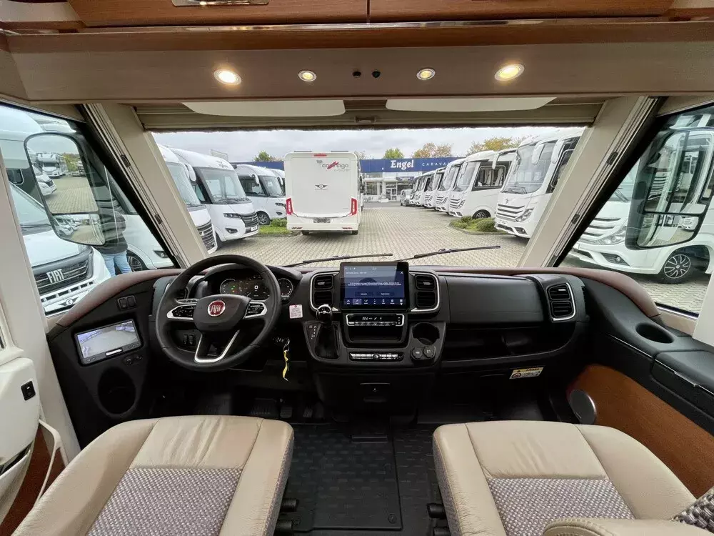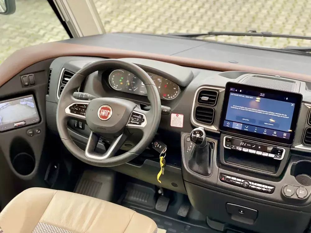 - Chassis bestehend aus: Fiat Ducato 2,2 Multijet 180 PS Euro 6 in Verbindung mit 9-Gang Wandler Automatik. Tempomat, Multifunktionslenkrad, 10" Navigationssystem mit Apple Carplay/Android Auto Funktion, Bluetooth, Freisprechsystem, DAB, Rückfahrkamera, Klimaautomatik Fahrerhaus, ABS, ESP, BI- LED Scheinwerfer Front, 16" Alufelgen (DOT 0822), Solaranlage 2 Module, 2x 80 Ah Gel-Batterie, Dometic Wechselrichter 1800 W, Fahrradträgersystem Heckgarage zum comfortablen Transport für mind. 2 Bikes, Twin Sat-Anlage inkl. 32" Smart-TV Wohnraum und 2. TV Heckschlafraum,