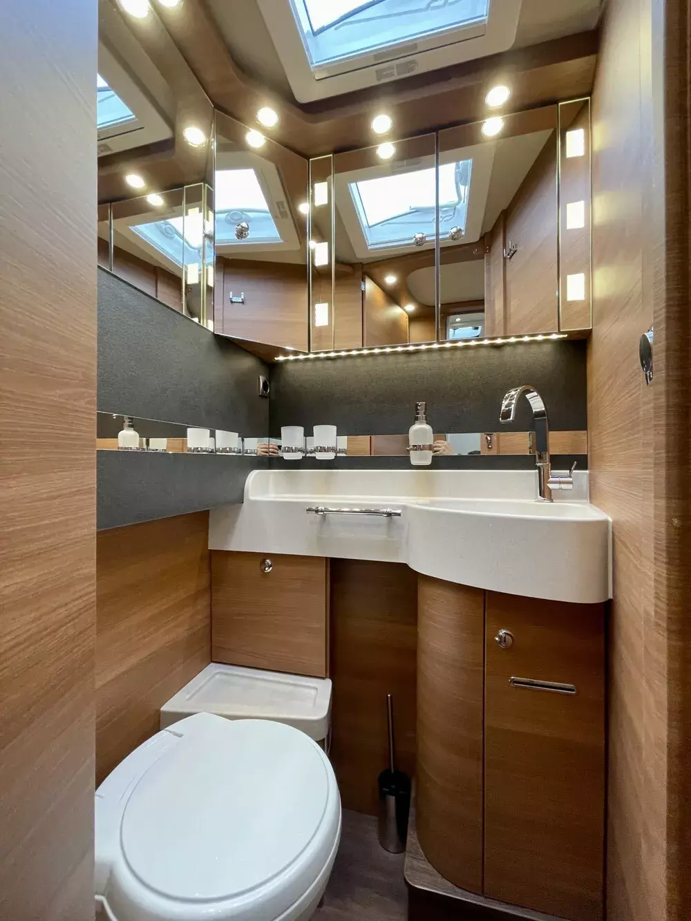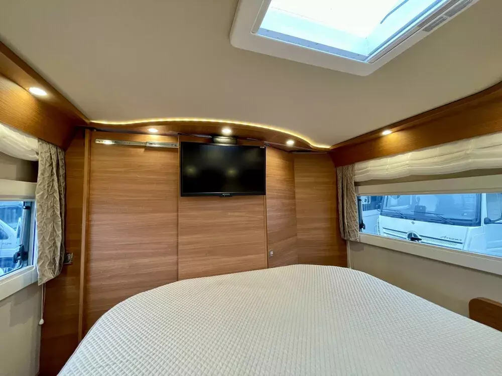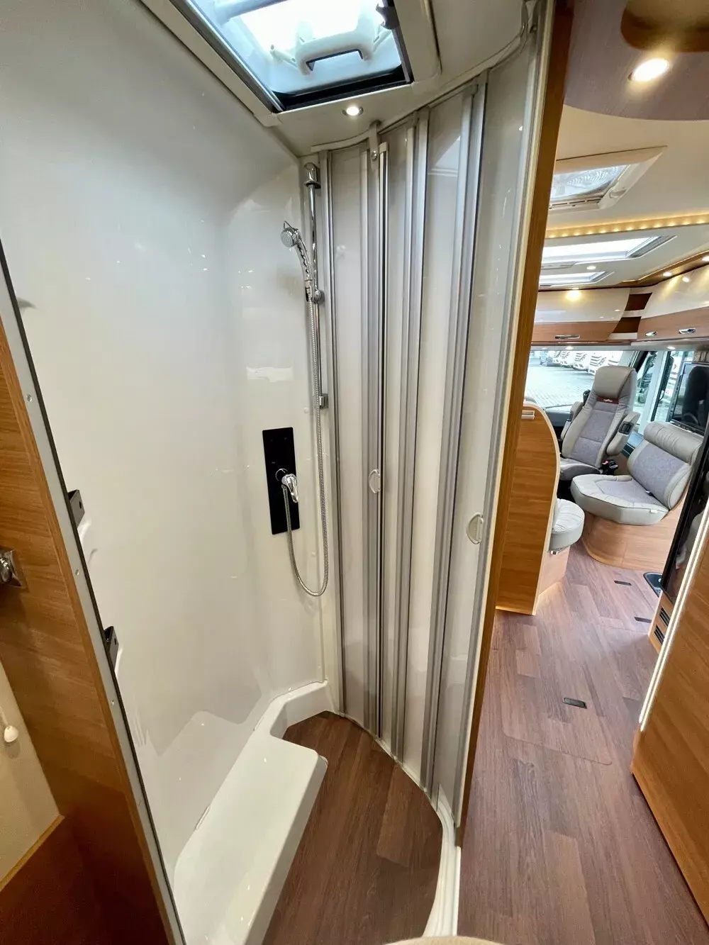 - Chassis bestehend aus: Fiat Ducato 2,2 Multijet 180 PS Euro 6 in Verbindung mit 9-Gang Wandler Automatik. Tempomat, Multifunktionslenkrad, 10" Navigationssystem mit Apple Carplay/Android Auto Funktion, Bluetooth, Freisprechsystem, DAB, Rückfahrkamera, Klimaautomatik Fahrerhaus, ABS, ESP, BI- LED Scheinwerfer Front, 16" Alufelgen (DOT 0822), Solaranlage 2 Module, 2x 80 Ah Gel-Batterie, Dometic Wechselrichter 1800 W, Fahrradträgersystem Heckgarage zum comfortablen Transport für mind. 2 Bikes, Twin Sat-Anlage inkl. 32" Smart-TV Wohnraum und 2. TV Heckschlafraum,