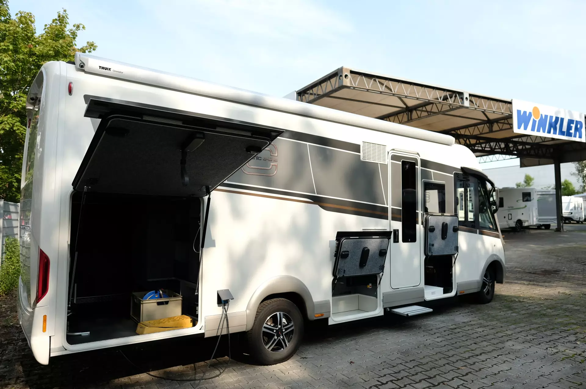 - Carthago Rückfahrkamerasystem mit Kameraeinzellinse im Heckteil integriert inkl. 7 Zoll Farbmonitor seitlich im Armaturenbrett
