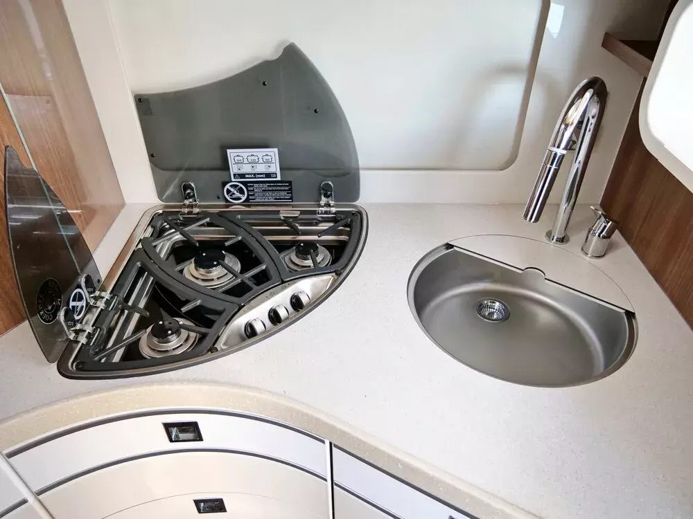 - Gas-Außenanschluss hinter Doppelboden-Außenstauraum Beifahrerseite
