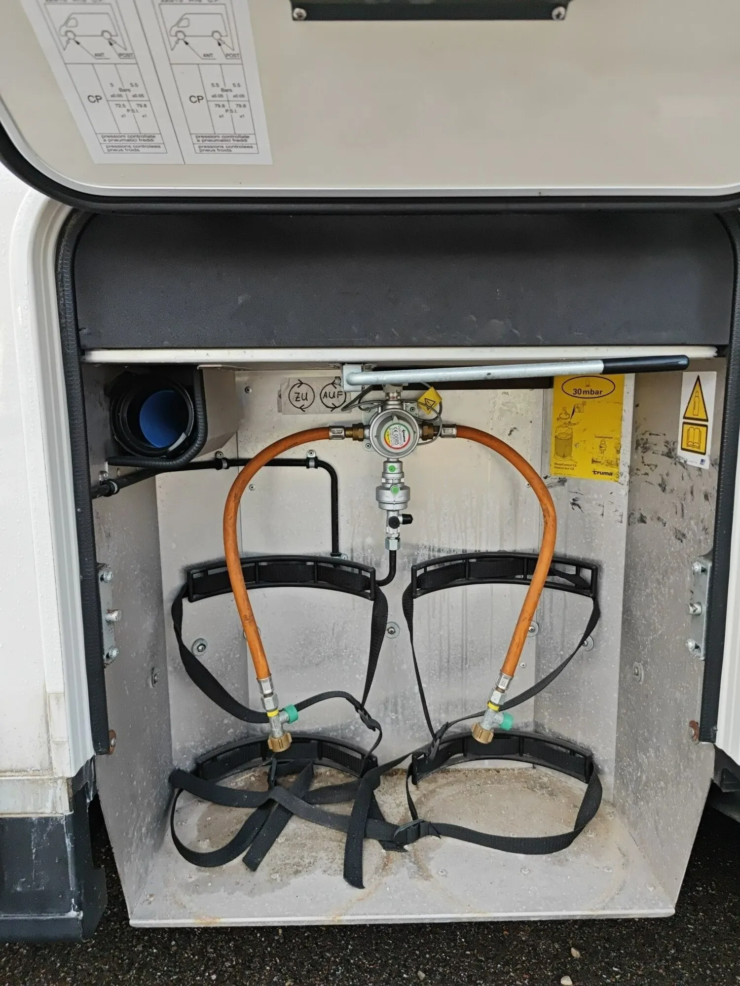 - Gas-Außenanschluss hinter Stauraumklappe im Doppelboden