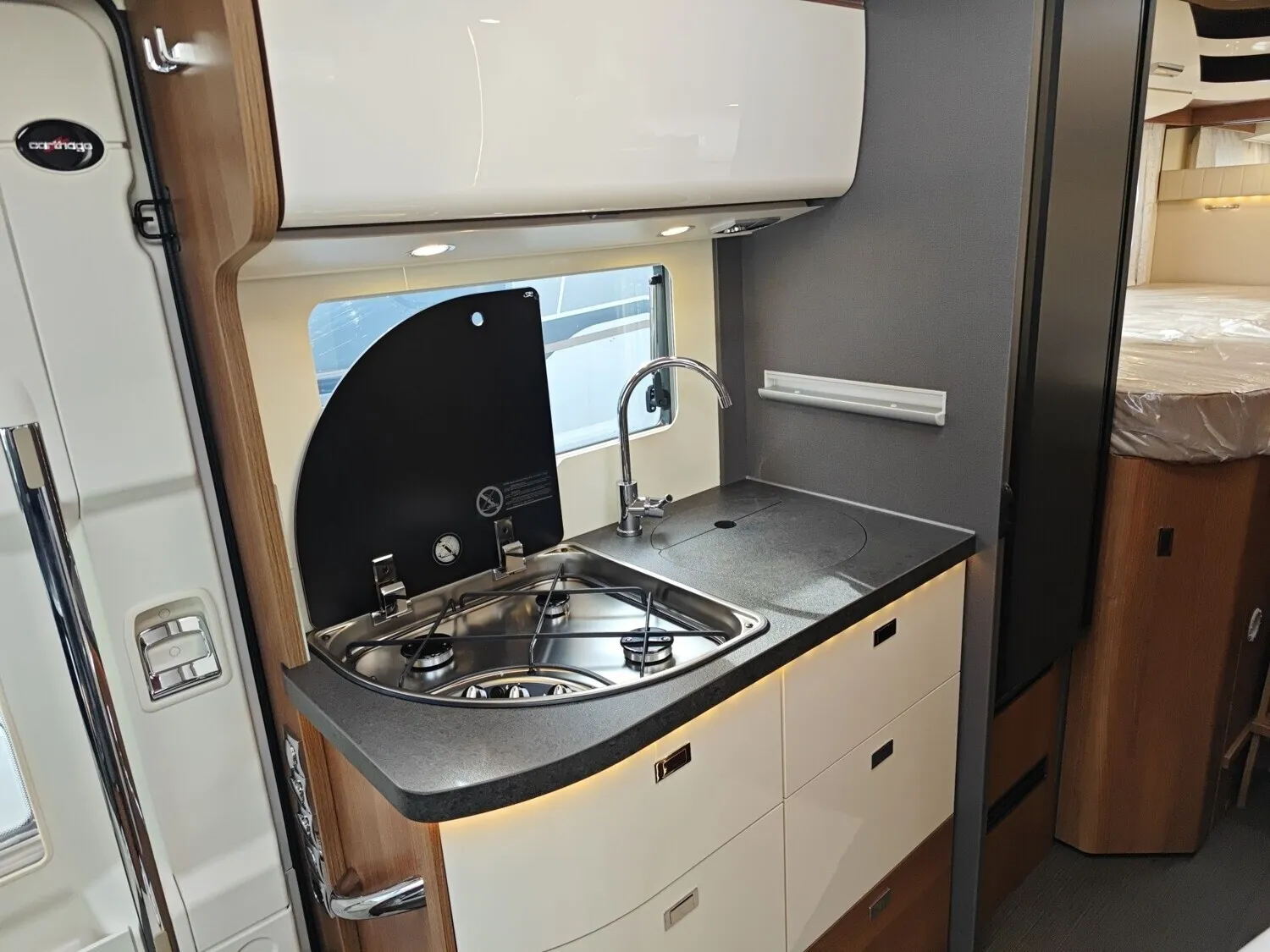 - Basis-Plus-Paket Fiat (Carthago Radzierblenden, Skid-Plate schwarz, Nebelscheinwerfer mit Abbiegelicht, Scheinwerferrahmen in schwarz, Tempomat, Ladebooster, Fahrerhausverdunklungssystem: Plissee an Front- und Seitenscheiben, Fahrerhauskomfortsitze mit Neigungs- und Höhenverstellung (vorn / hinten), Radiovorbereitung mit Dachantenne mit DAB+, Lautsprecher (4x), Radio / Moniceiver Pioneer 6,8 inkl. DAB+, Dachluke Midi-Heki mit LED-Spots über L-Wohnsitzgruppe, Große Rollergaragentür auf der Fahrerseite, XL-Aufbautür "premium two 2.0" (Breite 63 cm) mit Doppelverriegelung, Fenster- und Insektenschutzrollo, Lithium-Ionen-Batterie 90 Ah inkl. Batteriecomputer anstelle 80 Ah Gel-Batterie, SOG-Toilettenentlüftung, USB-Steckdose im Dachstauschrank über Heckbett)