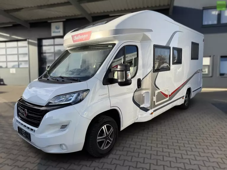 Wir bieten hier einen gebrauchten Challenger Genesis 288 EB auf einem Fiat-Chassis mit einem Queensbett und einem Hubbett an.
