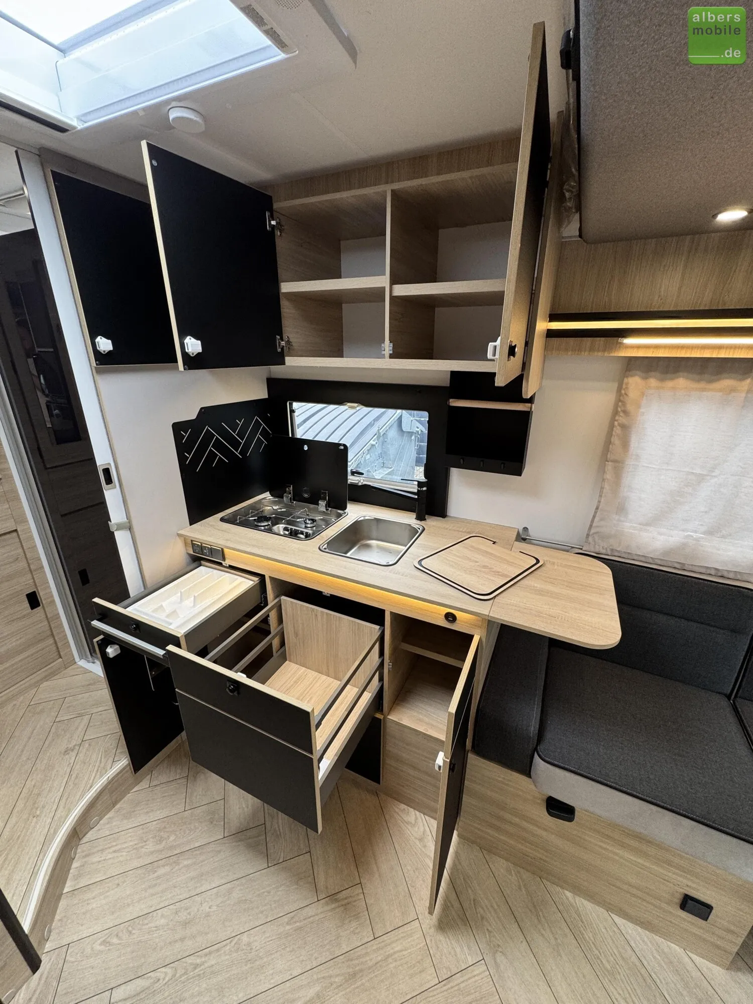 - Luxus-Aufbautür mit Fenster und zwei Sicherheitsschlössern, Zentralverriegelung Fahrerhaus/Wohnraum