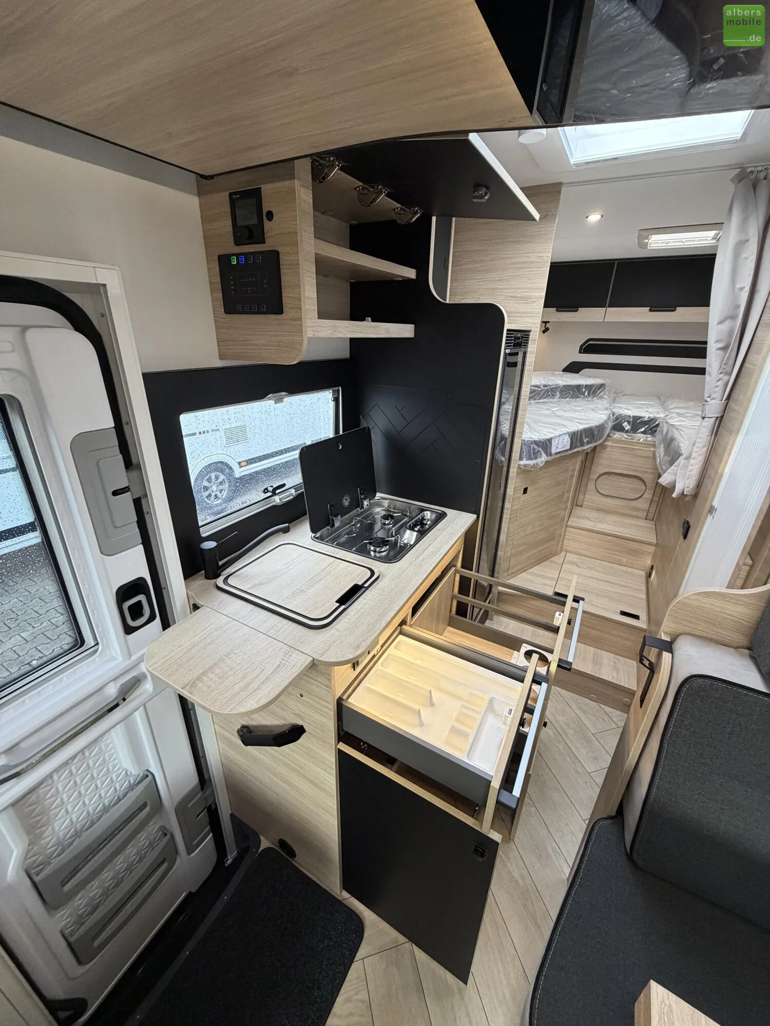 - Luxus-Aufbautür mit Fenster und zwei Sicherheitsschlössern, Zentralverriegelung Fahrerhaus/Wohnraum