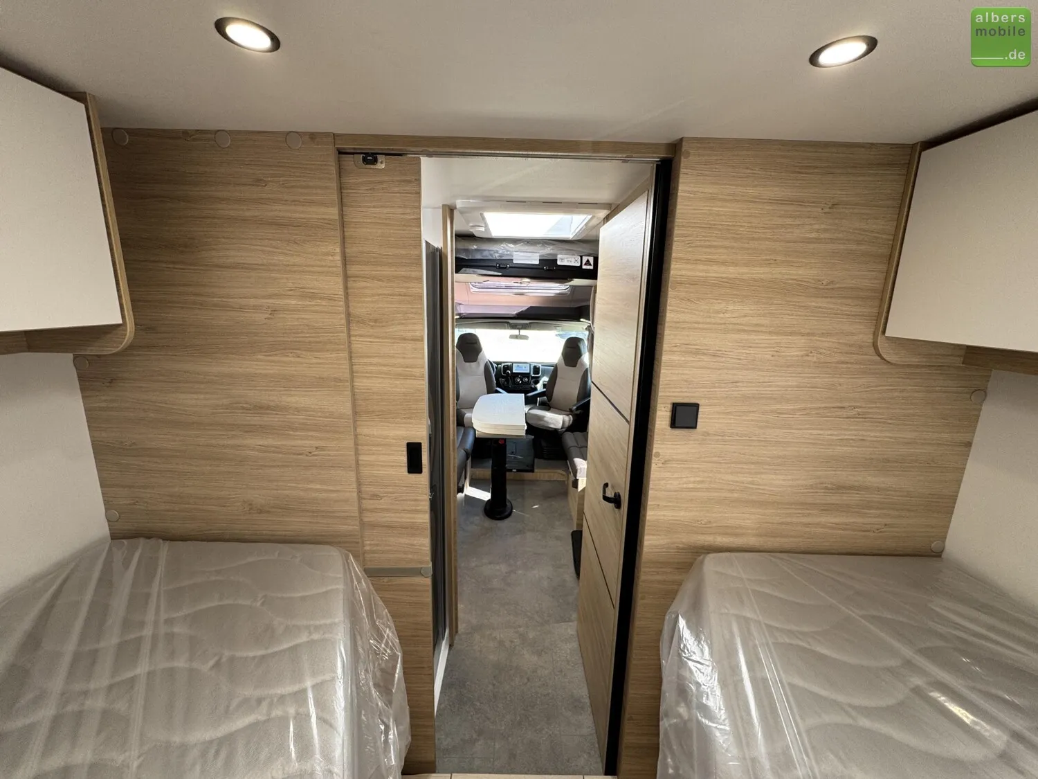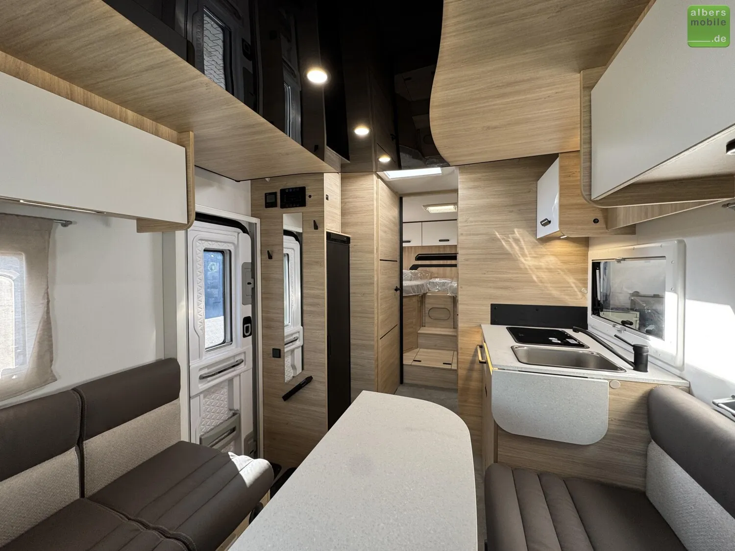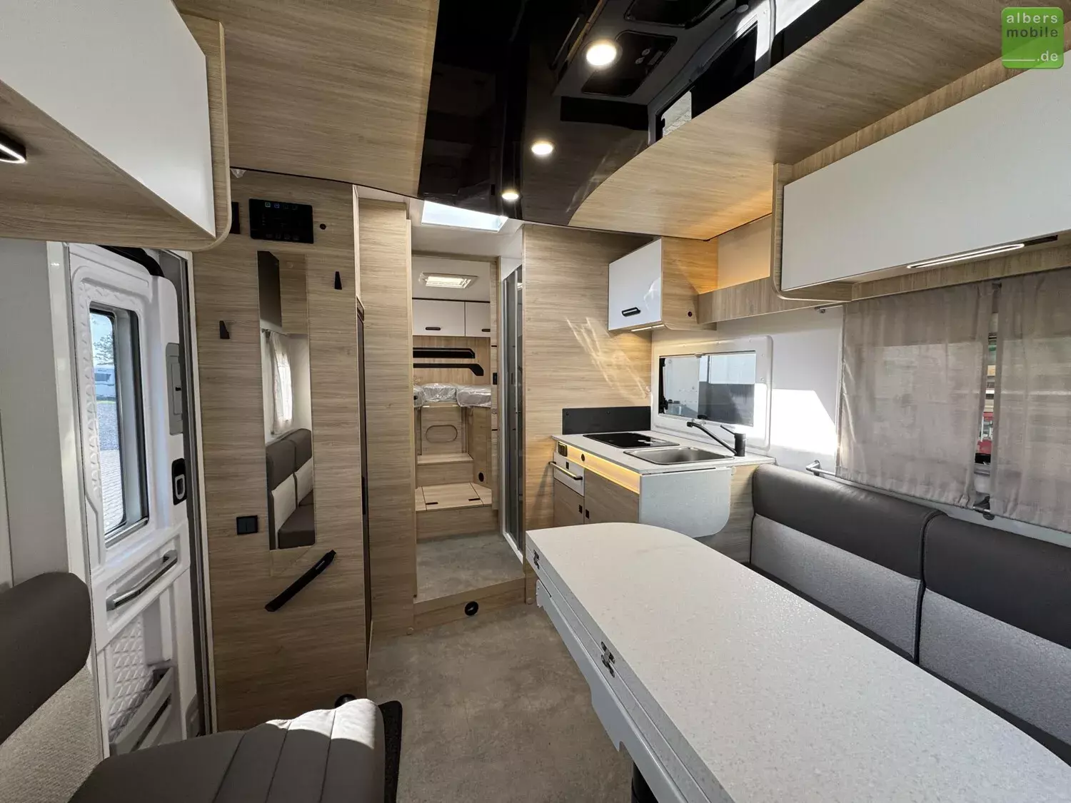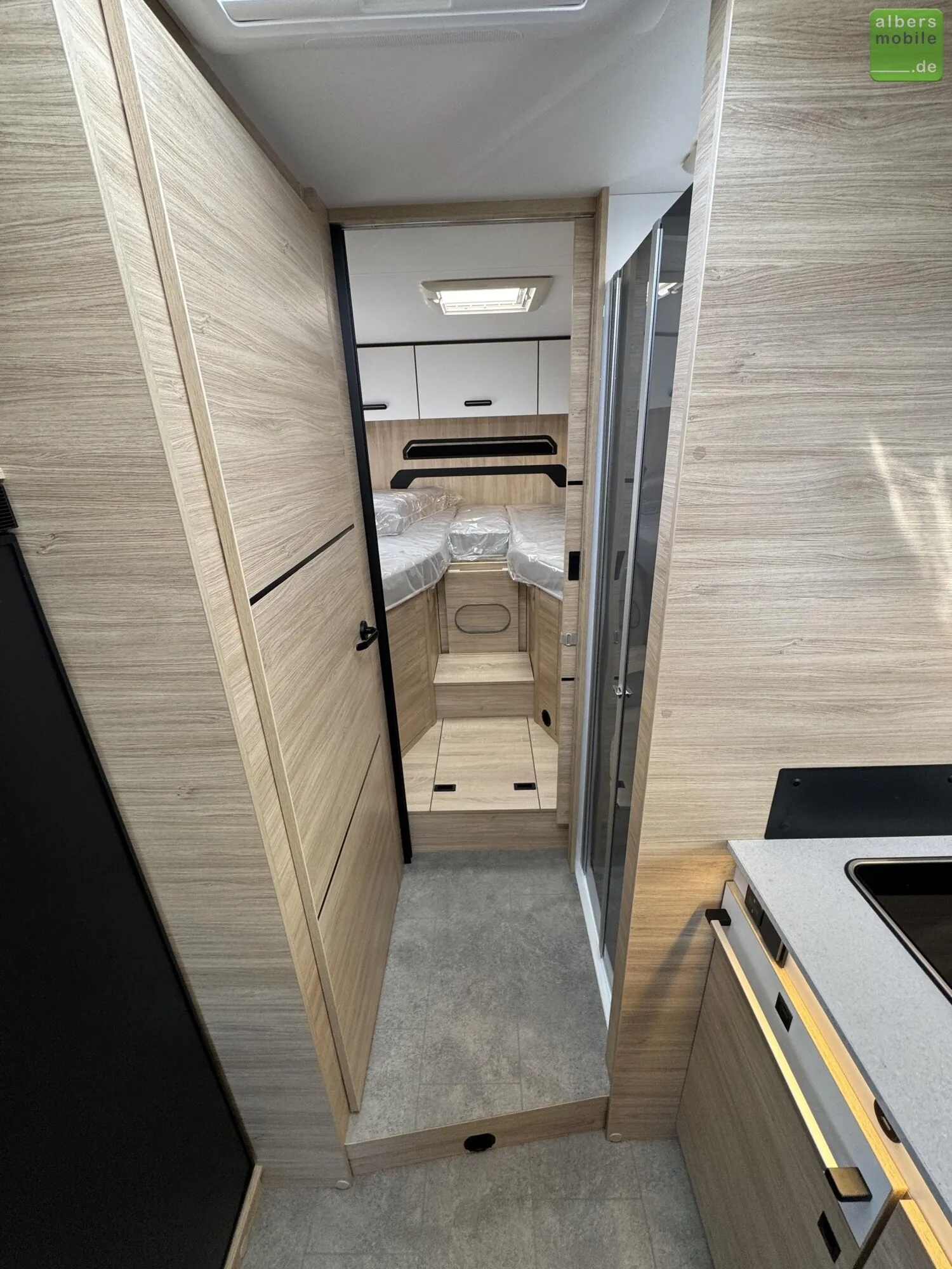 Der Teilintegrierte 317 vereint Raum, Komfort und Stil mit zwei 90 cm breiten Einzelbetten, die sich zu einem Kingsize-Bett verbinden lassen, und einer großzügigen Face-to-Face-Sitzgruppe - ideal zum Entspannen oder gemeinsamen Essen. Das doppelt abgetrennte Bad trennt Wohn- und Schlafbereich vollständig und sorgt so für mehr Privatsphäre und Komfort. Ein Modell für anspruchsvolle Reisende, die Wert auf Bewegungsfreiheit und ein stilvolles Interieur legen.