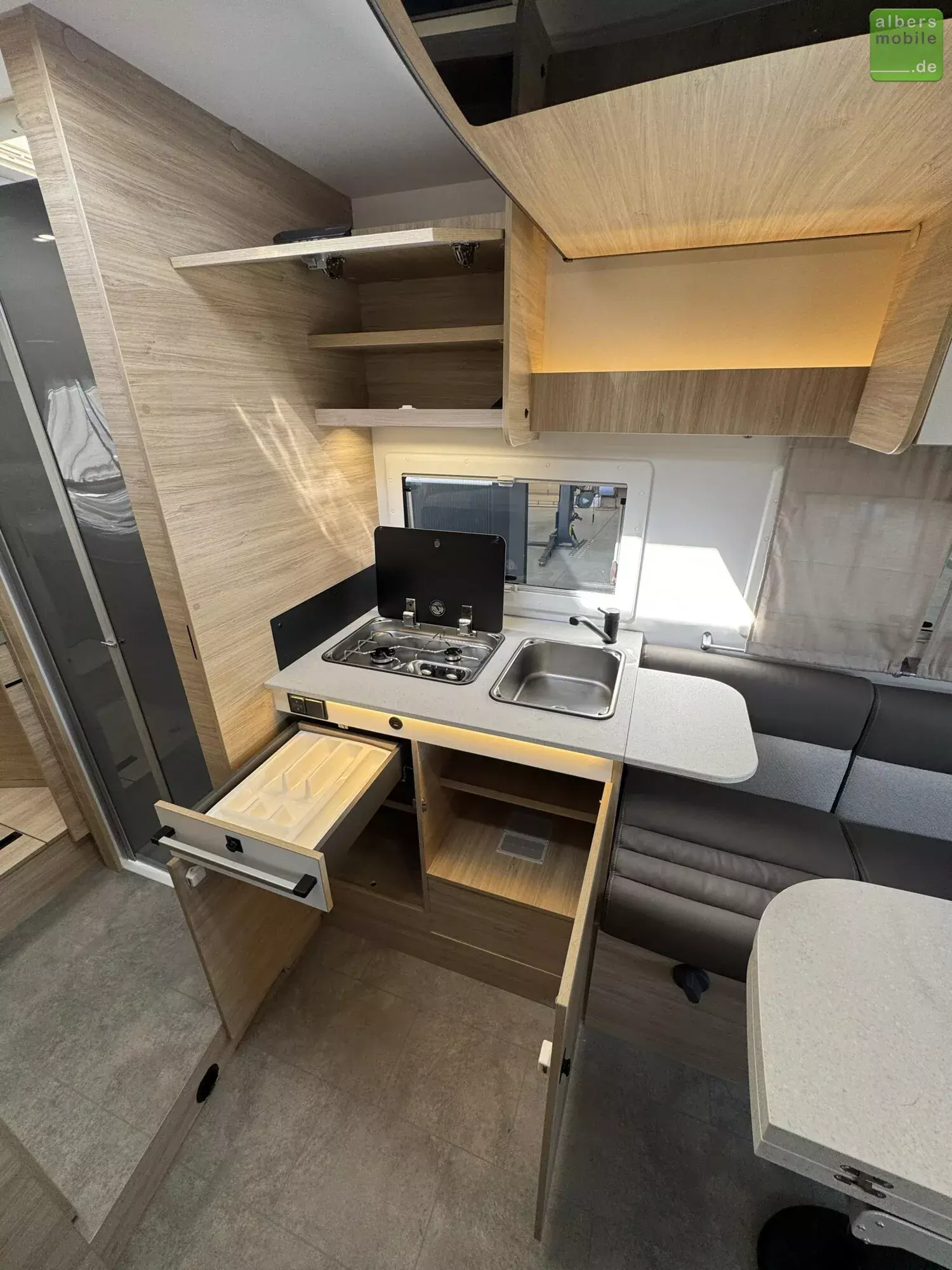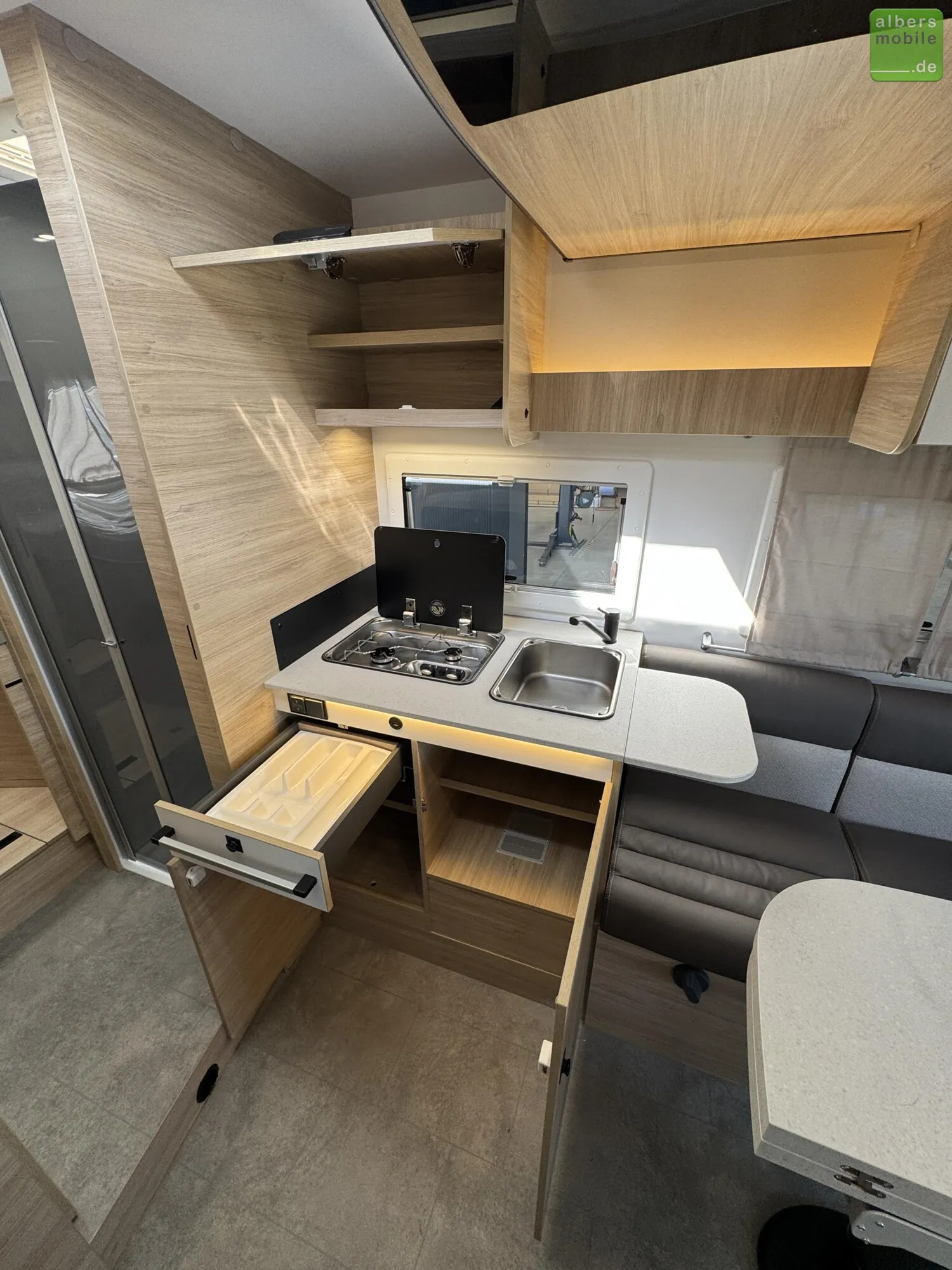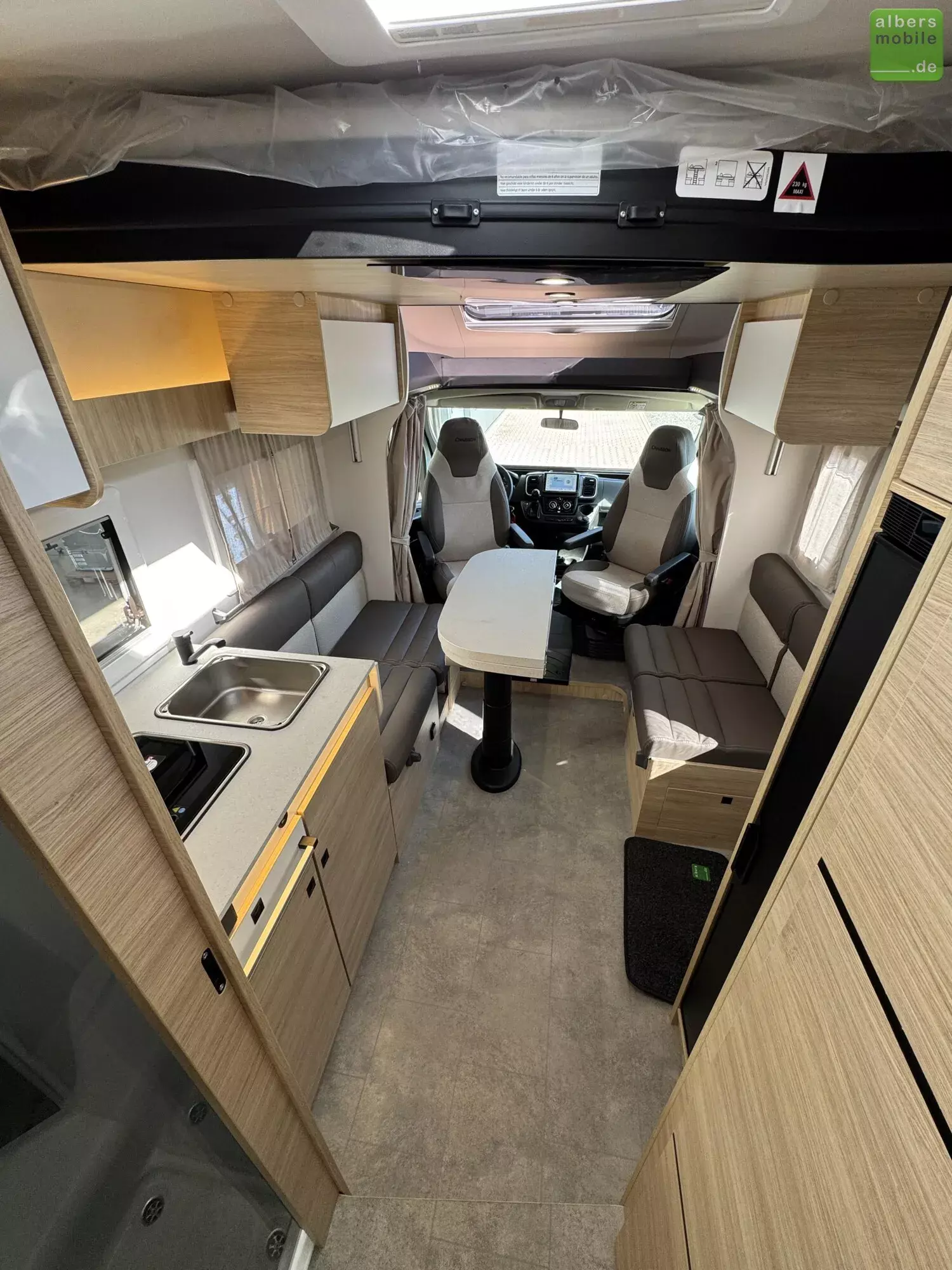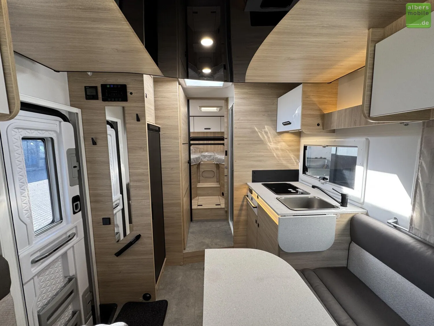 Der Teilintegrierte 317 vereint Raum, Komfort und Stil mit zwei 90 cm breiten Einzelbetten, die sich zu einem Kingsize-Bett verbinden lassen, und einer großzügigen Face-to-Face-Sitzgruppe - ideal zum Entspannen oder gemeinsamen Essen. Das doppelt abgetrennte Bad trennt Wohn- und Schlafbereich vollständig und sorgt so für mehr Privatsphäre und Komfort. Ein Modell für anspruchsvolle Reisende, die Wert auf Bewegungsfreiheit und ein stilvolles Interieur legen.