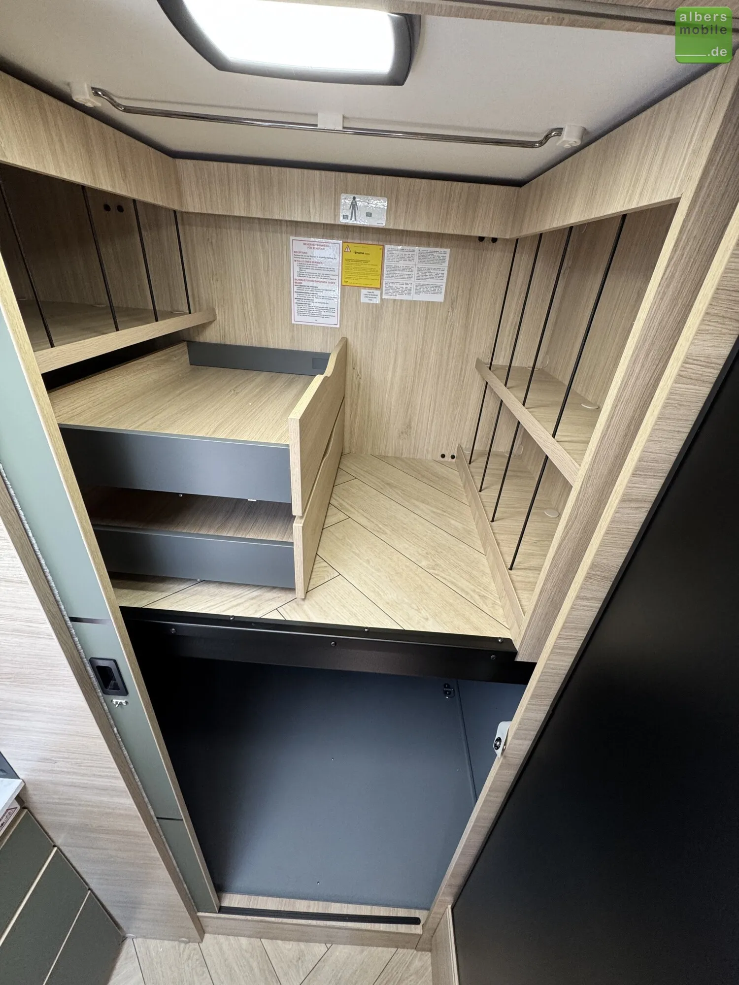 Der X250 ist der große Bruder des X150. Er bietet alle Vorteile des X150, überrascht aber bei nur 6,36 m Länge (Van-Format) mit einem auf dem Markt einzigartigen Heckbereich: Das Konzept SDR (Smart Dressing Room) erlaubt eine Höhenverstellung des Kleiderschranks, um den Garagen-Laderaum an Ihre Bedürfnisse anzupassen.