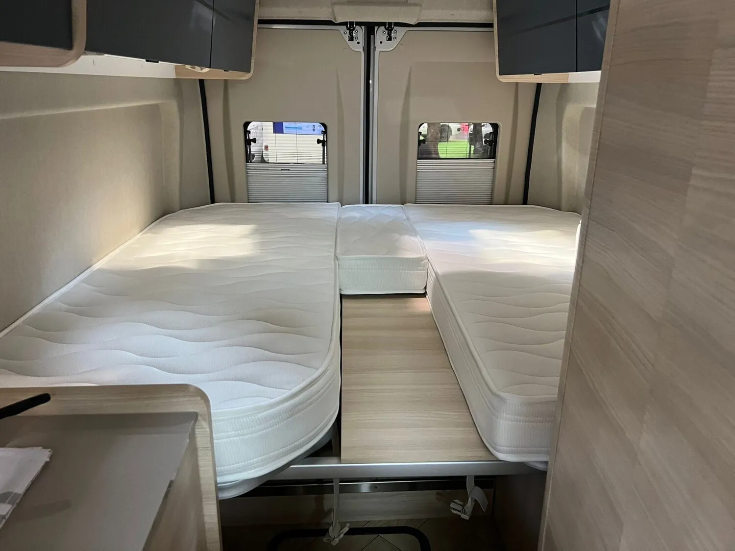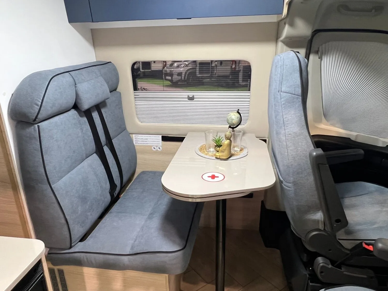 - Serienausstattung (1): Weiß; Klimaautomatik im Fahrerhaus; Fahrer-und Beifahrerairbag; Fix and Go; Höhenverstellbare Drehstee mit zwei Armlehnen; Tempomat+Geschwindigkeitsbegrenzer; ESP; Traction+; Bergabfahrassistent; Panorama-Dachhaube (oder 2 Dachhauben); Thermo-Innenrollos im Fahrerhaus; Elektrische Rückspiegel mit Abtau-Automatik; USB-AnschiusVUSB-C; Fenster-Doppelverglasung mit Kombirollos; Ganzjahresreifen; TV-Vorberatung; Waschraum mit Fenster; Ausstellfenster am Heck; Gasheizung; Erweiterung für Esstisch