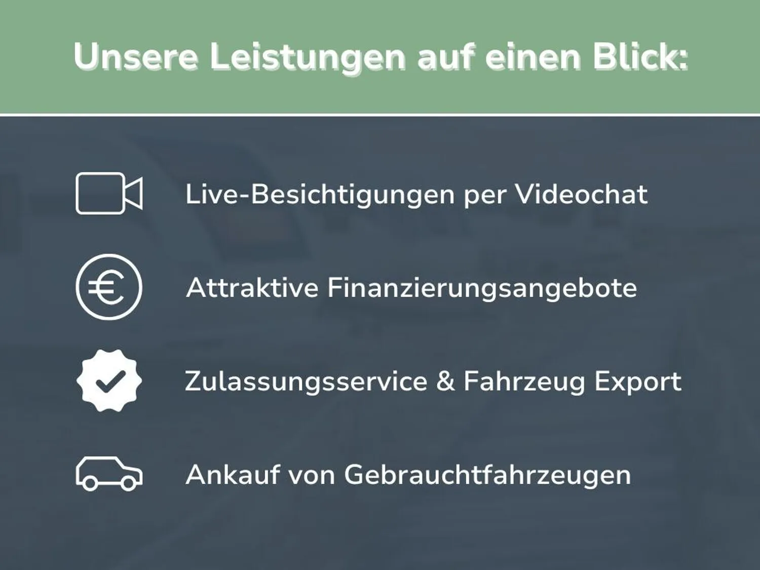 - Serienausstattung (2): Elektrische Trittstufe; Vorbereitung Solarpanel; Vorverkabelung Rückfahrkamera; ECO Paket Start/Stop-System inkl. smarter Lichtmaschine; Look: Verchromte Lüftungsöffnungen, Lederlenkrad, 16' Alufelgen; Zubehör: Verdunkelungsrollos Fahrerhaus, Riegengittertür, Seltenfenster hinten, Außenbeleuchtung; Connect: Multimediasystem Apple/Android, Rückfahrkamera