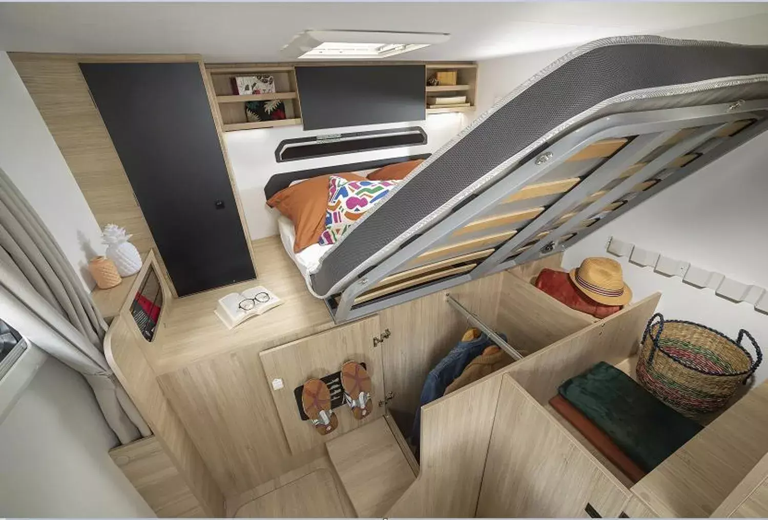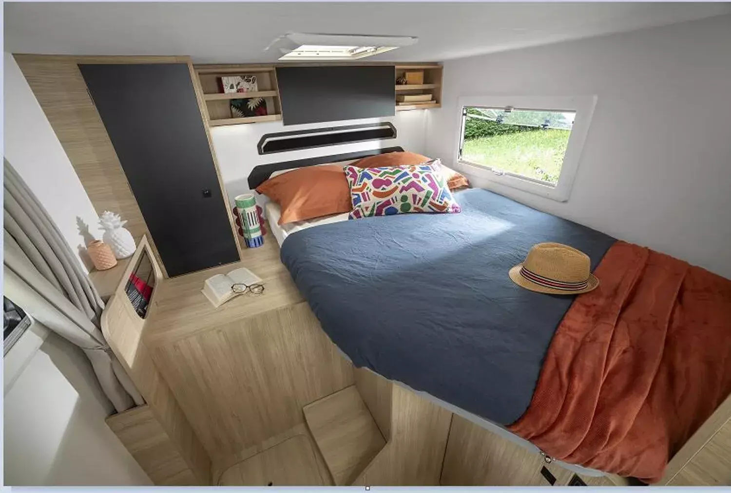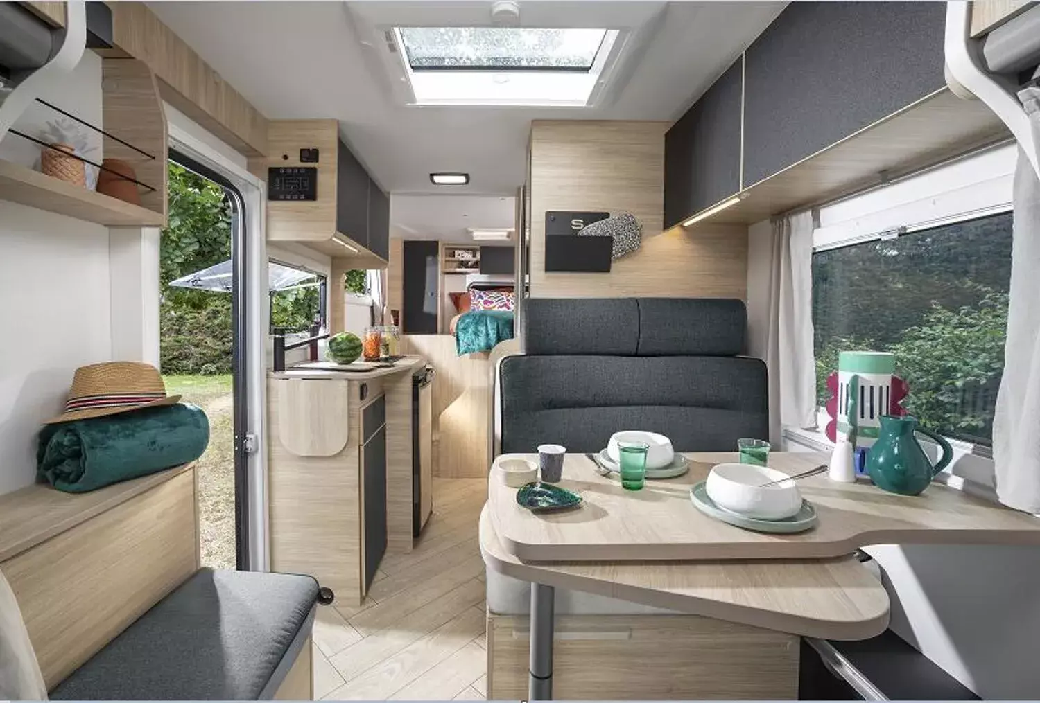 - Sport Line (2): Lichtautomatik und Automatischer Scheibenwischer mit Regensensor; Nebelscheinwerfer; Panorama-Dachhaube (oder 2 Dachhauben); START & STOP; Schonbezüge für Fahrerhaussitze; TV-Vorbereitung; Technibox; Tempomat + Geschwindigkeitsbegrenzer; Trennvorhänge Fahrerhaus/Innenraum; USB-Anschluss/USB-C; Vorbereitung Solarpanel; Vorverkabelung Rückfahrkamera; Stahlfelgen mit Radkappen 16" grau