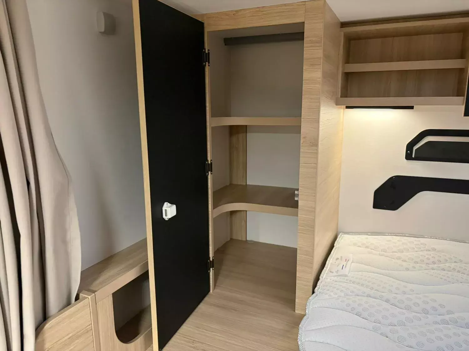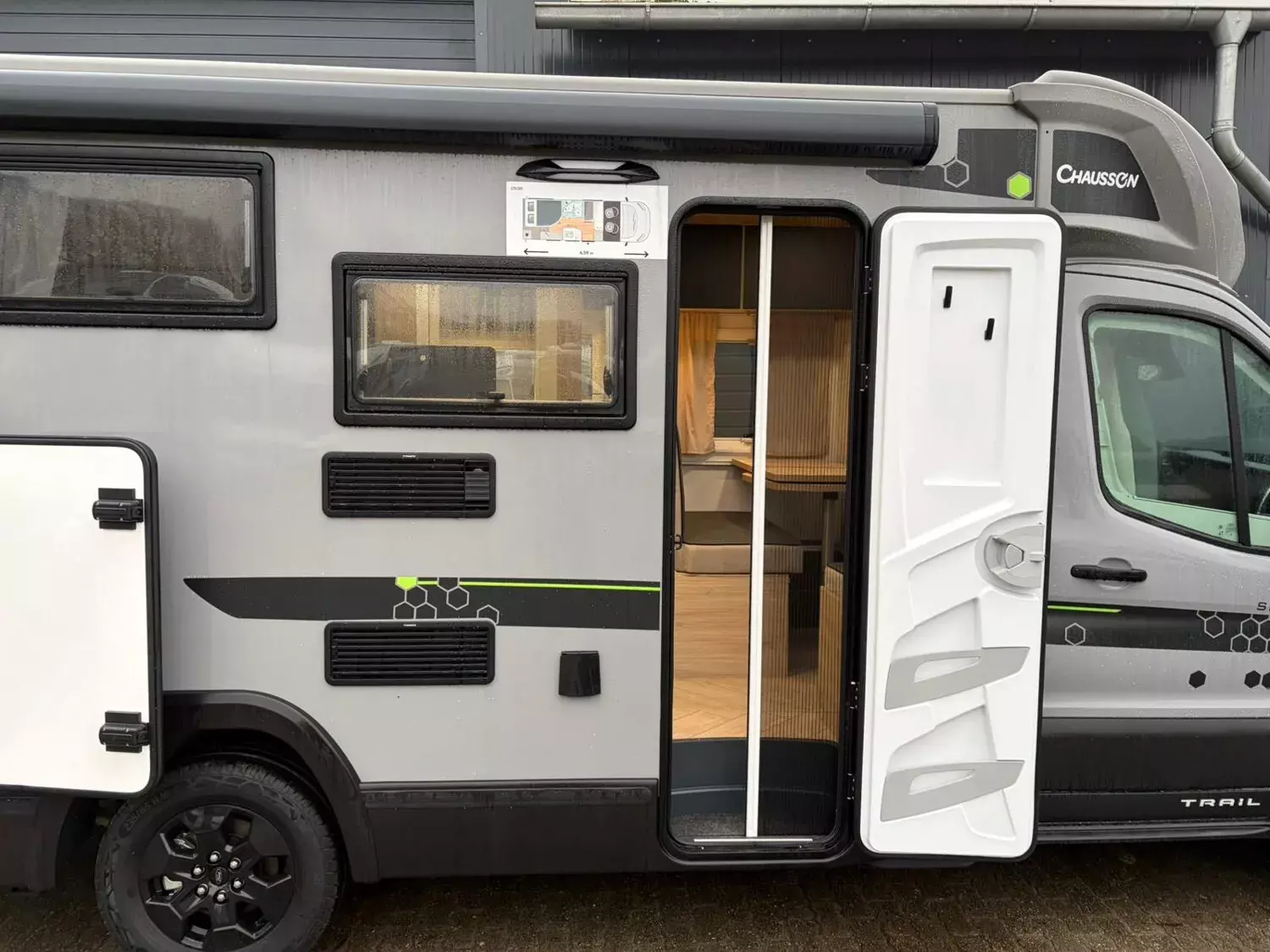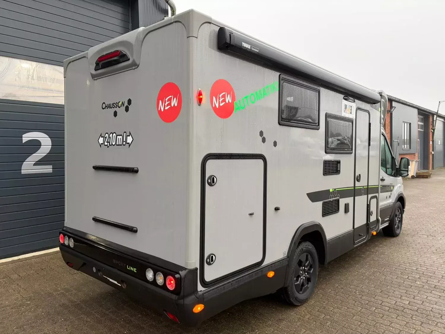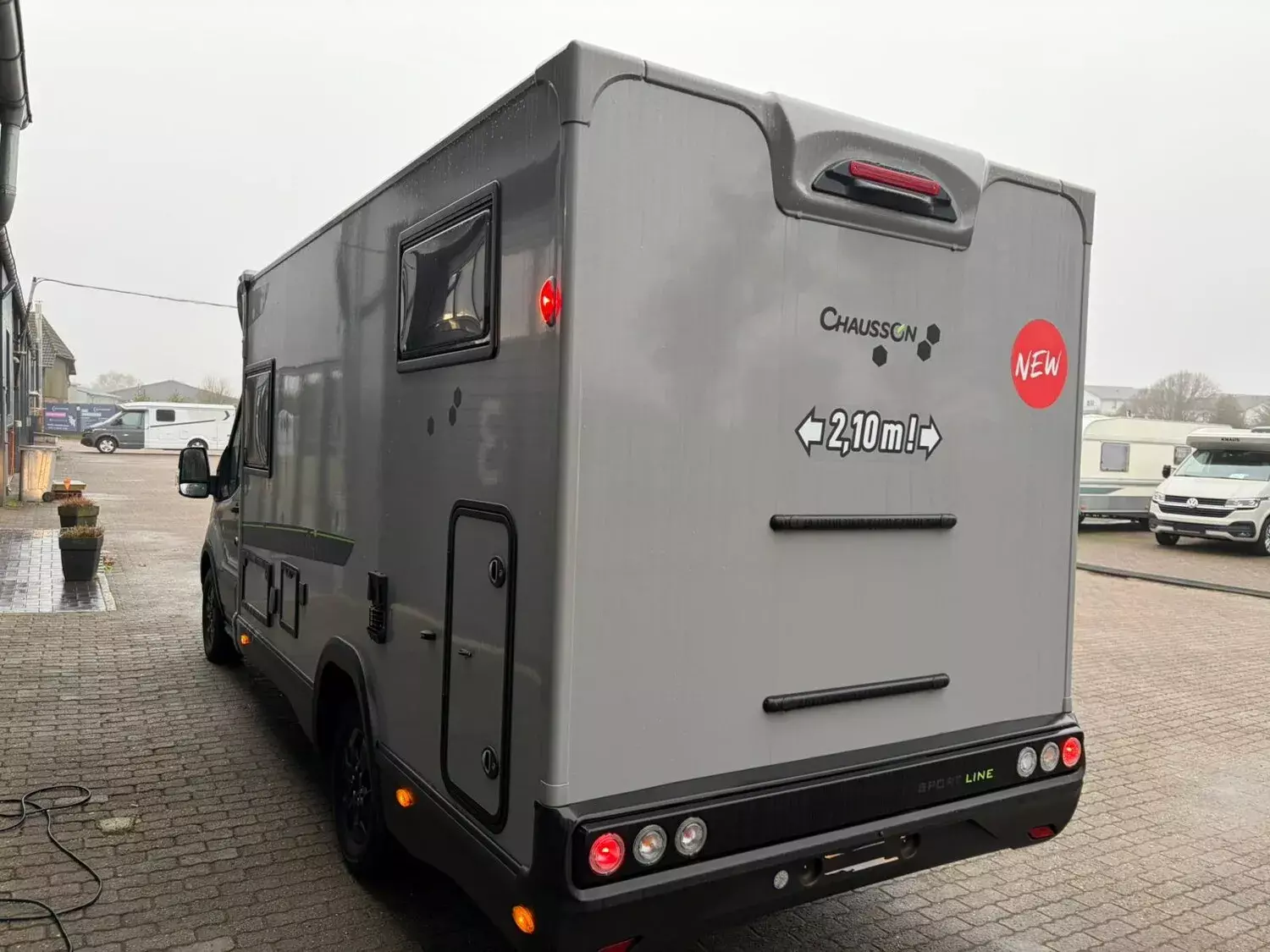 - Sport Line (3): Thermo-Innenrollos im Fahrerhaus; Weiß; 16" Alufelgen schwarz; 8-Gang-Automatikgetriebe; Gas-Außenanschluss; Komfortmatratzen; Matter-grau; Panorama-Dachfenster im Fahrerhaus; Schuhregal; Trail Kühlergrill; Wasseranschluss außen; Kleiderschrank; Kopfteil des Bettes;