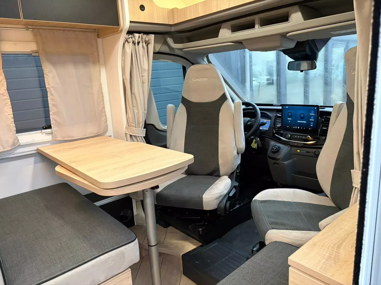 - First Line (2): Klimaanlage Fahrerhaus automatische; Lichtautomatik und Automatischer Scheibenwischer mit Regensensor; Nebelscheinwerfer; Panorama-Dachhaube (oder 2 Dachhauben); START & STOP; Schonbezüge für Fahrerhaussitze; TV-Vorbereitung; Technibox; Tempomat + Geschwindigkeitsbegrenzer; Trennvorhänge Fahrerhaus/Innenraum; USB-Anschluss/USB-C; Vorbereitung Solarpanel; Vorverkabelung Rückfahrkamera