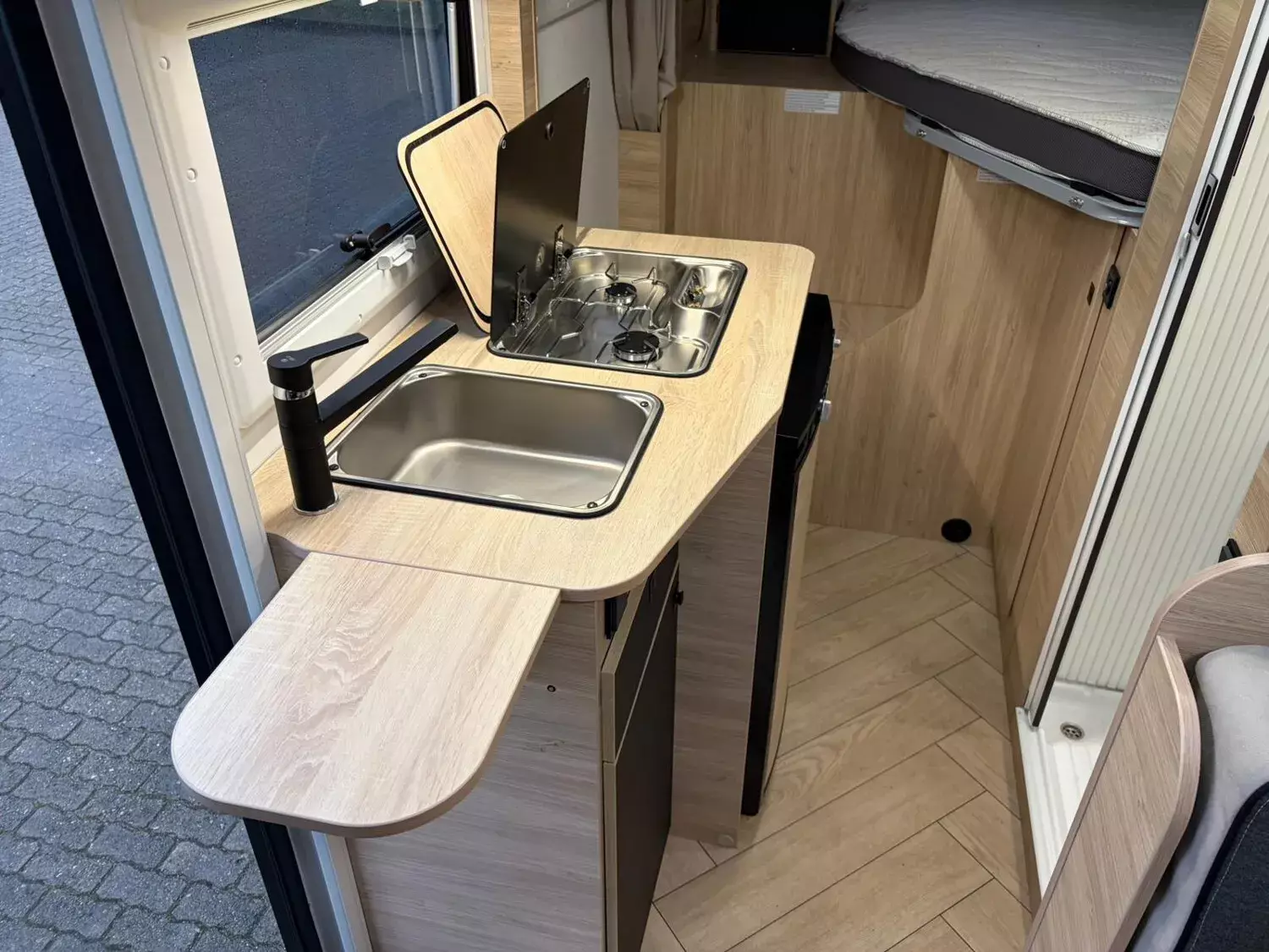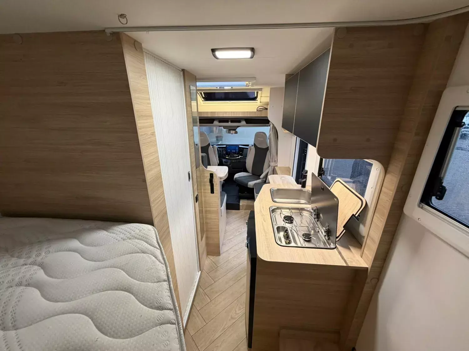 - First Line (3): Stahlfelgen mit Radkappen 16" grau; Thermo-Innenrollos im Fahrerhaus; Weiß; 16" Alufelgen schwarz; 8-Gang-Automatikgetriebe; Gas-Außenanschluss; Komfortmatratzen; Matter-grau; Panorama-Dachfenster im Fahrerhaus; Schuhregal; Trail Kühlergrill; Wasseranschluss außen; Kleiderschrank; Kopfteil des Bettes;