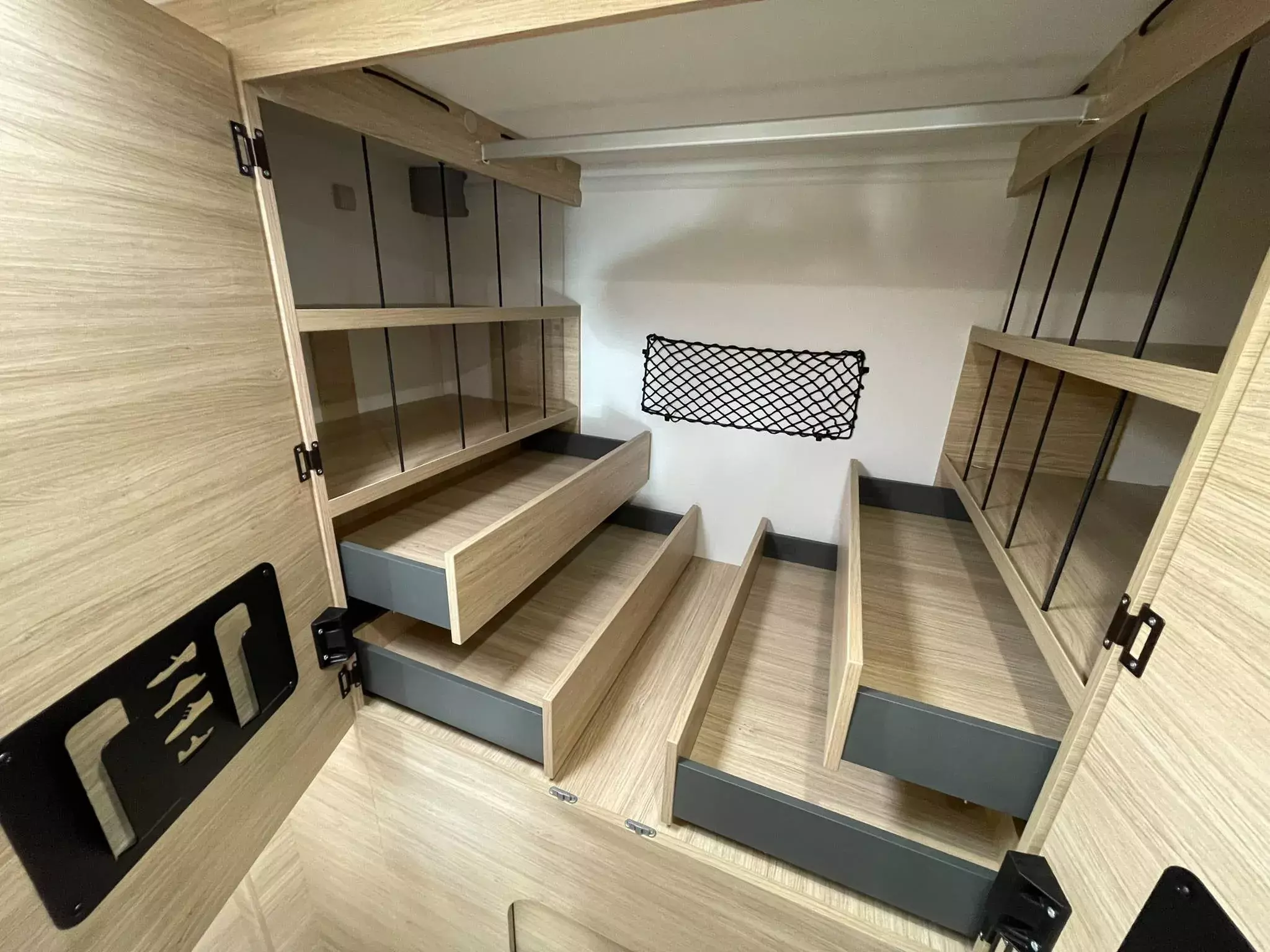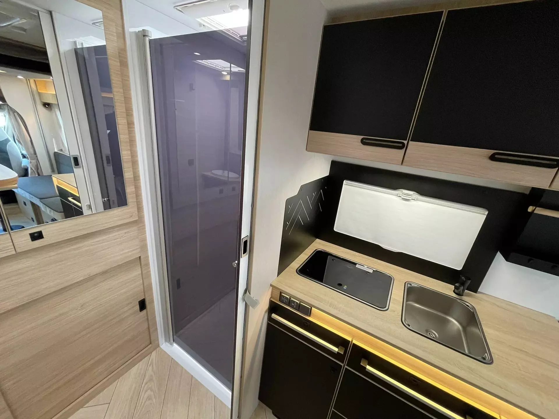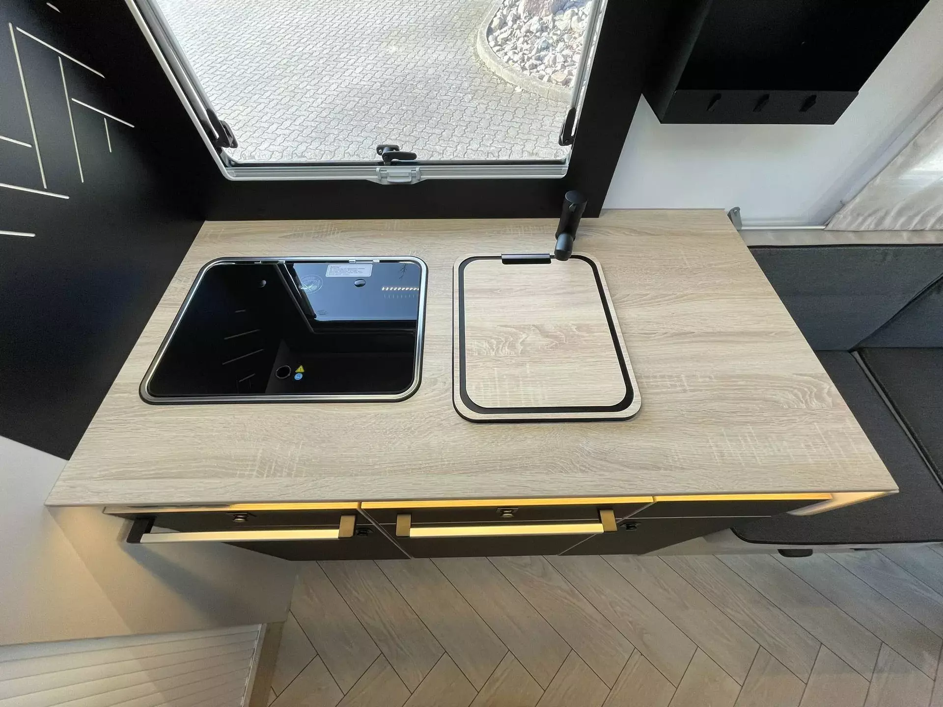 - TITANIUM LINE FORD (3): XL Aufbau-Tür (65 cm) mit Fenster; 16”-Felgen; Elektrische Feststellbremse; FORD Pass; Gas-Außenanschluss; Klimaanlage Fahrerhaus automatische; Komfortmatratzen; Lichtautomatik und Automatischer Scheibenwischer mit Regensensor; START & STOP; Stahlfelgen mit Radkappen 16" grau; Wasseranschluss außen; Ankleideraum mit Schubladen; Spiegel mit indirekter Beleuchtung am Eingang