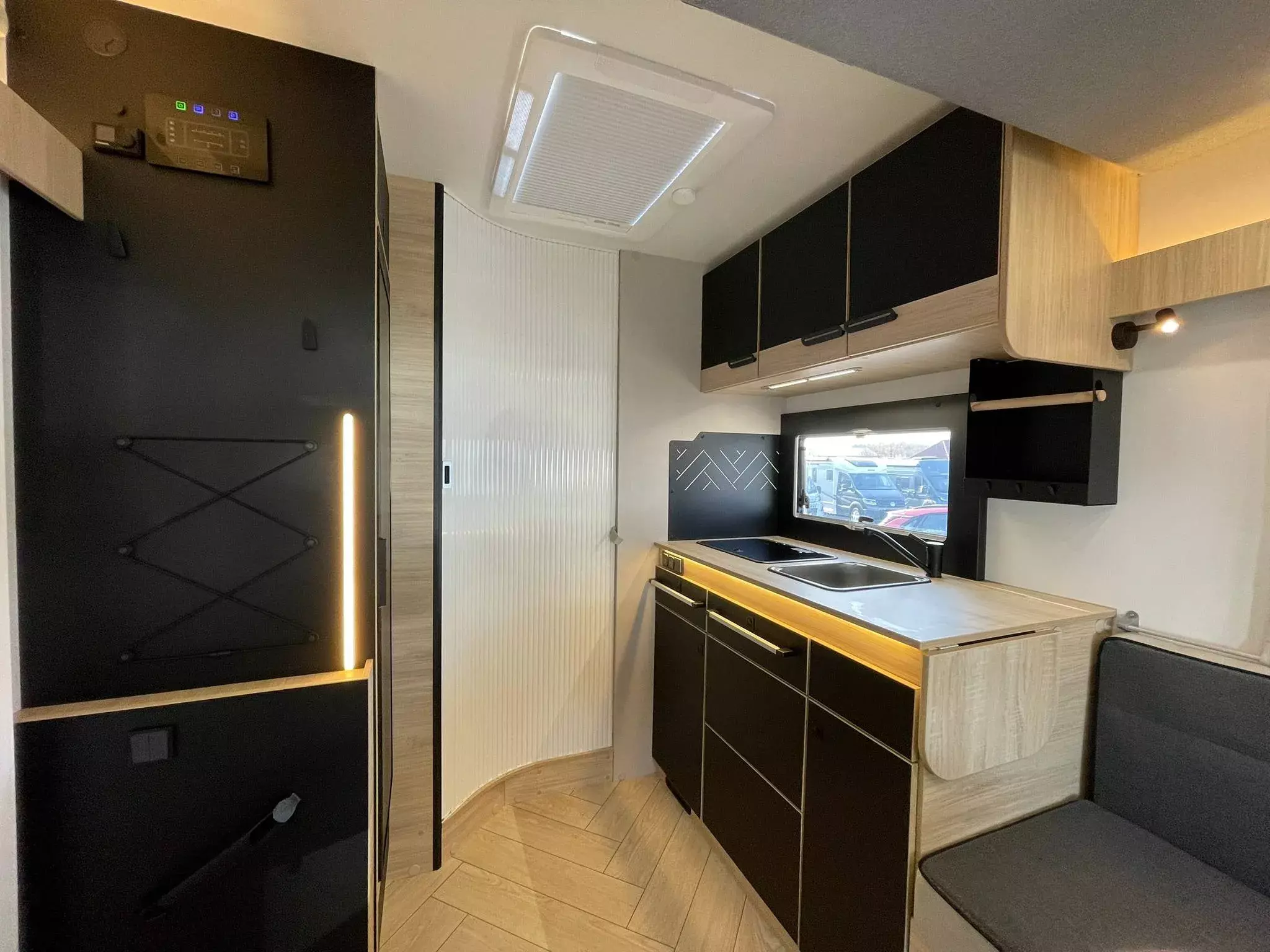 - Arctic: Isolierter und beheizter Abwassertank, Isoliermatten außen, Winterabdeckung für Kühlschrankgitter, Diesel verstärkte Heizung, Elektroboiler*, Fußbodenheizung (-erwärmung)