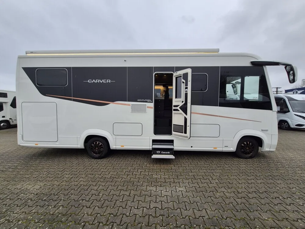- Centurion Style-Paket 1 (Möbelbau in Atlas Zeder mit Dachschrank-Möbelfronten in Atlas Zeder und Griffleisten in Edelstahl-Optik, Außendekor "Centurion Style" im brushed Folien Design inklusive Schriftzüge, Aufbaufenster mit Tönung in privacy black, Objektboden Soft-Walk in Yacht-Style, Shadow Line LED Hauptscheinwerfer und im Stoßfänger integrierte LED-Nebelscheinwerfer, sowie statisches Kurvenlicht. Tagfahr-Blinklicht mit LED)