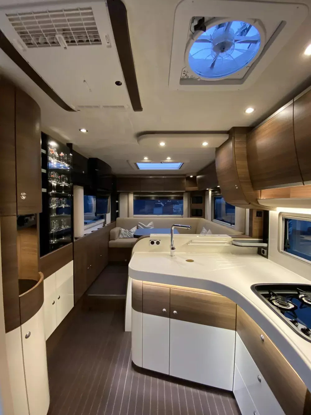 - Ambiente Style Paket 1 (Möbelbau in Jatoba Brilliant mit Dachschrank-Möbelfronten in Jatoba-Brilliant und Griffleisten in Edelstahl-Optik, Außendekor "Centurion Style" inklusiv Schriftzug, Aufbaufenster mit Tönung in privacy black,Jalousien Wohnraum in Holzoptik, Objektboden Soft-Walk in Yacht-Style)