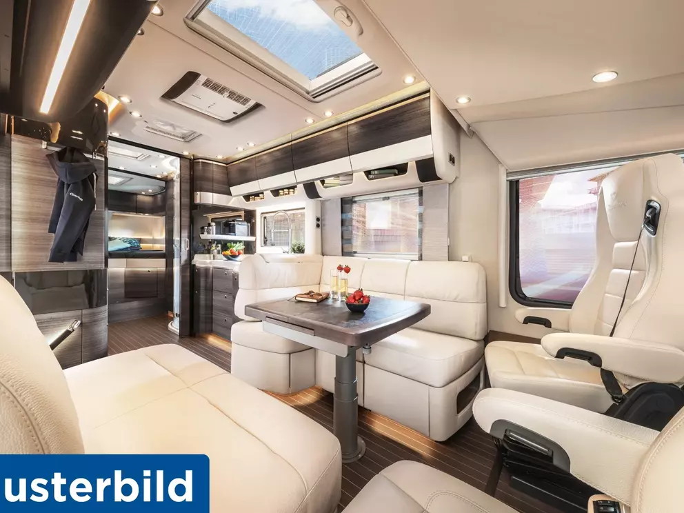 -Designpaket EDITION 70 Charisma: Außen mit doppelt-verglasten, seitlichen Echtglasfenstern (getönt in Wohn- und Schlafraum) und hochwertiger, gebürsteter Metallicfolie im "Centurion Style-Design" außen inkl. graphitgraumen Speer. Design-Paket EDITION 70 Charisma: Innen mit Möbelbau in Atlas Zeder und exklusiven Dachschrank-Möbelfronten im Wohnraum in 2/3 Zeder und 1/3 Sensosan creme-weiß mit Griffleisten in Edelstahl-Optik, Jalousien im Wohnraum in Holzoptik und Objektbodenbelag Soft-Walk im Yacht-Style