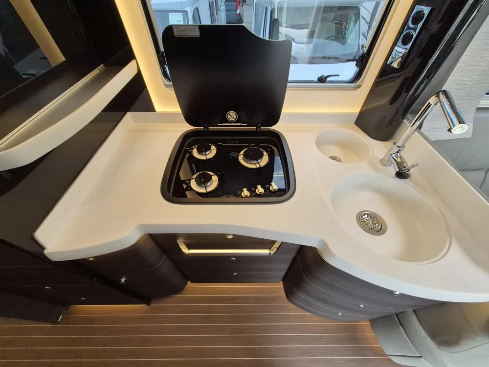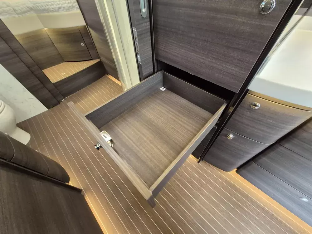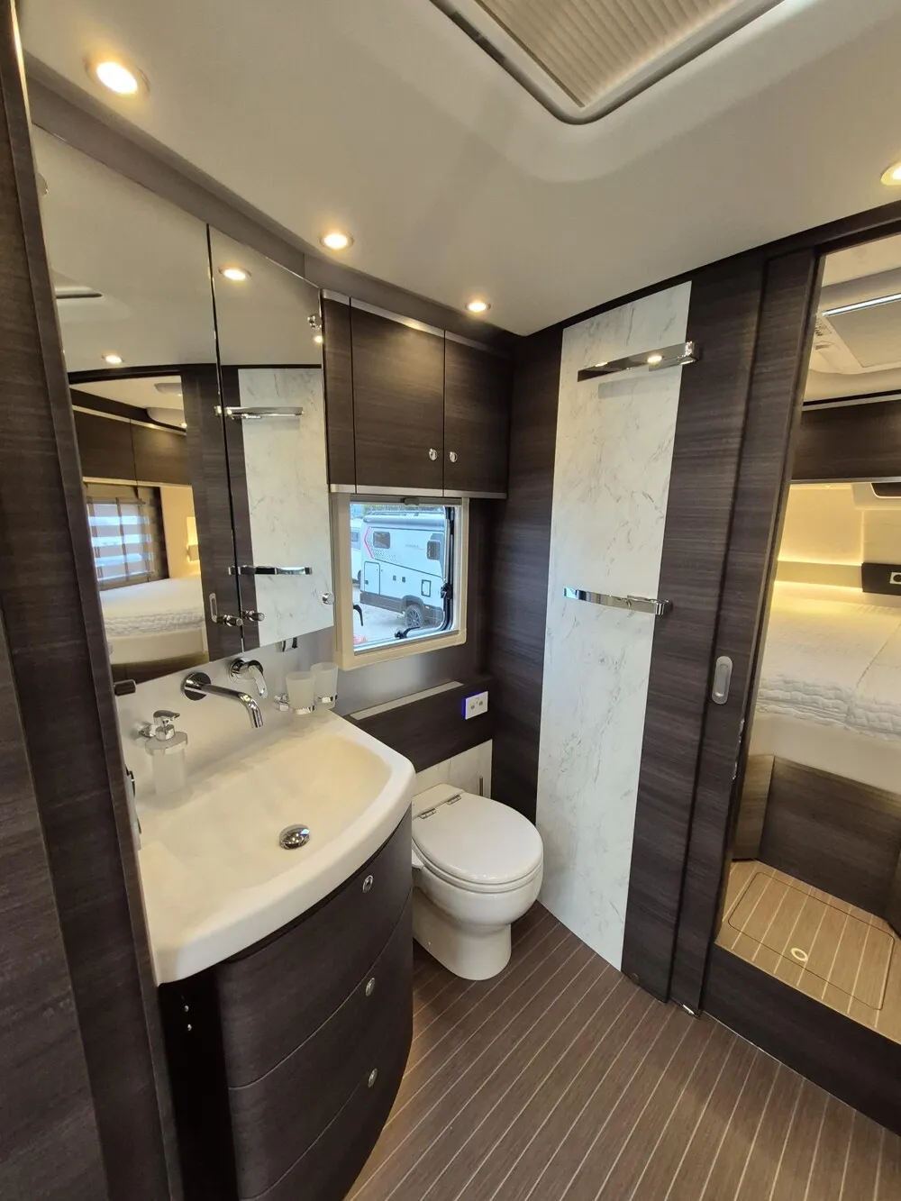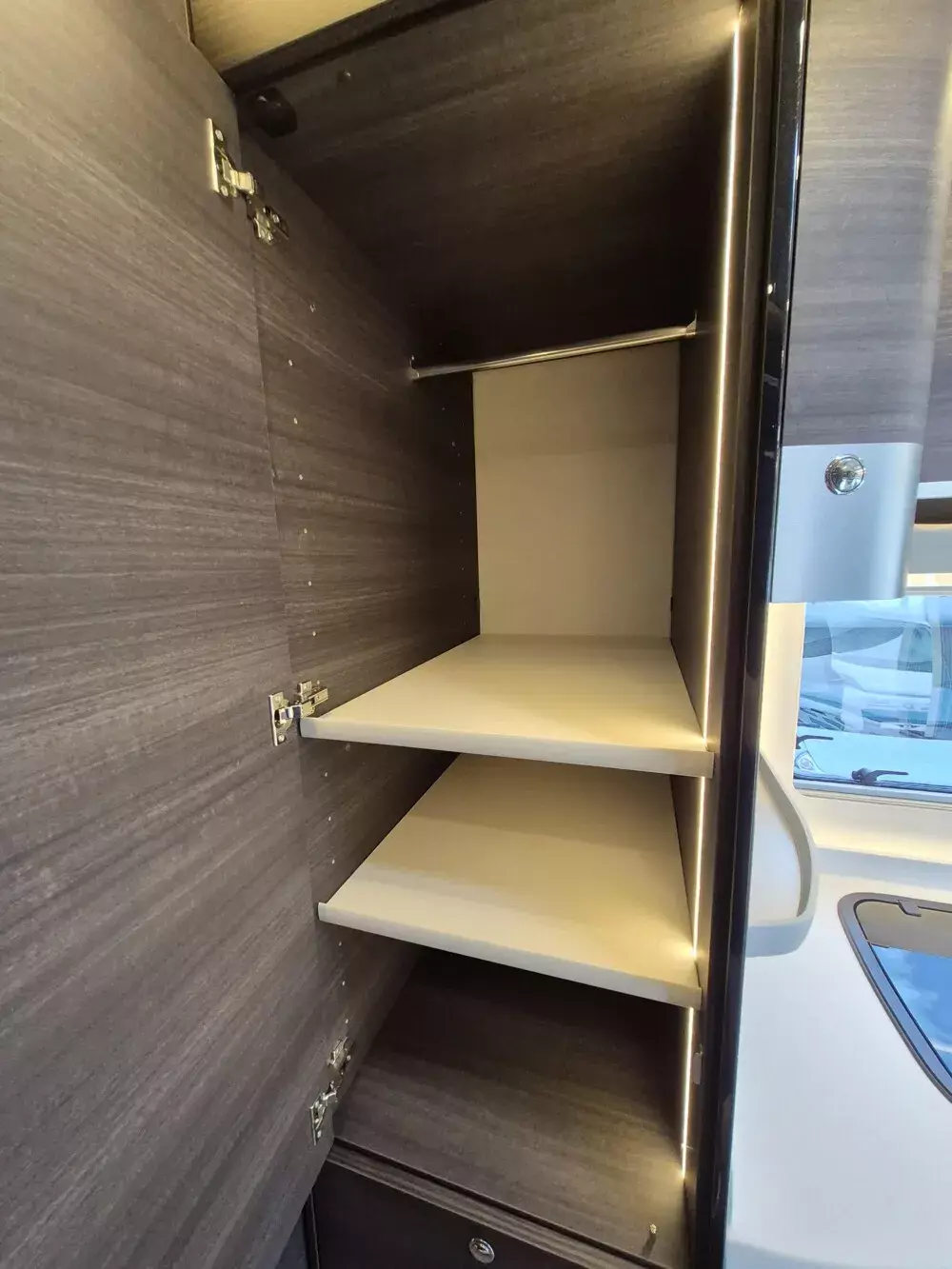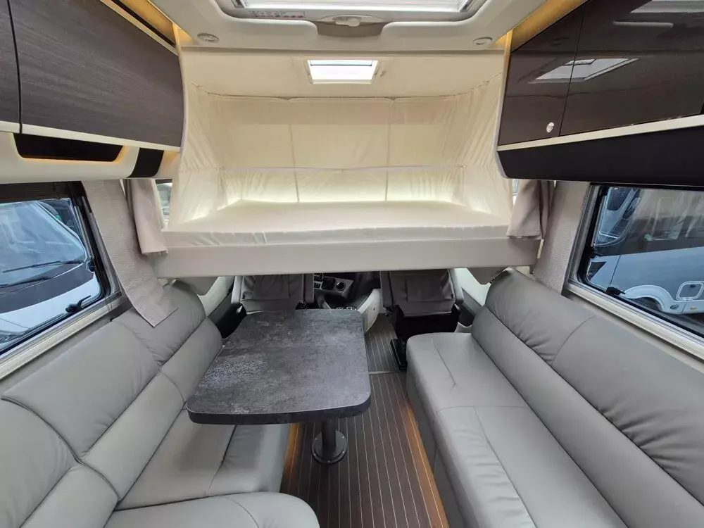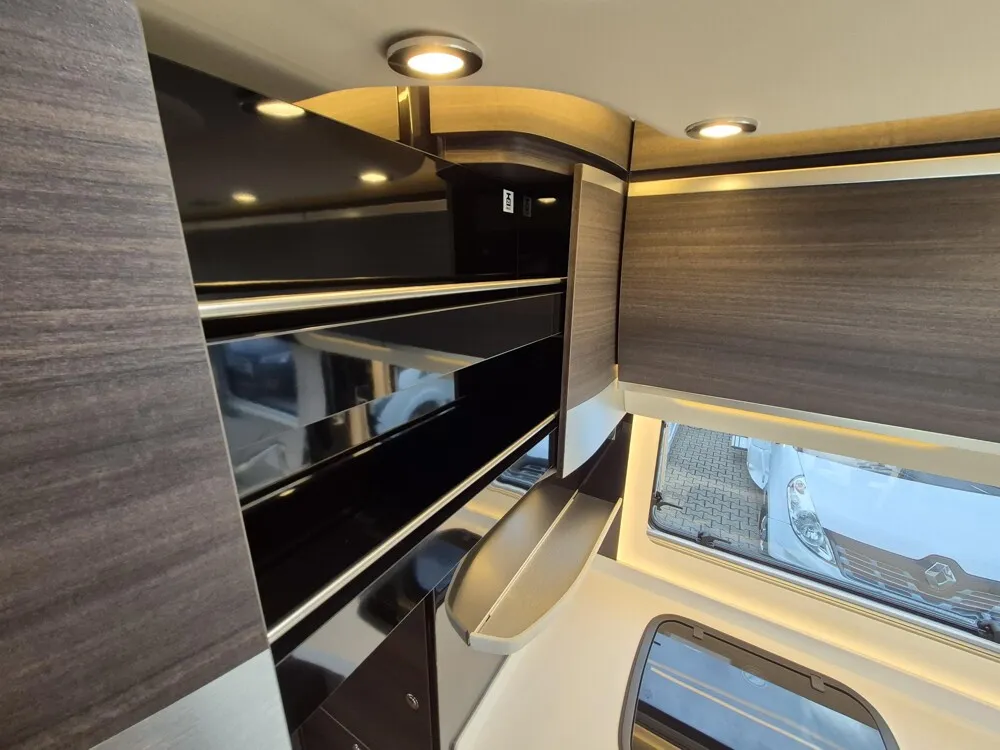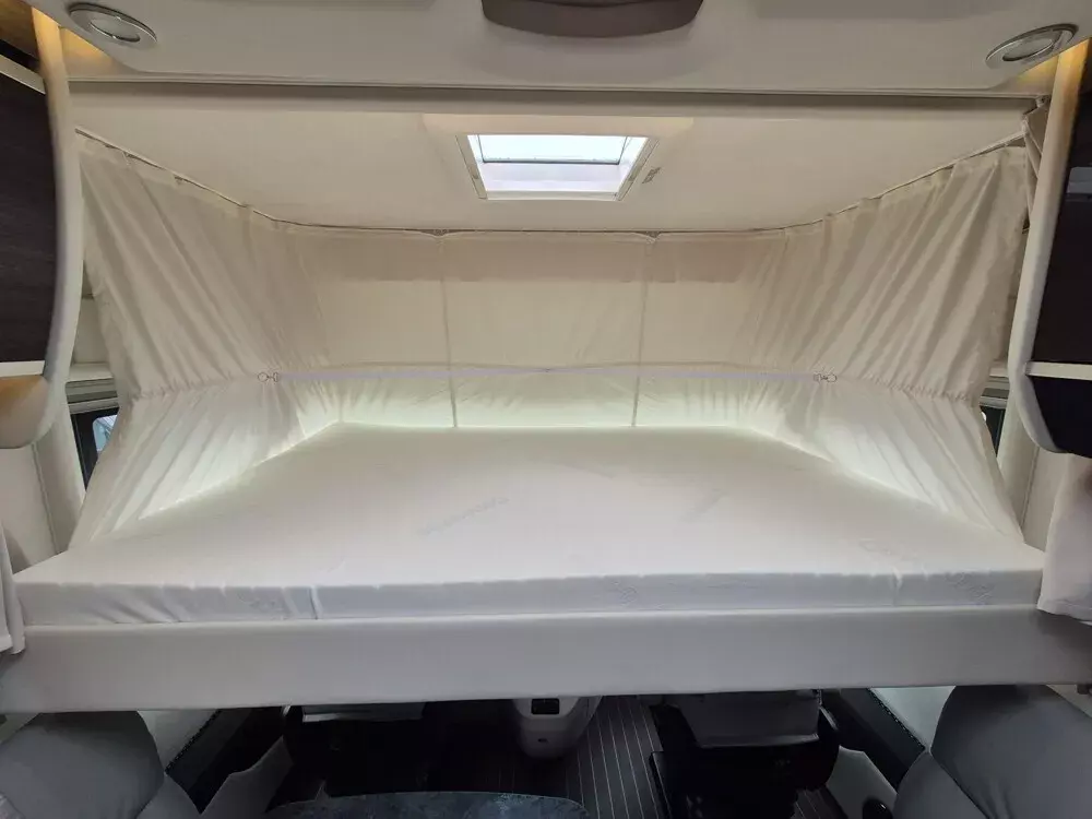 - Satelliten-TV-Anlage mit Full HD LED Smart TV 40" im Oberschrank rechts, elektrisch absenkbar (Satelliten-TV-Anlage mit 85-cm-Spiegel, vollautomatische Ausrichtung, Mehrteilnehmer-Ausstattung durch TWIN-LNB, Anschluss für zweiten Receiver mit 12 V und Antennensteckdose im Schlafraum, Tonwiedergabe über Radioanlage möglich (Fahrzeuggesamthöhe plus ca. 120 mm))