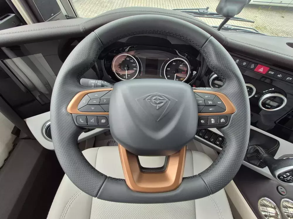 - Gastank ca. 120 l (Gas-Vorfilter, Gasfernbefüllung, Crashsensor und Füllstandsanzeige im Display des Kontrollpanels, inkl. Schürzenklappe (inkl. Gas-Tankfüllung) (Nicht in Verbindung mit Reifendruck-Kontrollsystem))