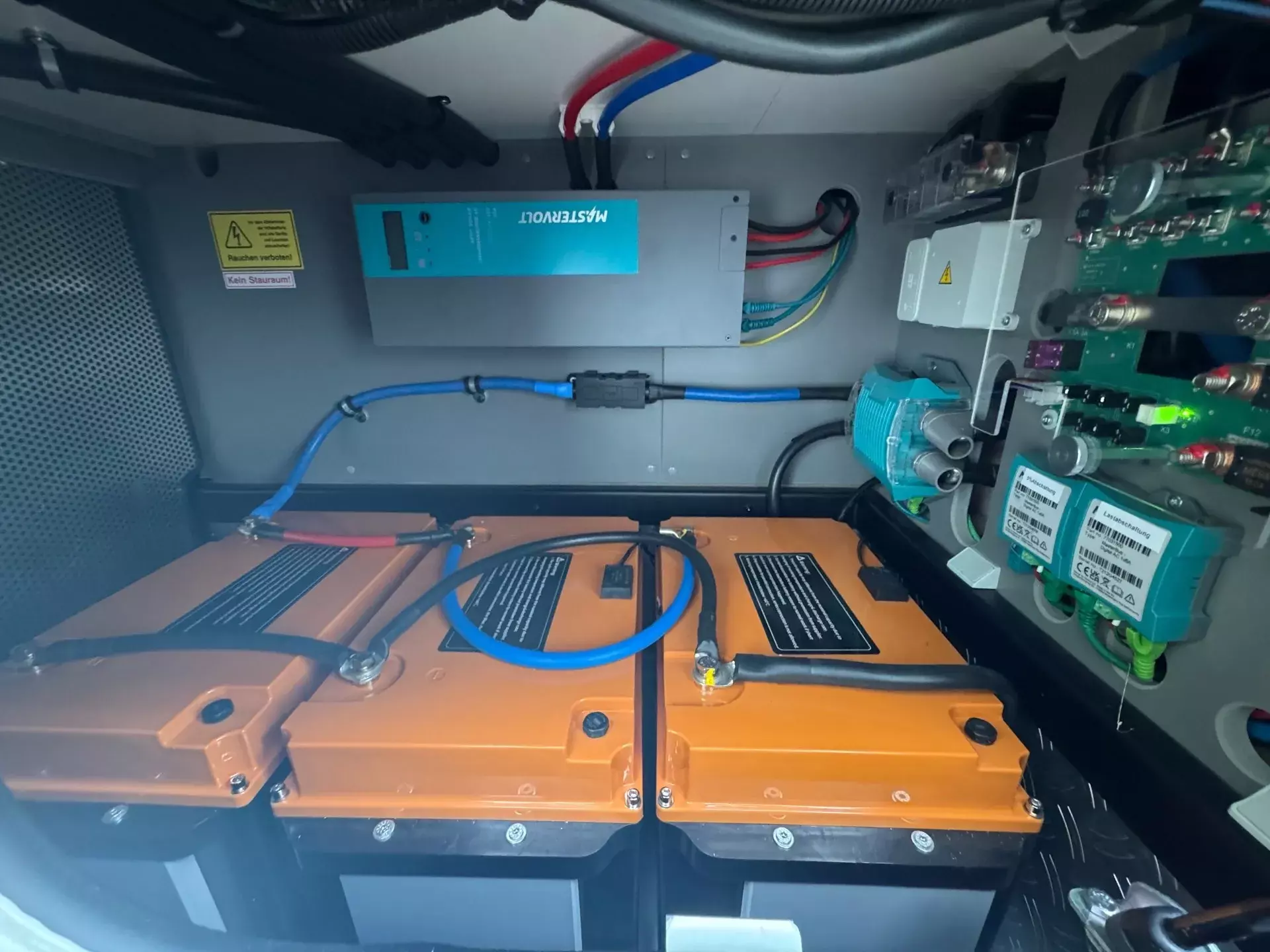 -EDITION 70 Elektro-Leistungspaket: 600 Ah Lithium-Batteriepaket (3 x 200 Ah) mit Kombi-Ladegerät 150 A und Sinus Wechselrichter von 12 V auf 230 V, 6000 W Spitzen- und 3000 W Dauerleistung mit Netzmangelausgleich, sowie Ladewandler 90 A.