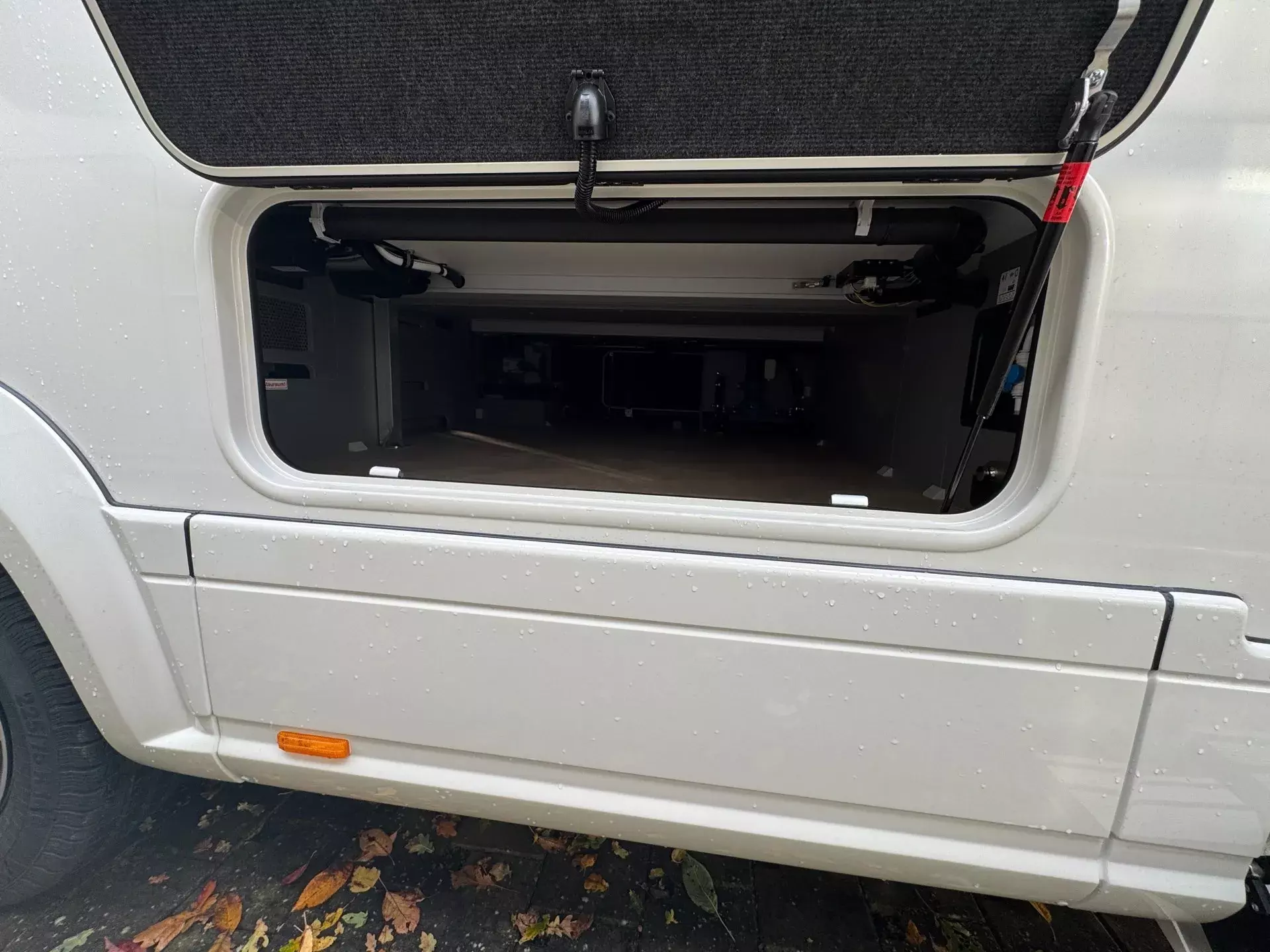 -Steckdosenkombination, 230 V / 12 V / Antenne, (mit Bodendurchführung, Position: im Außenstaufach rechte Fahrzeugseite (für wahlweisen TV-Außenanschluss) (Sat-Ausgang))