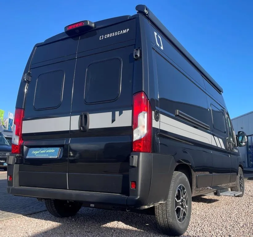 - Komfort Paket (Rahmenfenster, Innovativer Auszug unter dem Heckbett, Teppich auf dem Podest (gekettelt, lose verlegt), Vorzeltleuchte, Fenster mit Fliegenschutz und Verdunklungsrollo im Heck links, Drehplatte für Tischerweiterung Markise*)