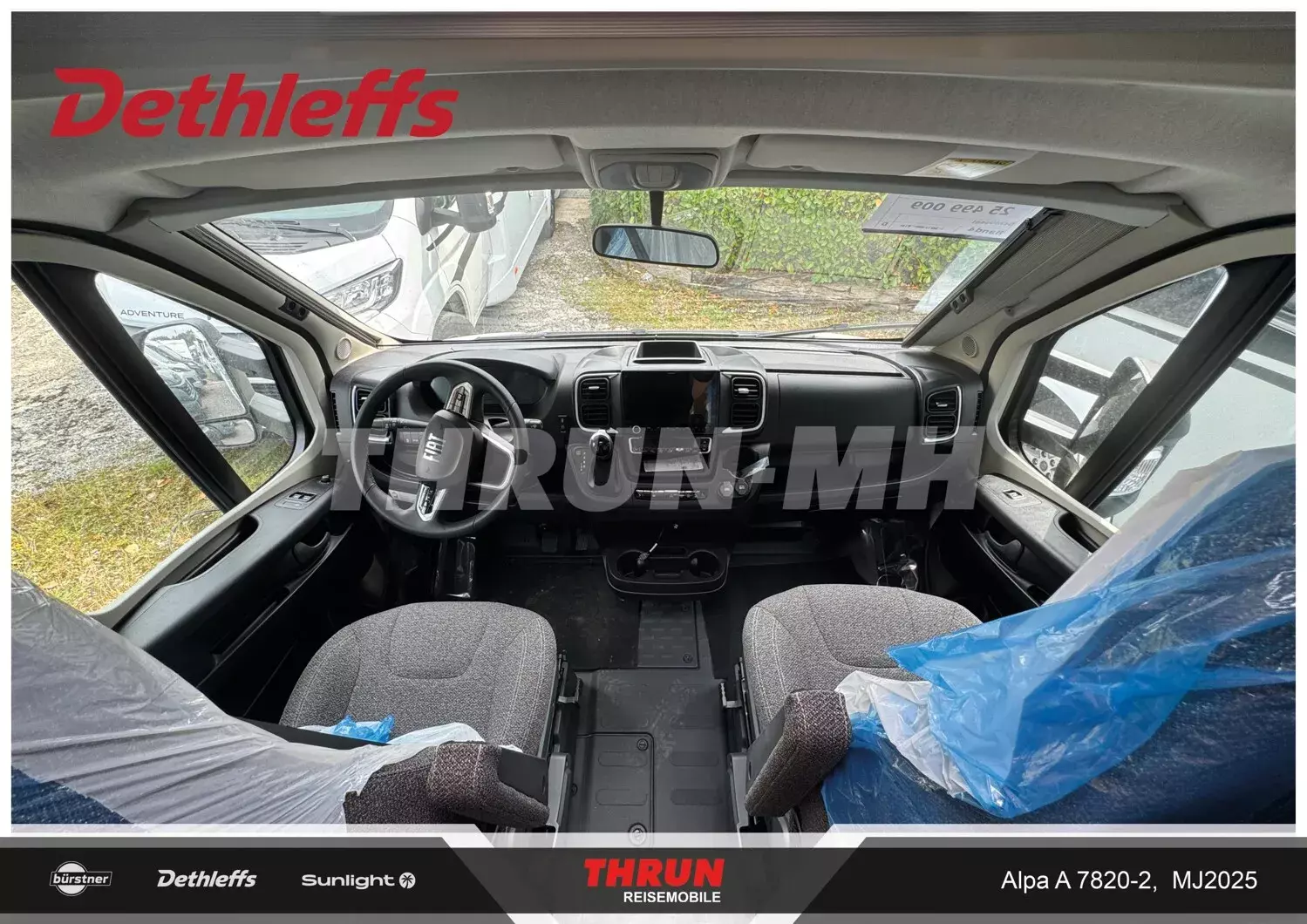 - Travel-Paket A 7820-2 (Light Moments: Indirekte Ambientebeleuchtung über den Dachstauschränken, Verdunklungsjalousien im Fahrerhaus, Dunstabzugshaube (Abluft) mit Zugluft-Stopper, Stützen (2 Stk.) für Anbau hinten, Automatische Gasflaschenumschaltung inkl. Crash Sensor, EisEx und Gasfilter, Rückfahrkamera (Einfachkamera), Panoramafenster (zweite Panoramadachhaube 75x105 cm längs über Sitzgruppe Heck) inkl. Baldachin und Raumleuchte, Zentralverriegelung für Fahrerhaus-, Wohnraumtüre und Garagentüren)