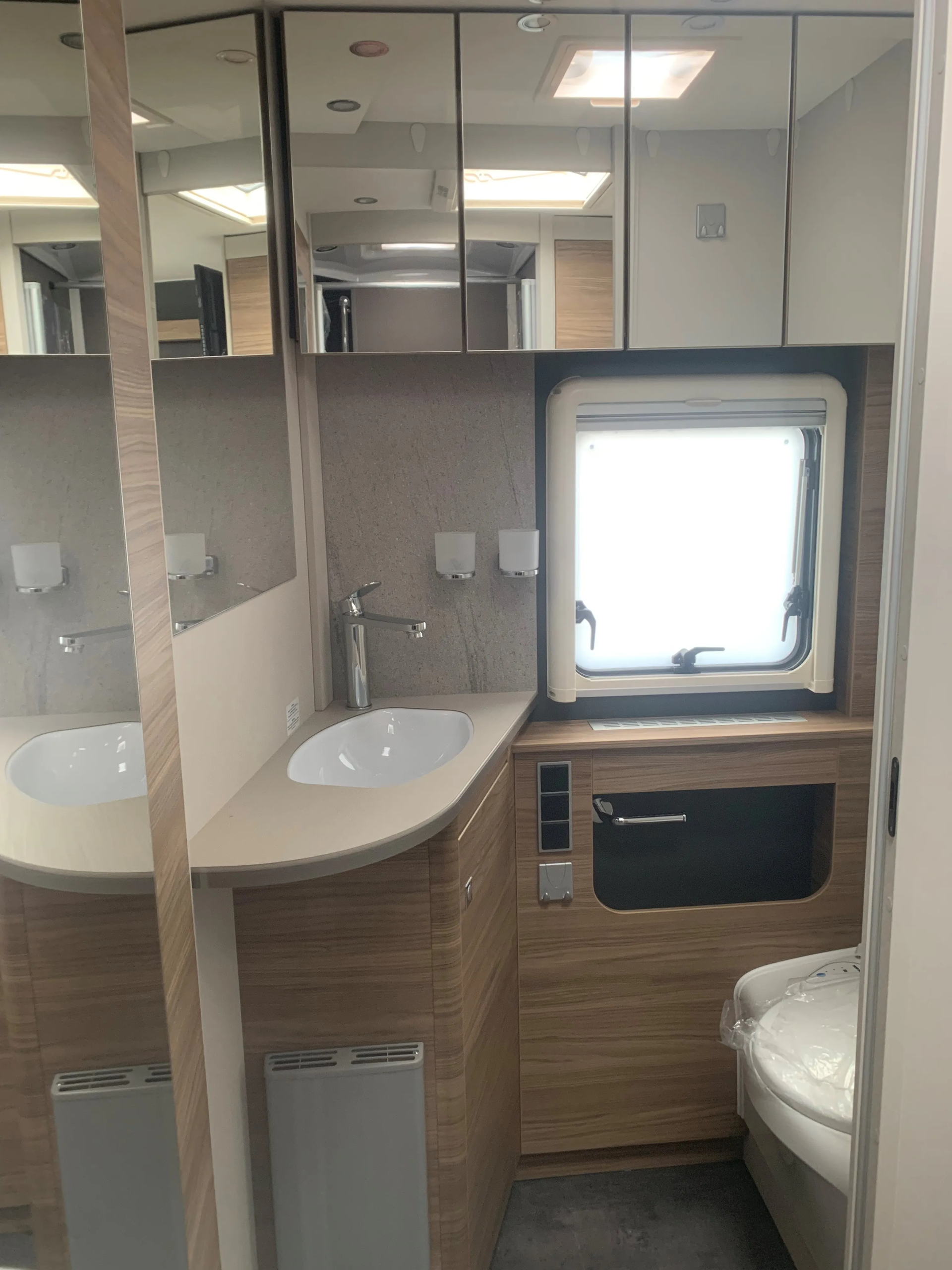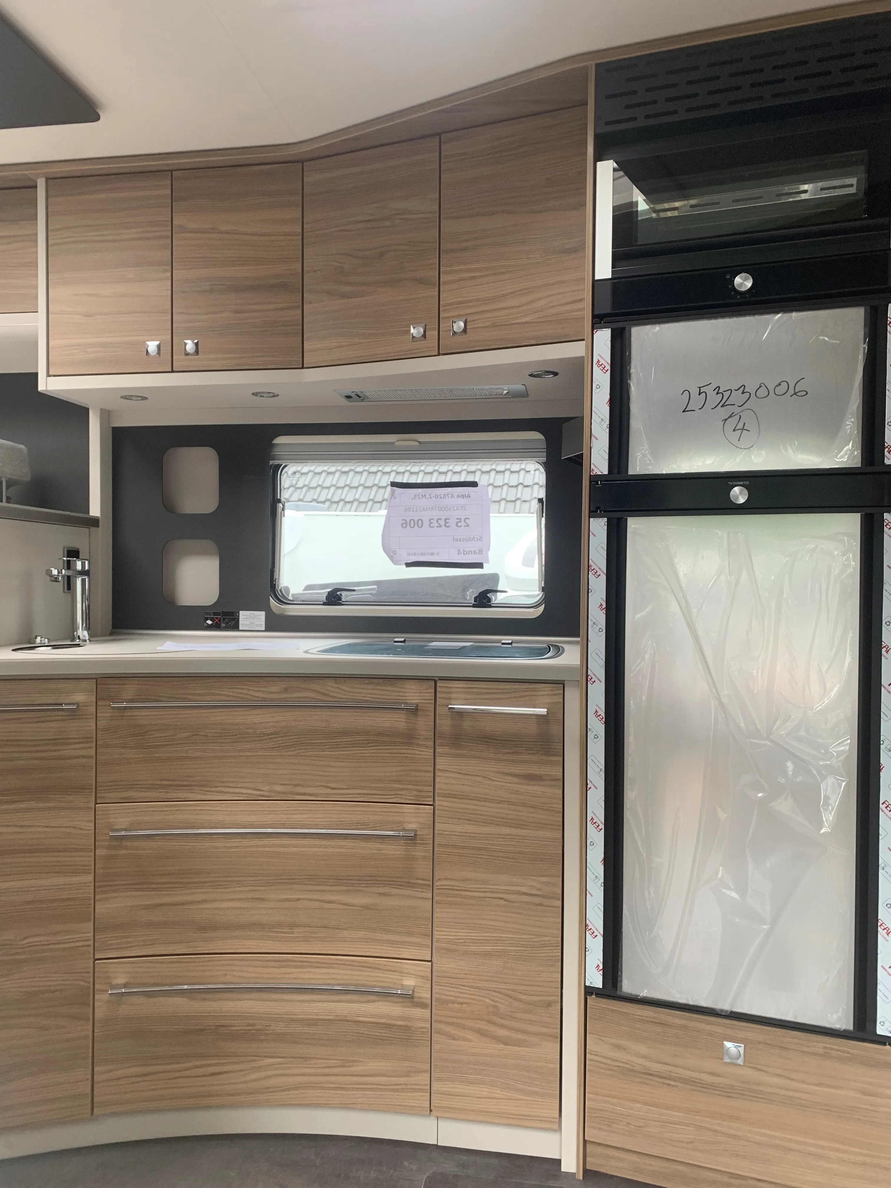 - Travel-Paket A 7820-2 (Light Moments: Indirekte Ambientebeleuchtung über den Dachstauschränken, Verdunklungsjalousien im Fahrerhaus, Dunstabzugshaube (Abluft) mit Zugluft-Stopper, Stützen (2 Stk.) für Anbau hinten, Automatische Gasflaschenumschaltung inkl. Crash Sensor, EisEx und Gasfilter, Rückfahrkamera (Einfachkamera), Panoramafenster (zweite Panoramadachhaube 75x105 cm längs über Sitzgruppe Heck) inkl. Baldachin und Raumleuchte, Zentralverriegelung für Fahrerhaus-, Wohnraumtüre und Garagentüren)