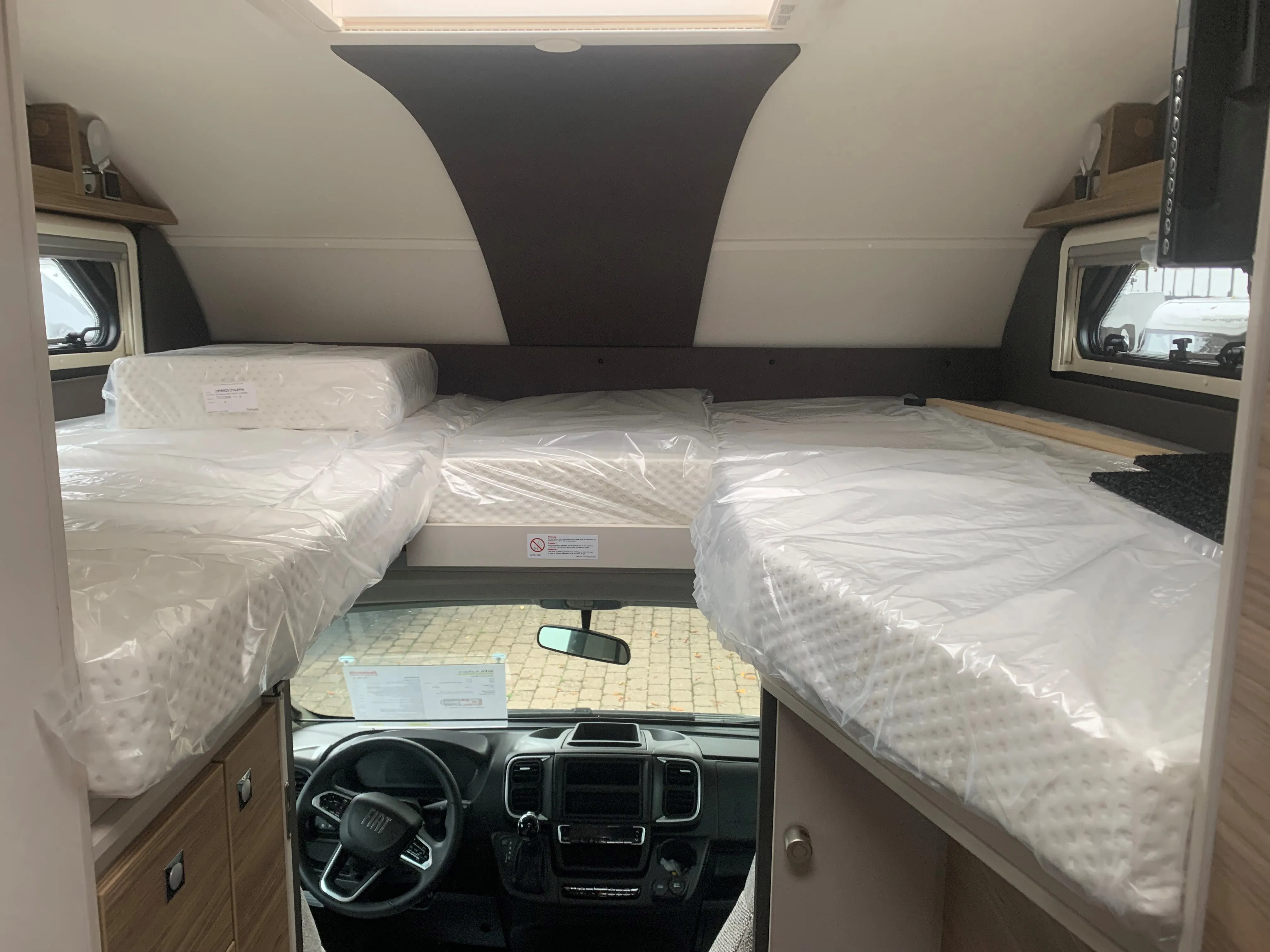 - Gurtbank inkl. zwei 3-Punkt-Gurte entgegen der Fahrtrichtung inkl. Bettenbau Sitzgruppe