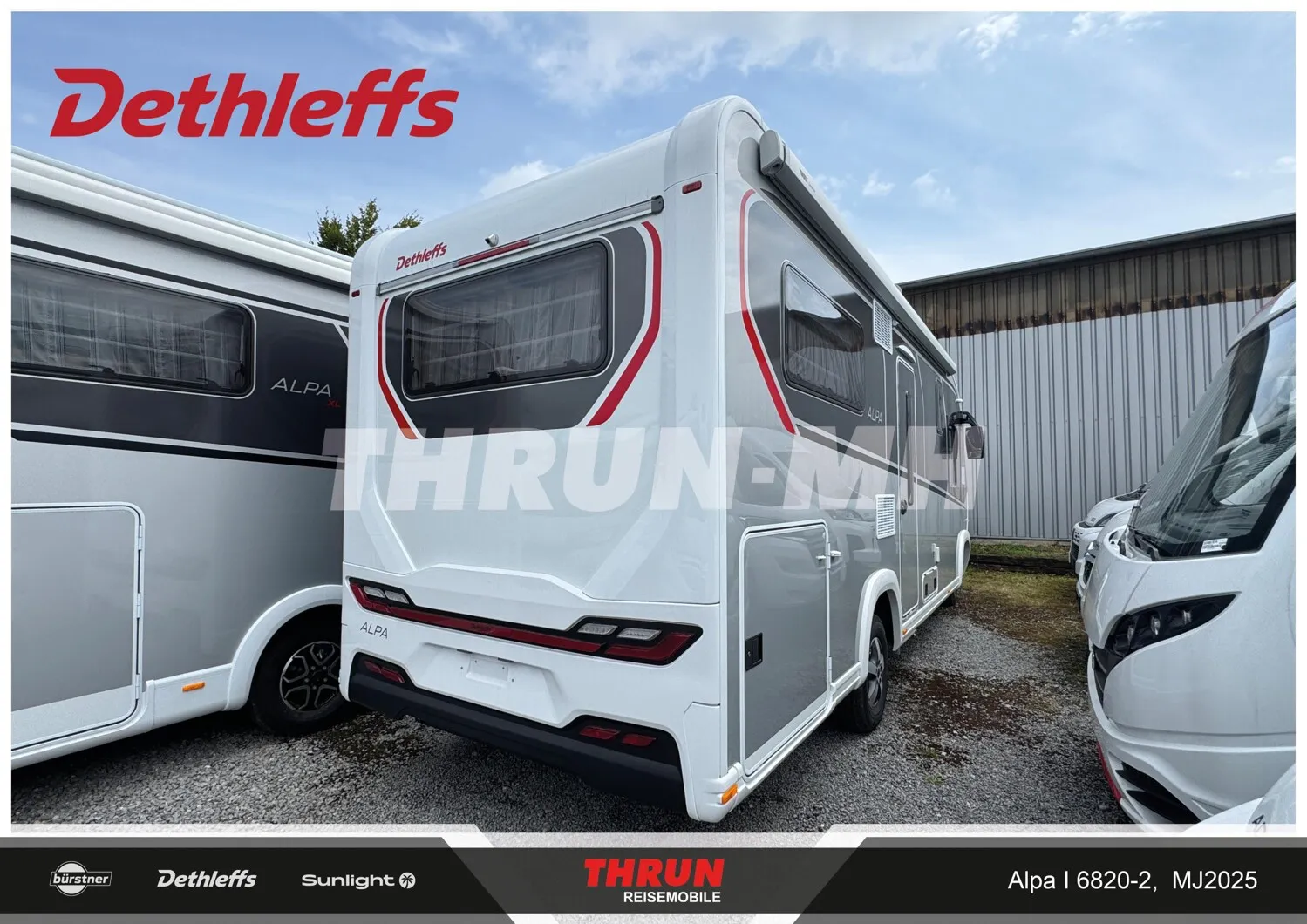 - GT Paket Silber ALPA I (Außendesign GT (Heckleuchtenträger mit schwarzem Diffusor, Kühlergrill mit Chromkeder, Skidplate "rot"), LED-Abblendlicht, Seitenwände in Titansilber Metallic, Hoher charakteristischer Dethleffs Exklusiv Heckleuchtenträger mit ShapeLine LED Rückleuchten und 3. Bremsleuchte)