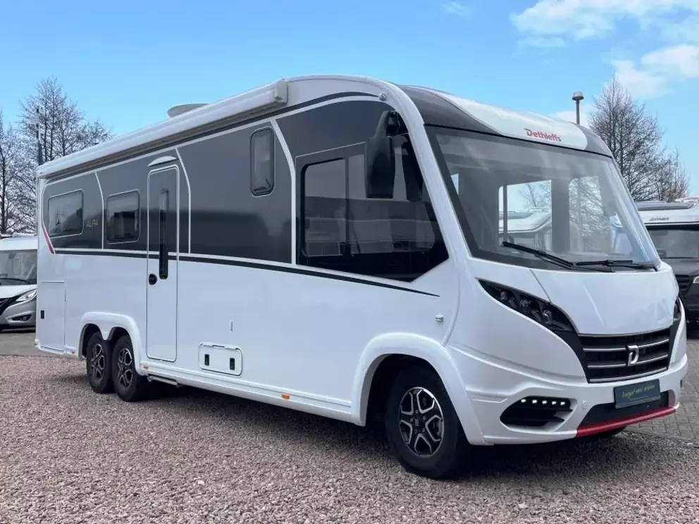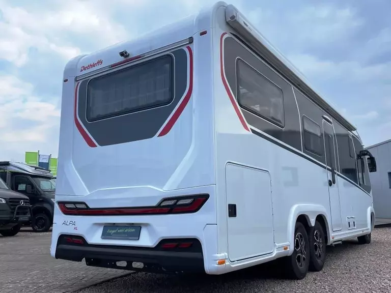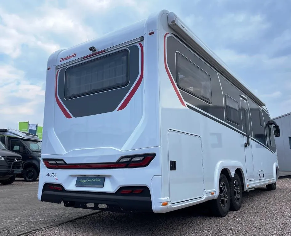 - GT-Paket (Außendesign GT (Heckleuchtenträger mit schwarzem Diffusor, Kühlergrill mit Chromkeder, Skidplate „rot“), LED-Abblendlicht, Hoher charakteristischer Dethleffs Exklusiv Heckleuchtenträger mit ShapeLine LED Rückleuchten und 3. Bremsleuchte*)