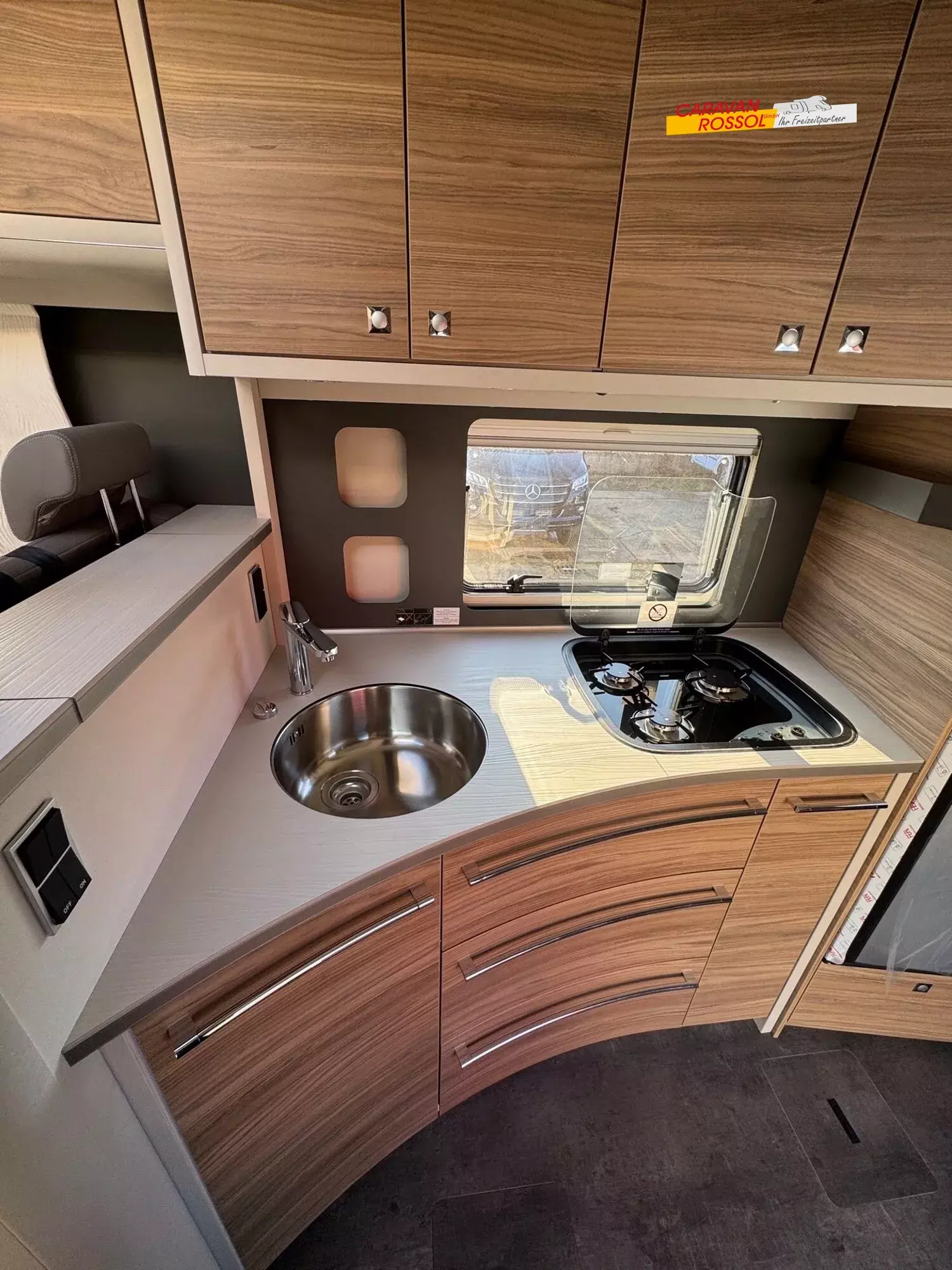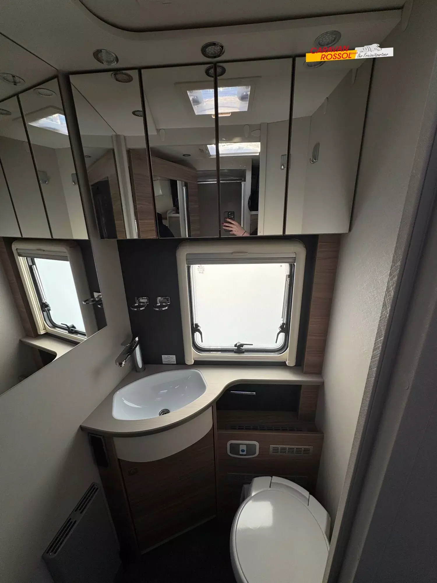 - Travel-Paket I 7820-2 (Vorbereitung für Radiosystem inkl. Soundpaket im Fahrerhaus, Light Moments: Indirekte Ambientebeleuchtung über den Dachstauschränken, Dunstabzugshaube (Abluft) mit Zugluft-Stopper, Stützen (2 Stk.) für Anbau hinten, Radioantenne DAB+ auf dem Dach montiert, Automatische Gasflaschenumschaltung inkl. Crash Sensor, EisEx und Gasfilter, Rückfahrkamera (Einfachkamera), Panoramafenster (zweite Panoramadachhaube 75x105 cm längs über Sitzgruppe Heck) inkl. Baldachin und Raumleuchte, Zentralverriegelung für Fahrerhaus-, Wohnraumtüre und Garagentüren)