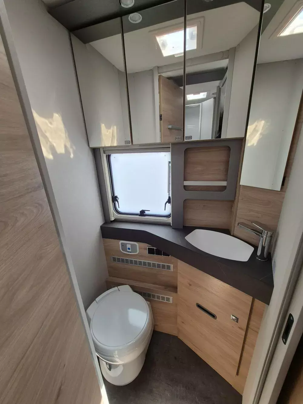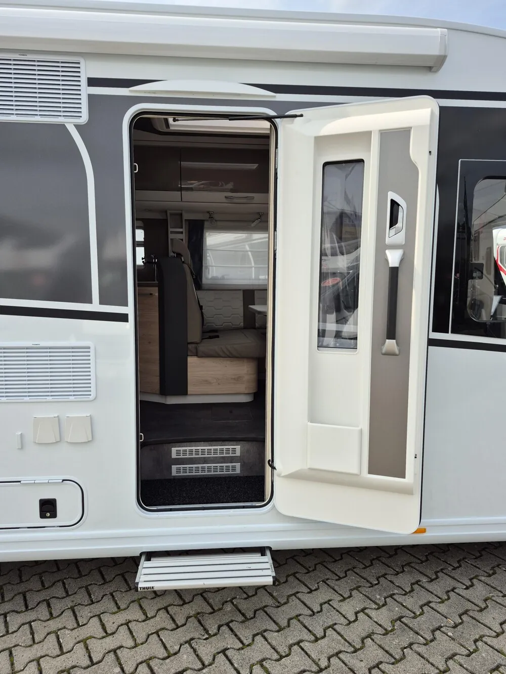 - Travel-Paket (Vorbereitung für Radiosystem inkl. Soundpaket im Fahrerhaus, Radioantenne DAB+ auf dem Dach montiert, Panorama-Dachhaube 75x105 cm im Wohnraum, Light Moments: Indirekte Ambientebeleuchtung über den Dachstauschränken, Stützen (2 Stk.) für Anbau hinten, Elektrischer Frontscheiben-Rollo, Automatische Gasflaschenumschaltung inkl. Crash Sensor, EisEx und Gasfilter, Dunstabzugshaube (Abluft) mit Zugluft-Stopper, Integrierte Einlinsen Rückfahrkamera, Zentralverriegelung für Fahrerhaus-, Wohnraumtüre und Garagentüren)