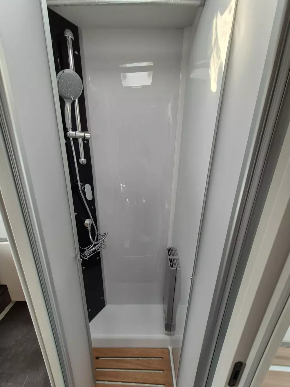 - Außendusche in Heckgarage installiert (Warm-/ Kaltwasser)