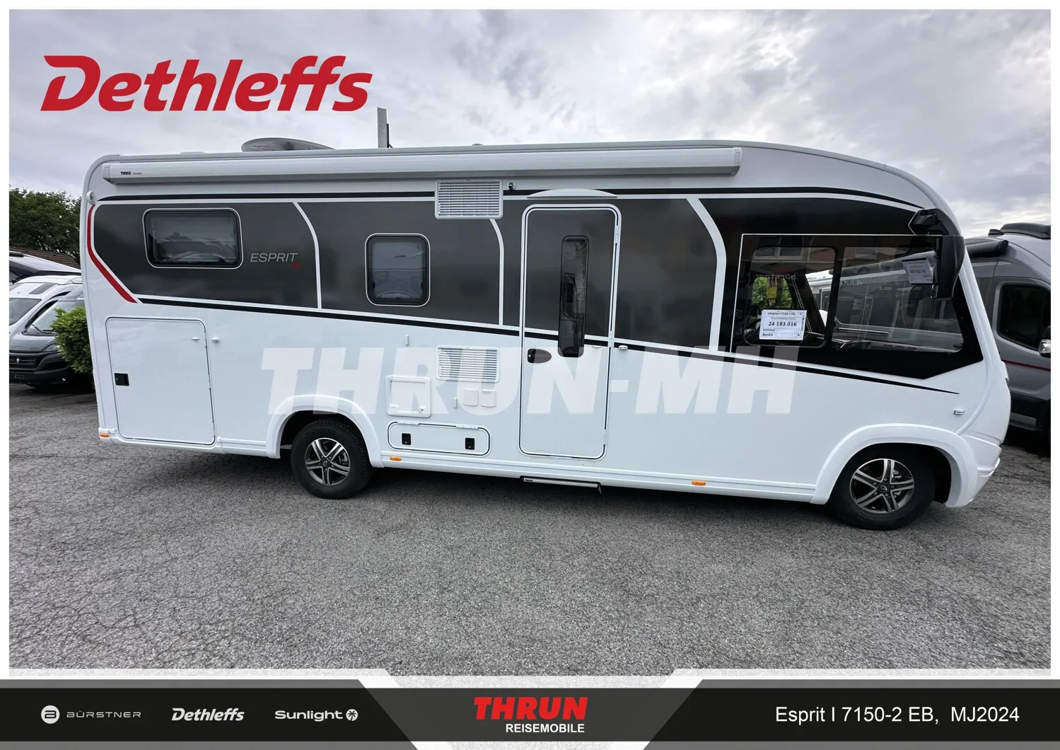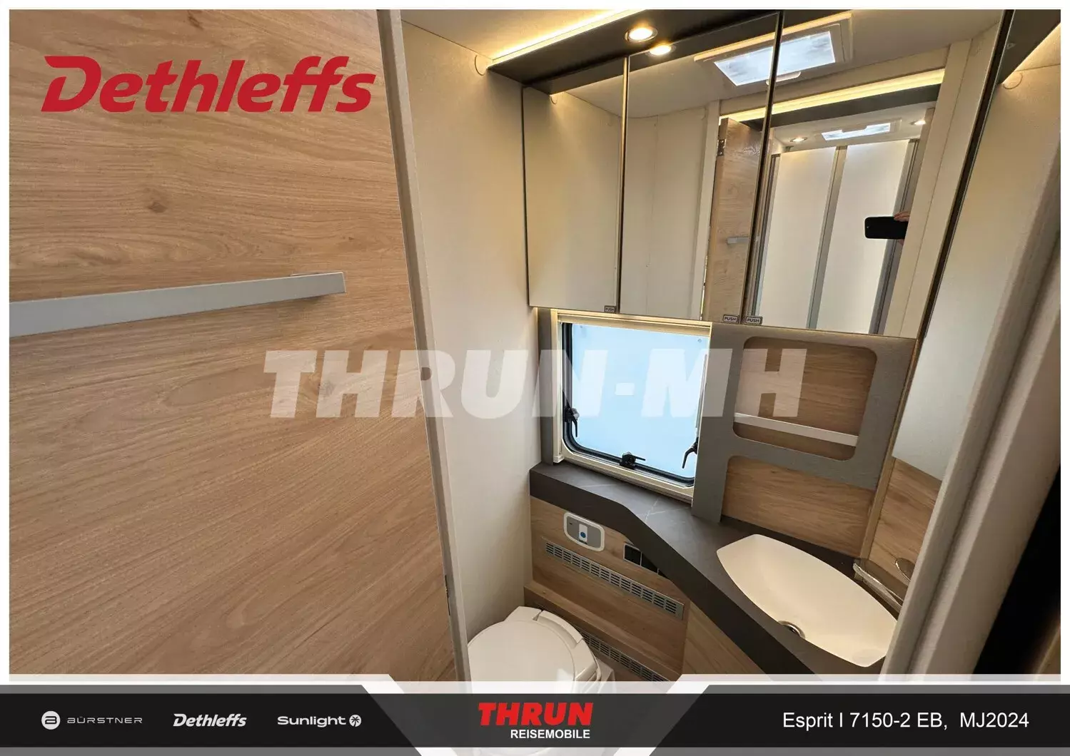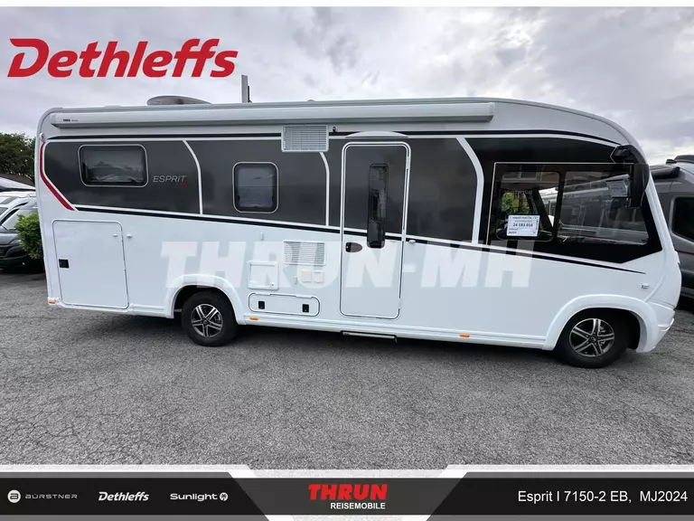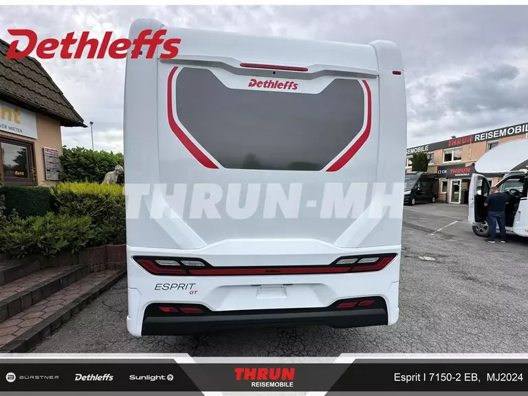 - Esprit GT Advance (Vorbereitung für Radiosystem inkl. Soundpaket im Fahrerhaus, Radioantenne DAB+ auf dem Dach montiert, Fahrerhaustüre links, Panorama-Dachhaube 75x105 cm im Wohnraum, Light Moments: Indirekte Ambientebeleuchtung über den Dachstauschränken, Stützen (2 Stk.) für Anbau hinten, Elektrischer Frontscheiben-Rollo, Automatische Gasflaschenumschaltung inkl. Crash Sensor, EisEx und Gasfilter, Dunstabzugshaube (Abluft) mit Zugluft-Stopper, Integrierte Einlinsen Rückfahrkamera, Zentralverriegelung für Fahrerhaus-, Wohnraumtüre und Garagentüren, LED-Abblendlicht, Sonnenblenden seitlich, als Rollo für Fahrer und Beifahrer, Panorama-Dachhaube 70 x 50 cm im Schlafraum, Innendesign GT inkl. erweiterter Küchenrückwand, Außendesign GT Advance (Heckleuchtenträger mit schwarzem Diffusor, lackierung I-Front teilweise schwarz, Kühlergrill mit Chromkeder, Skidplate "rot"), Alufelgen Dethleffs 16 Zoll, Hoher charakteristischer Dethleffs Exklusiv Heckleuchtenträger mit ShapeLine LED Rückleuchten, in Heckspoiler integrierter 3. Bremsleuchte und eingezogener Heckwand)