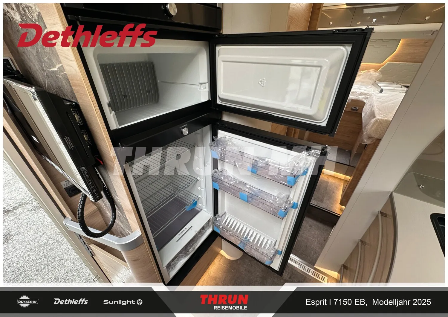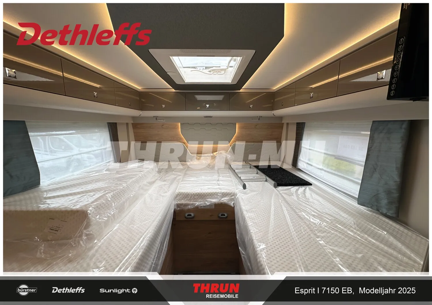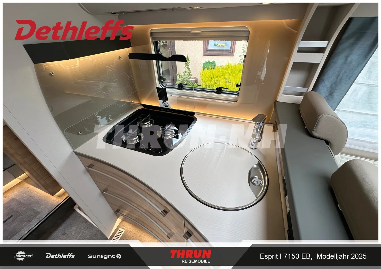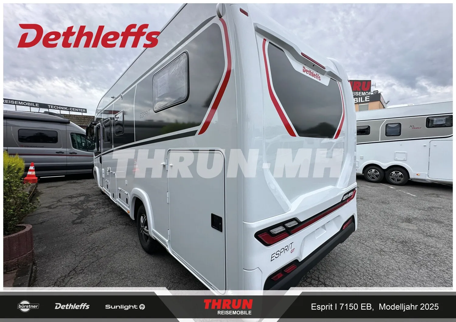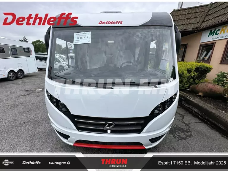 - Esprit GT Advance (Vorbereitung für Radiosystem inkl. Soundpaket im Fahrerhaus, Radioantenne DAB+ auf dem Dach montiert, Fahrerhaustüre links, Panorama-Dachhaube 75x105 cm im Wohnraum, Light Moments: Indirekte Ambientebeleuchtung über den Dachstauschränken, Stützen (2 Stk.) für Anbau hinten, Elektrischer Frontscheiben-Rollo, Automatische Gasflaschenumschaltung inkl. Crash Sensor, EisEx und Gasfilter, Dunstabzugshaube (Abluft) mit Zugluft-Stopper, Integrierte Einlinsen Rückfahrkamera, Zentralverriegelung für Fahrerhaus-, Wohnraumtüre und Garagentüren, LED-Abblendlicht, Sonnenblenden seitlich, als Rollo für Fahrer und Beifahrer, Panorama-Dachhaube 70 x 50 cm im Schlafraum, Innendesign GT inkl. erweiterter Küchenrückwand, Außendesign GT Advance (Heckleuchtenträger mit schwarzem Diffusor, lackierung I-Front teilweise schwarz, Kühlergrill mit Chromkeder, Skidplate "rot"), Alufelgen Dethleffs 16 Zoll, Hoher charakteristischer Dethleffs Exklusiv Heckleuchtenträger mit ShapeLine LED Rückleuchten, in Heckspoiler integrierter 3. Bremsleuchte und eingezogener Heckwand)