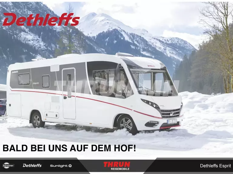 - Esprit GT (LED-Abblendlicht, Sonnenblenden seitlich, als Rollo für Fahrer und Beifahrer, Panorama-Dachhaube 70 x 50 cm im Schlafraum, Innendesign GT inkl. erweiterter Küchenrückwand, Außendesign GT Advance (Heckleuchtenträger mit schwarzem Diffusor, lackierung I-Front teilweise schwarz, Kühlergrill mit Chromkeder, Skidplate "rot"), Hoher charakteristischer Dethleffs Exklusiv Heckleuchtenträger mit ShapeLine LED Rückleuchten, in Heckspoiler integrierter 3. Bremsleuchte und eingezogener Heckwand)