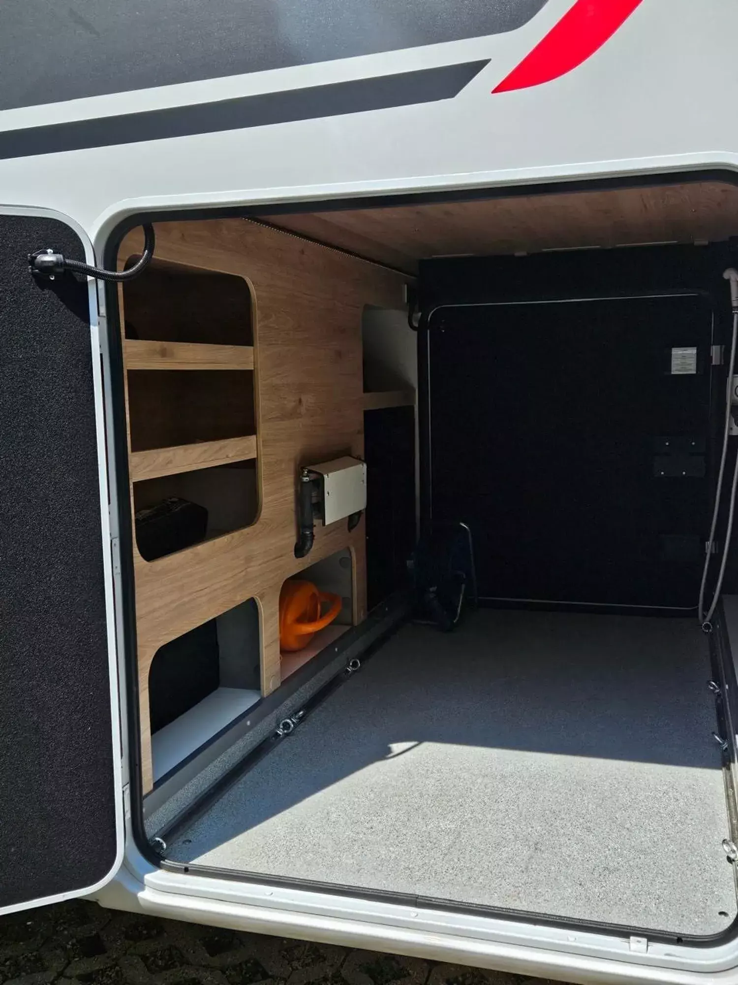 - Außendusche in Heckgarage installiert (Warm-/ Kaltwasser)