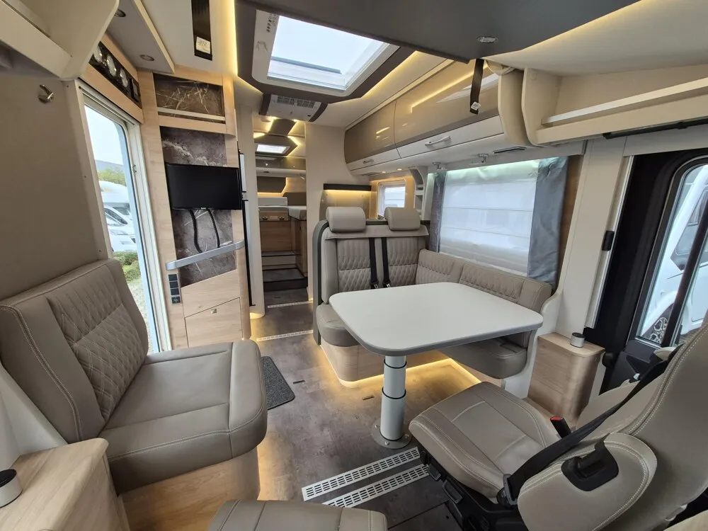 - Light Moments (Light Moments: Beleuchteter Einstiegsgriff, Light Moments: Indirekte Beleuchtung im Badezimmer mit beleuchteter Duschkonsole, Light Moments: Sockelbeleuchtung im gesamten Fahrzeug, Light Moments: Durchgehender Baldachin mit indirekter Beleuchtung, Light Moments: Küchenrückwand beleuchtet, Light Moments: Indirekte dimmbare Wandflächen-Ambientebeleuchtung)